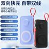 Este banco de energía móvil admite carga inalámbrica para teléfonos móviles y relojes, con una capacidad de 10,000 mAh, entrada y salida de puerto tipo C (20 W), puerto de salida USB (22.5 W), salida de línea integrada tipo C (22.5 W), salida de línea integrada de Apple (22.5 W), carga inalámbrica para teléfonos móviles (15 W), carga inalámbrica para relojes (5 W) y pantalla digital de potencia inteligente; este modelo está disponible en varios colores, así que preste atención al color al realizar un pedido. ¡Este producto utiliza una carcasa de plástico de alta calidad y se siente muy bien! El borde utiliza un diseño de arco, que se ve muy sofisticado y atmosférico. ¡Es un banco de energía compartido muy potente! La capacidad en la cotización es la capacidad real. Podemos ajustar la capacidad según las necesidades del usuario. Para obtener más información, consulte con el servicio de atención al cliente.