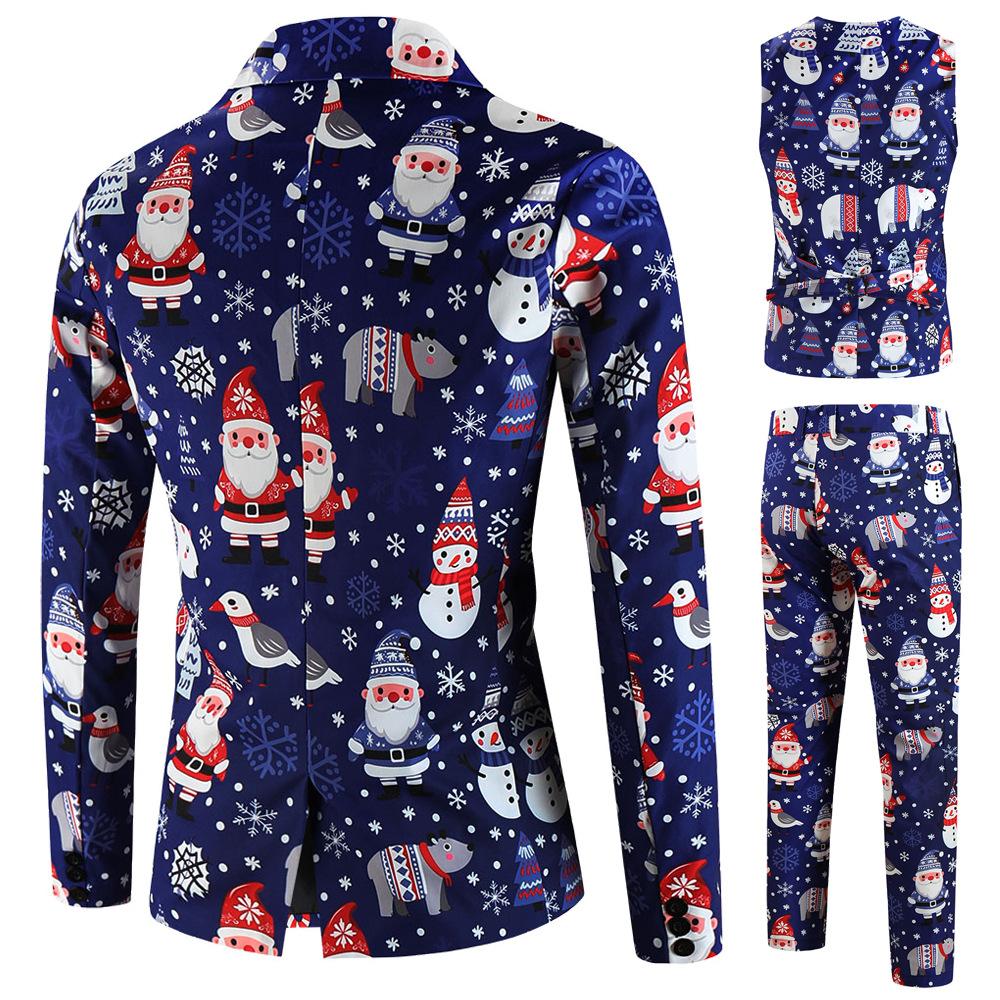 Traje navideño con estampado 3D transfronterizo 2024, nuevo, de talla europea, informal, de tres piezas, talla grande, para hombre