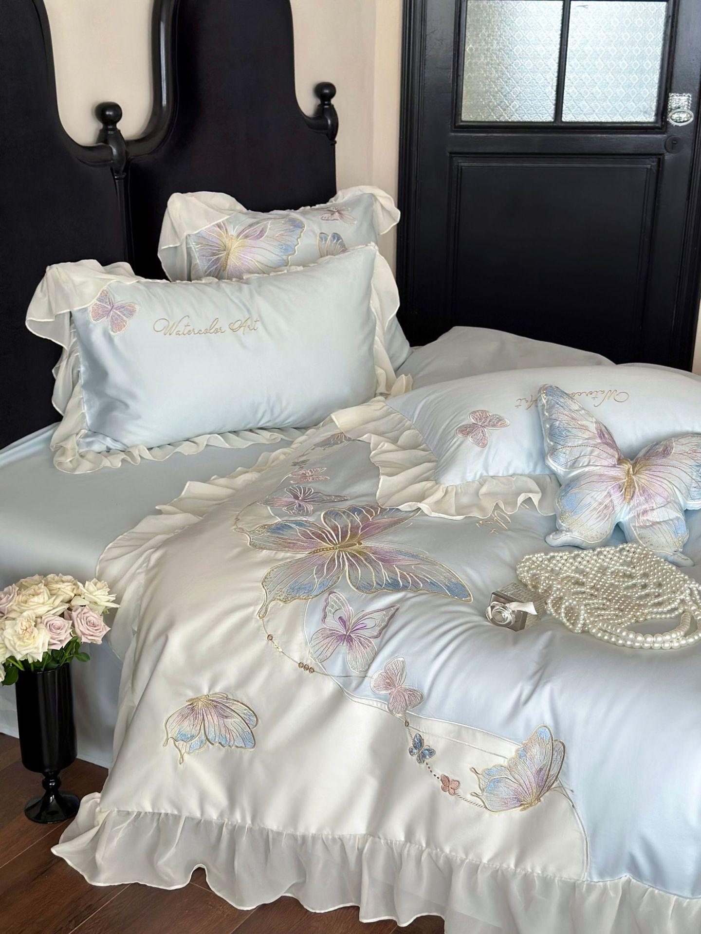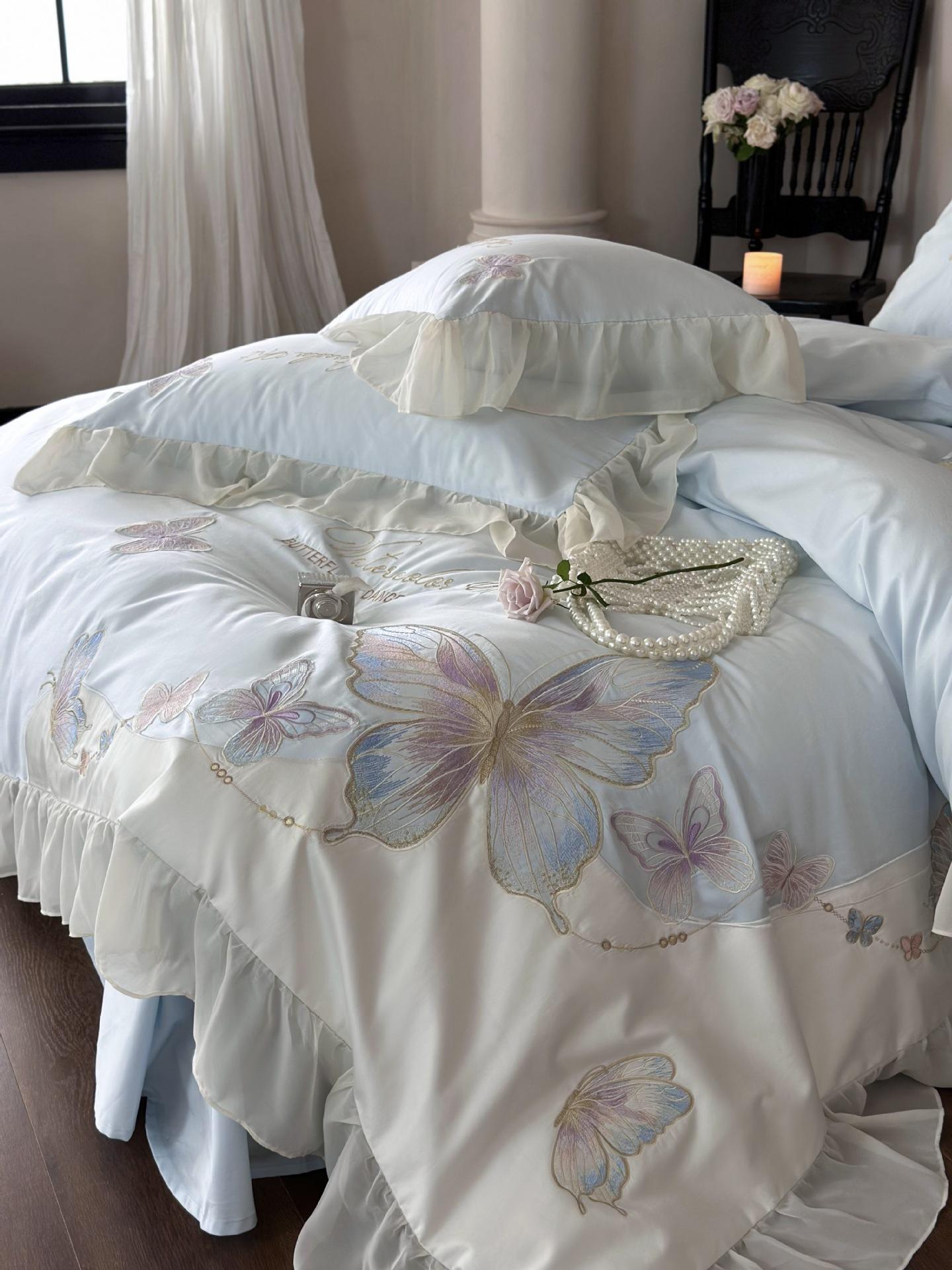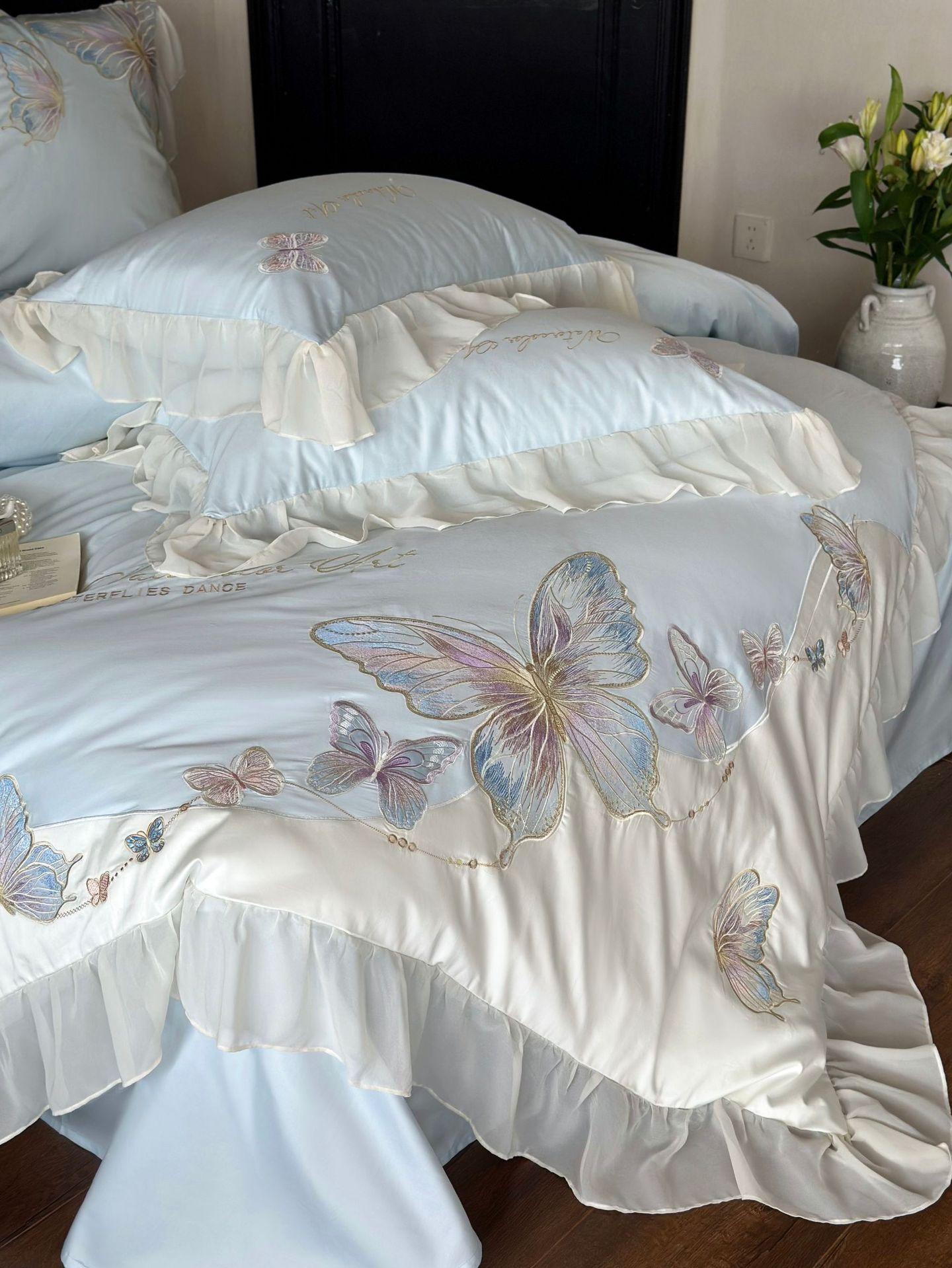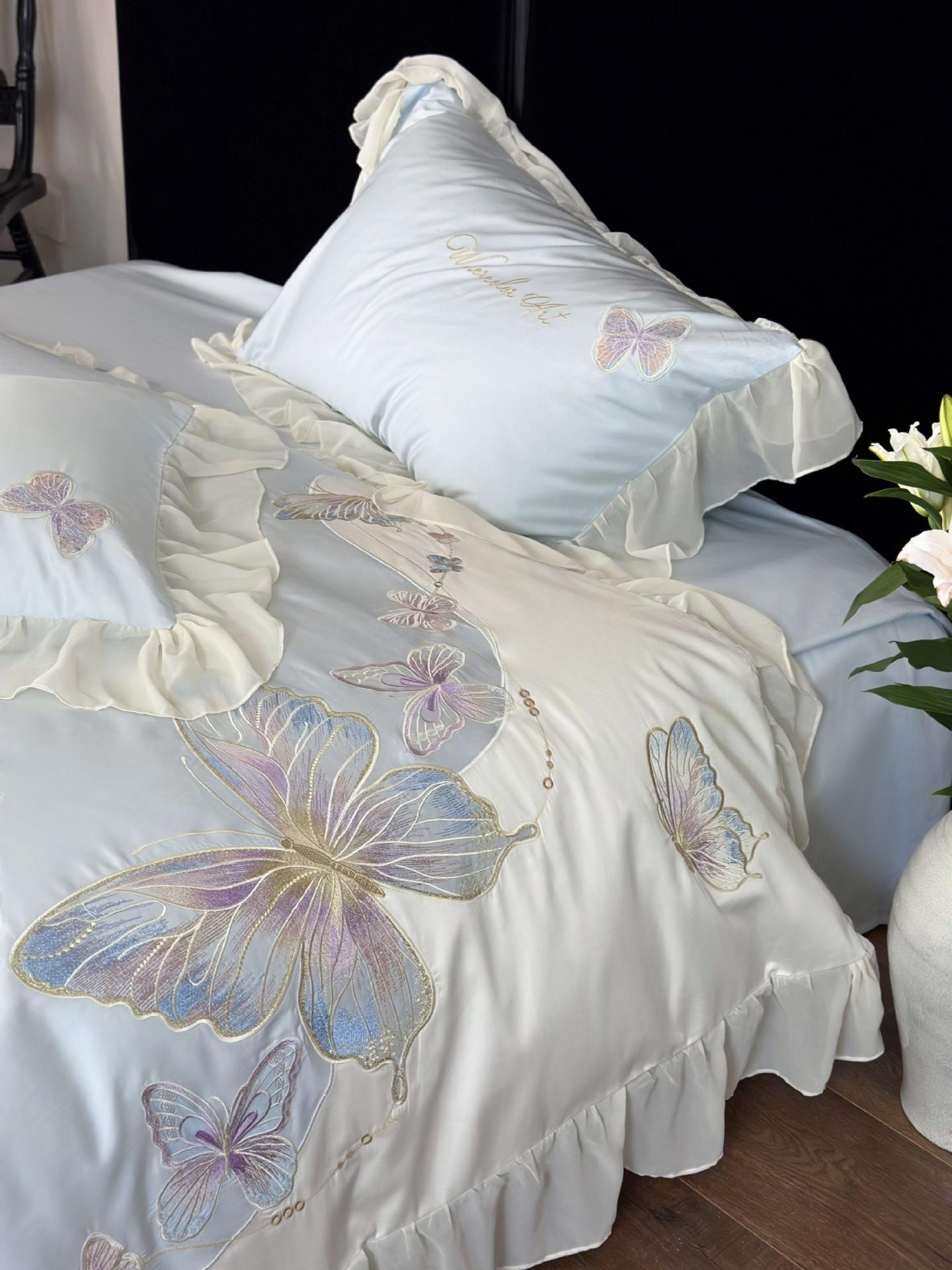 🦋Artesanía del producto: bordado de alta densidad + encaje de gasa plisado