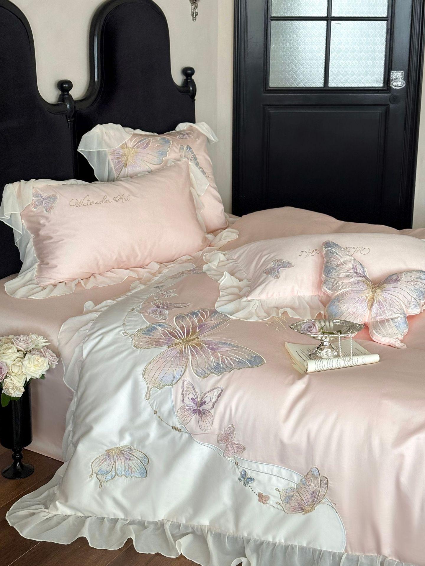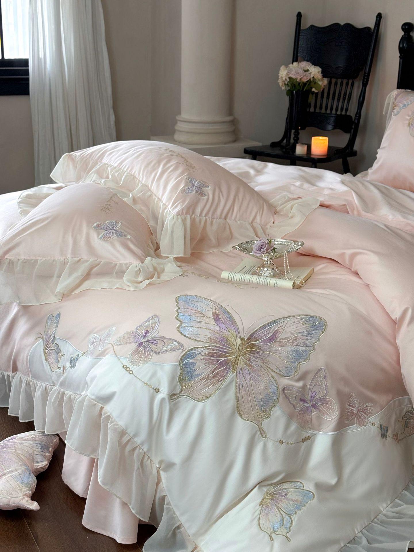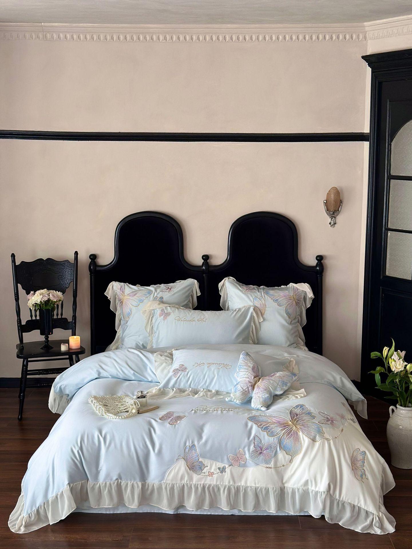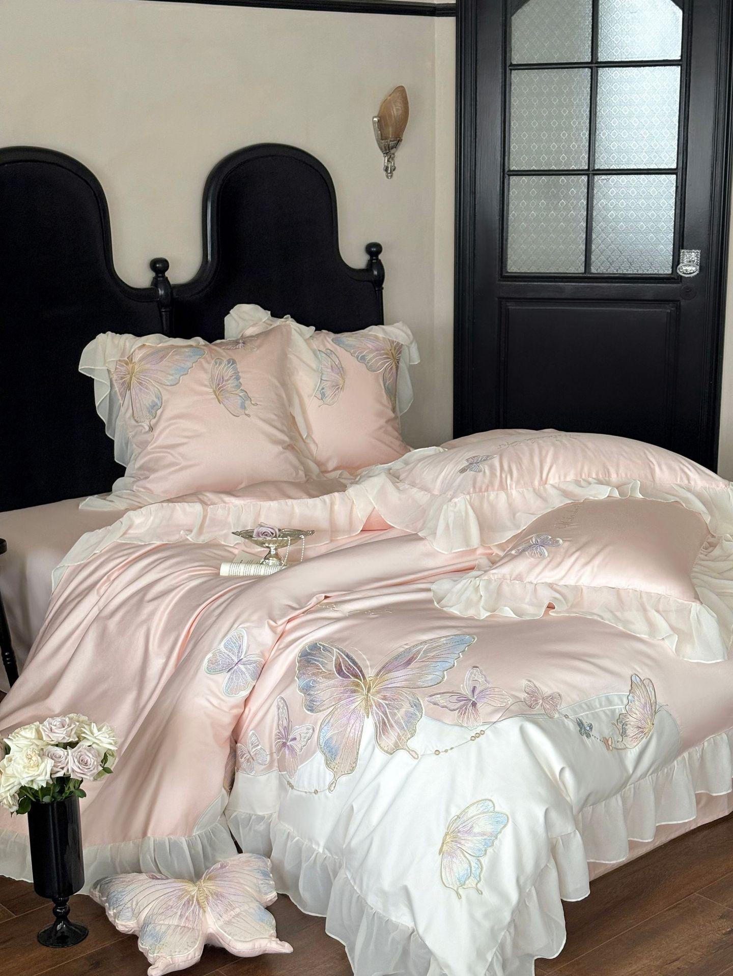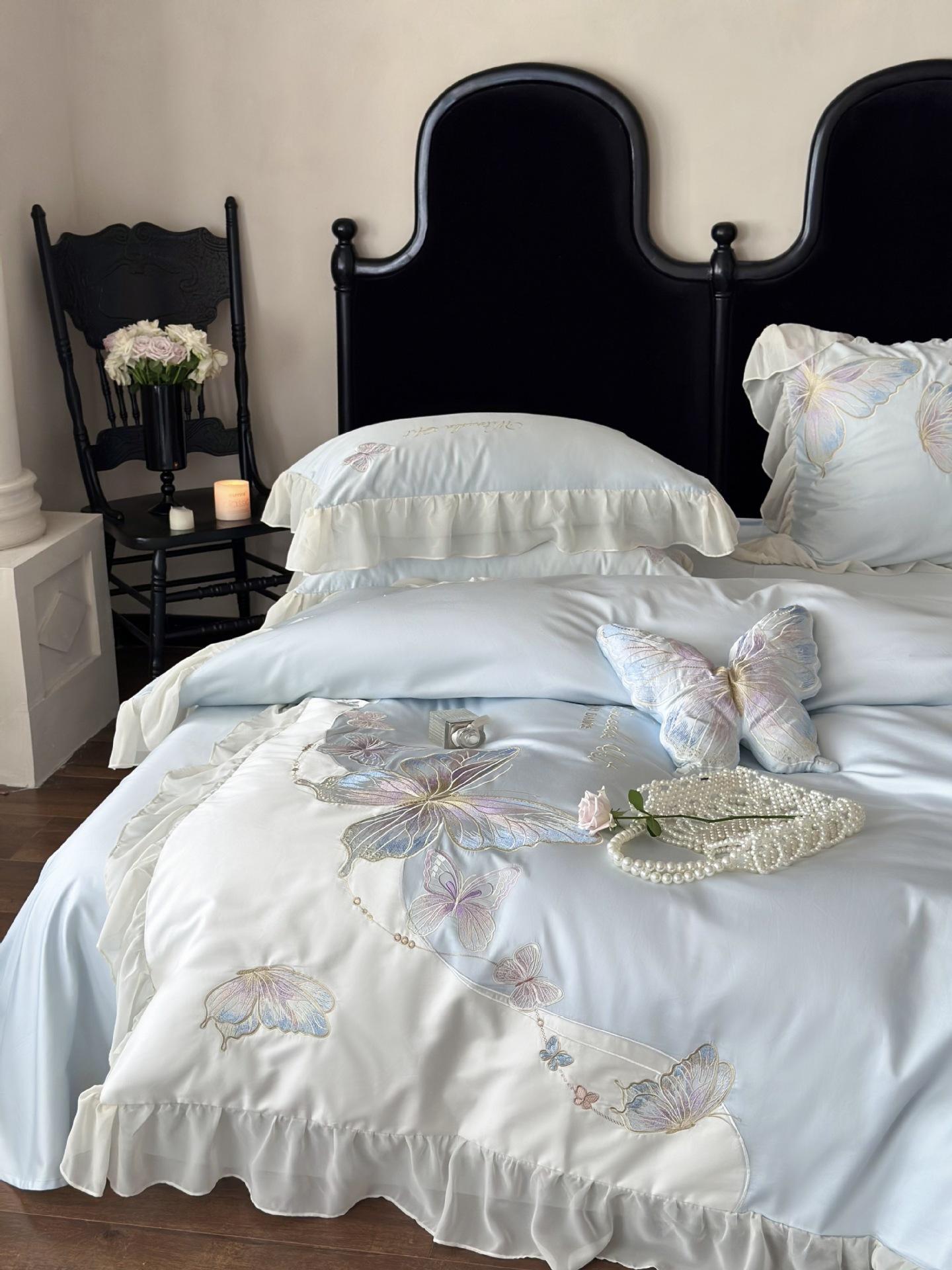 🦋Artesanía del producto: bordado de alta densidad + encaje de gasa plisado
