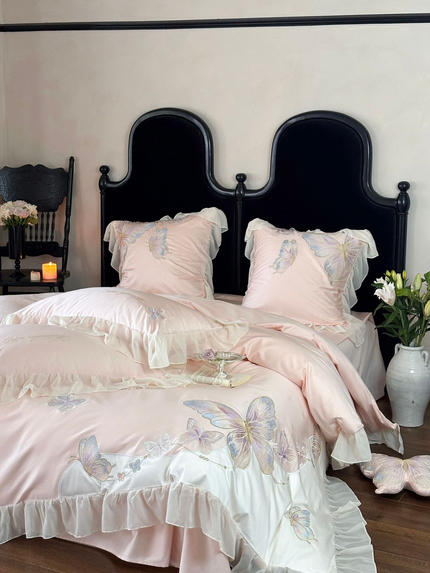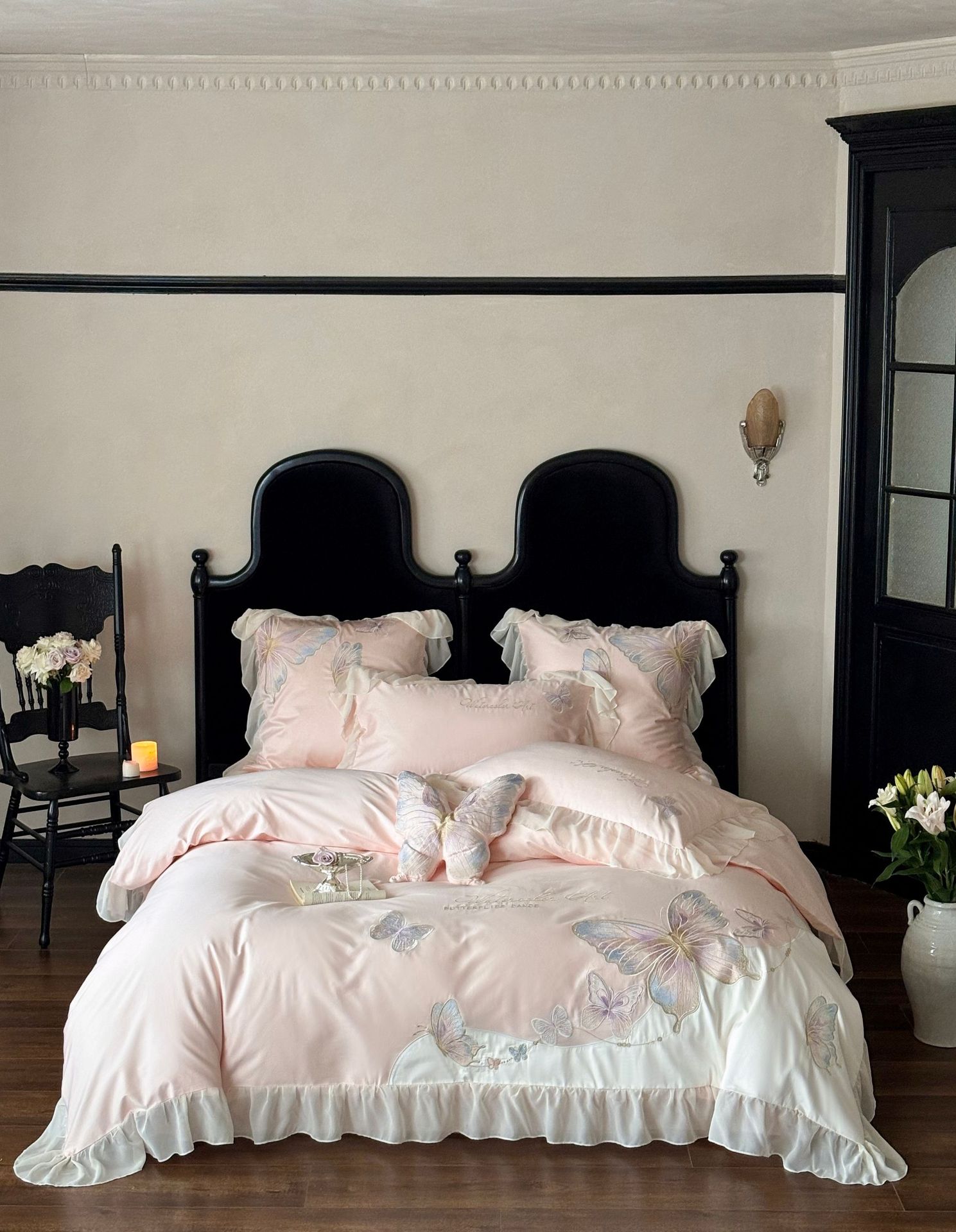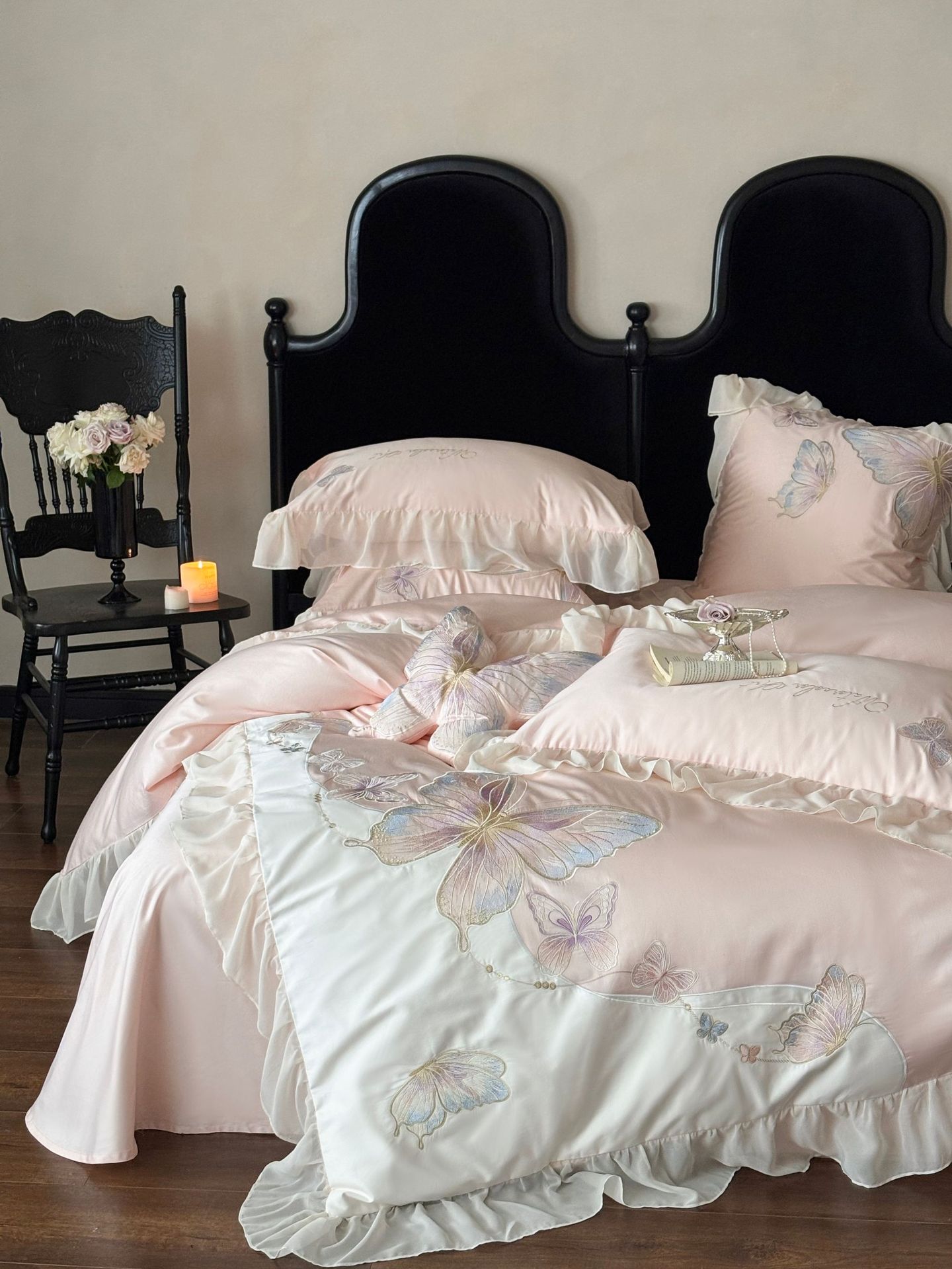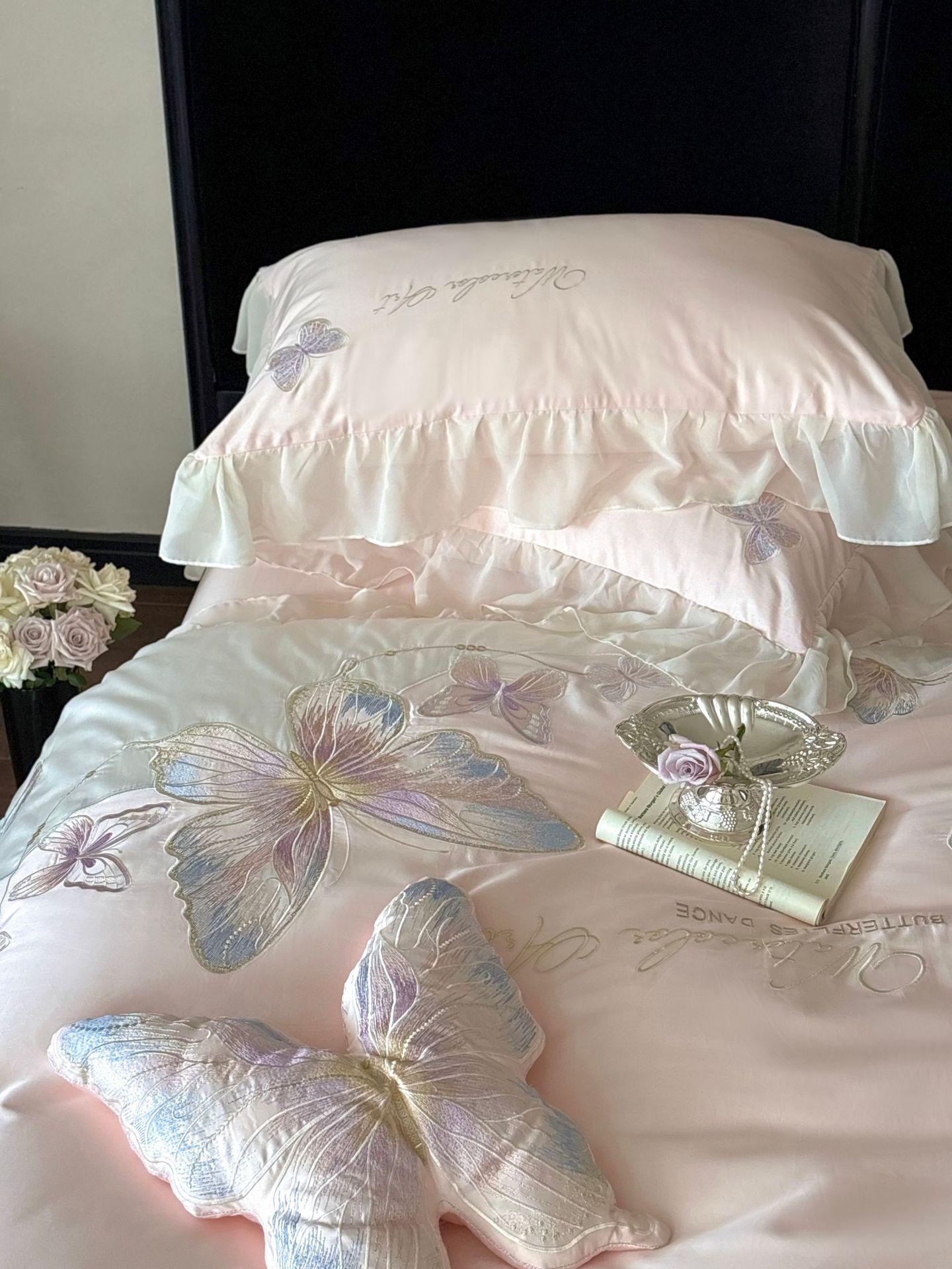 🦋Artesanía del producto: bordado de alta densidad + encaje de gasa plisado