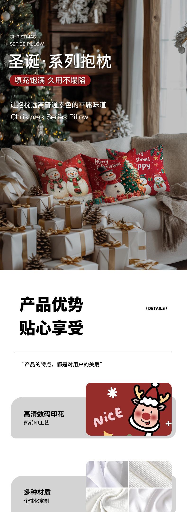 Nueva funda de almohada navideña roja de lino con estampado para el hogar, sofá, ambiente festivo, cojín decorativo