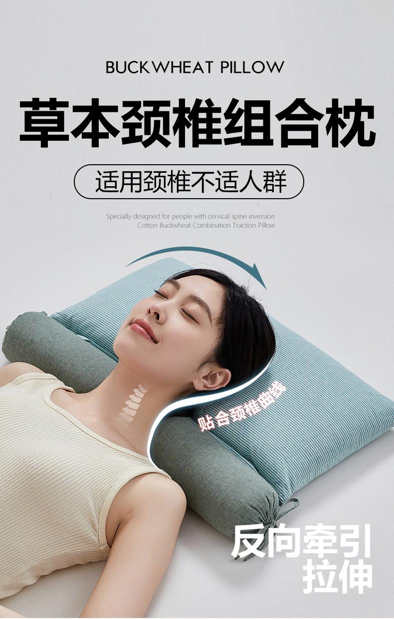 Almohada de trigo sarraceno para protección de la columna cervical, almohada combinada de tracción de trigo sarraceno de algodón, almohada para dormir profundamente para adultos, almohada para el hogar con núcleo antitracción, almohada protectora para el cuello.
