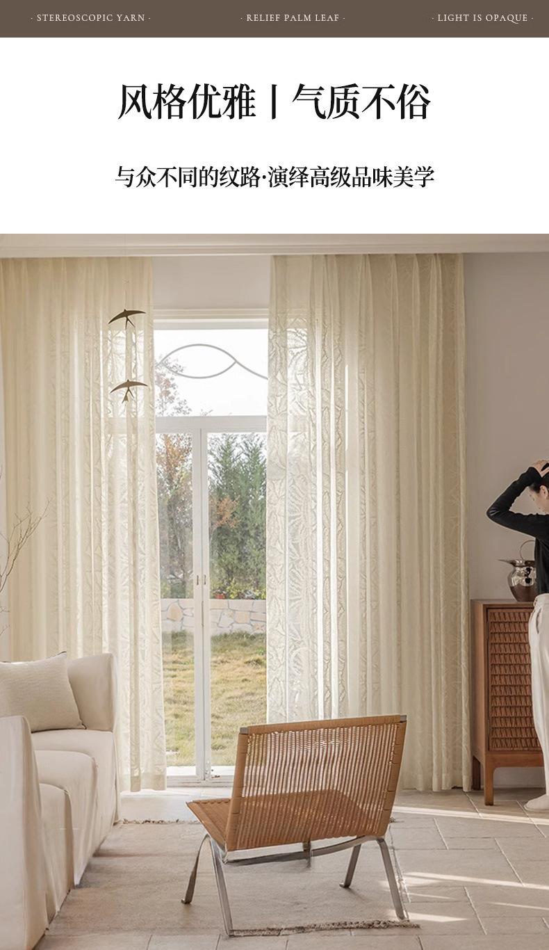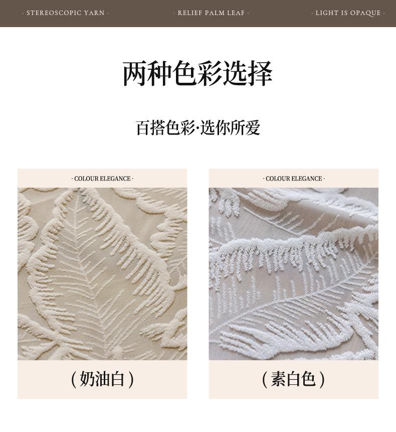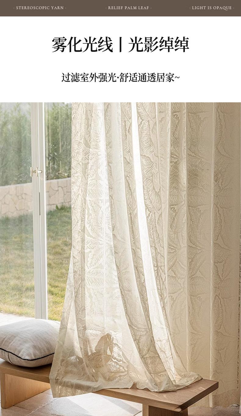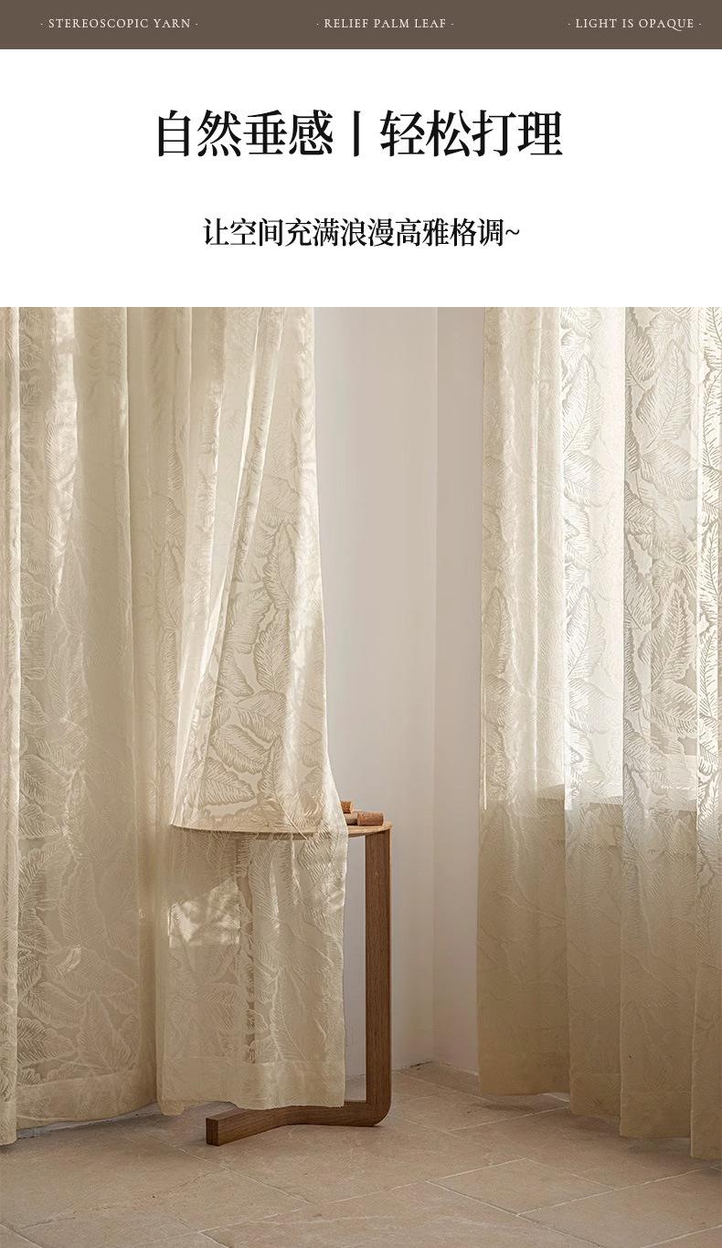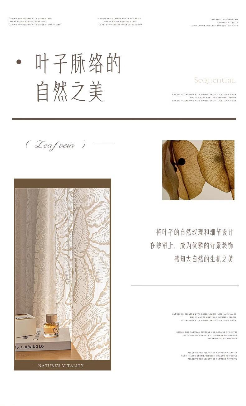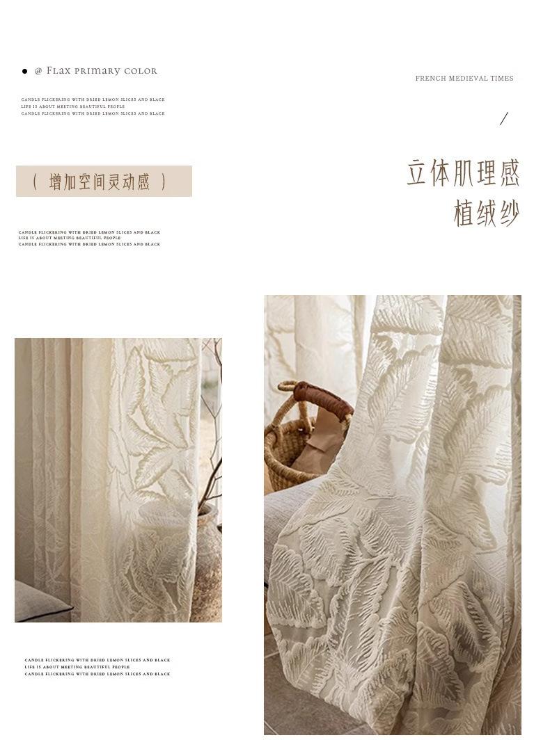 Cortina Transparente de Hoja Vintage Estilo Francés Color Crema Transmisora de Luz Semitransparente Cortina de Ventana Lujo Ligero Gama Alta Hojas Grandes Estampadas
