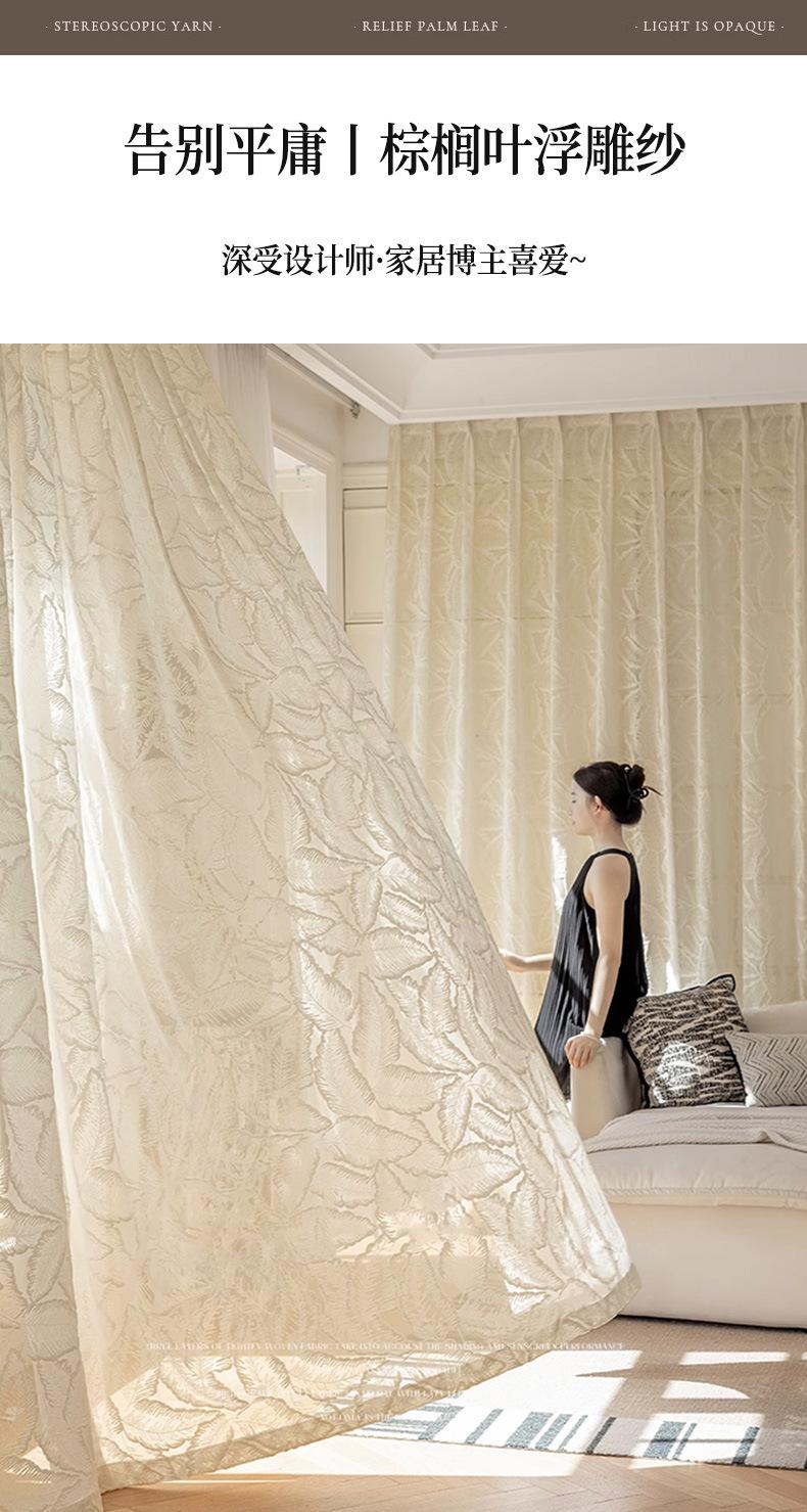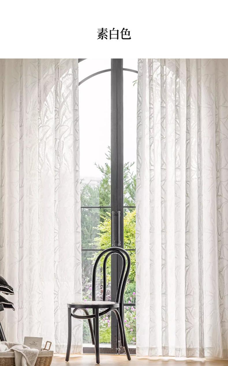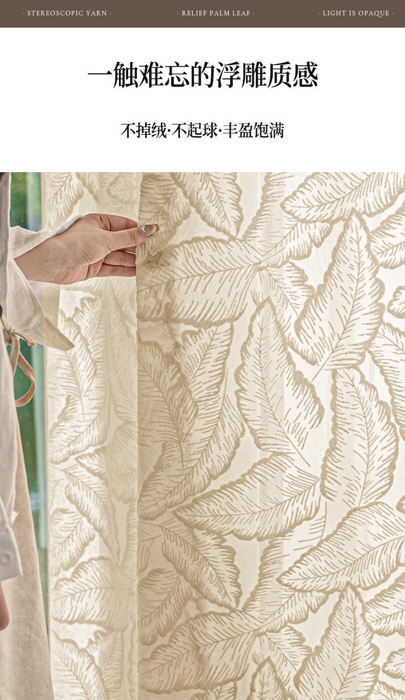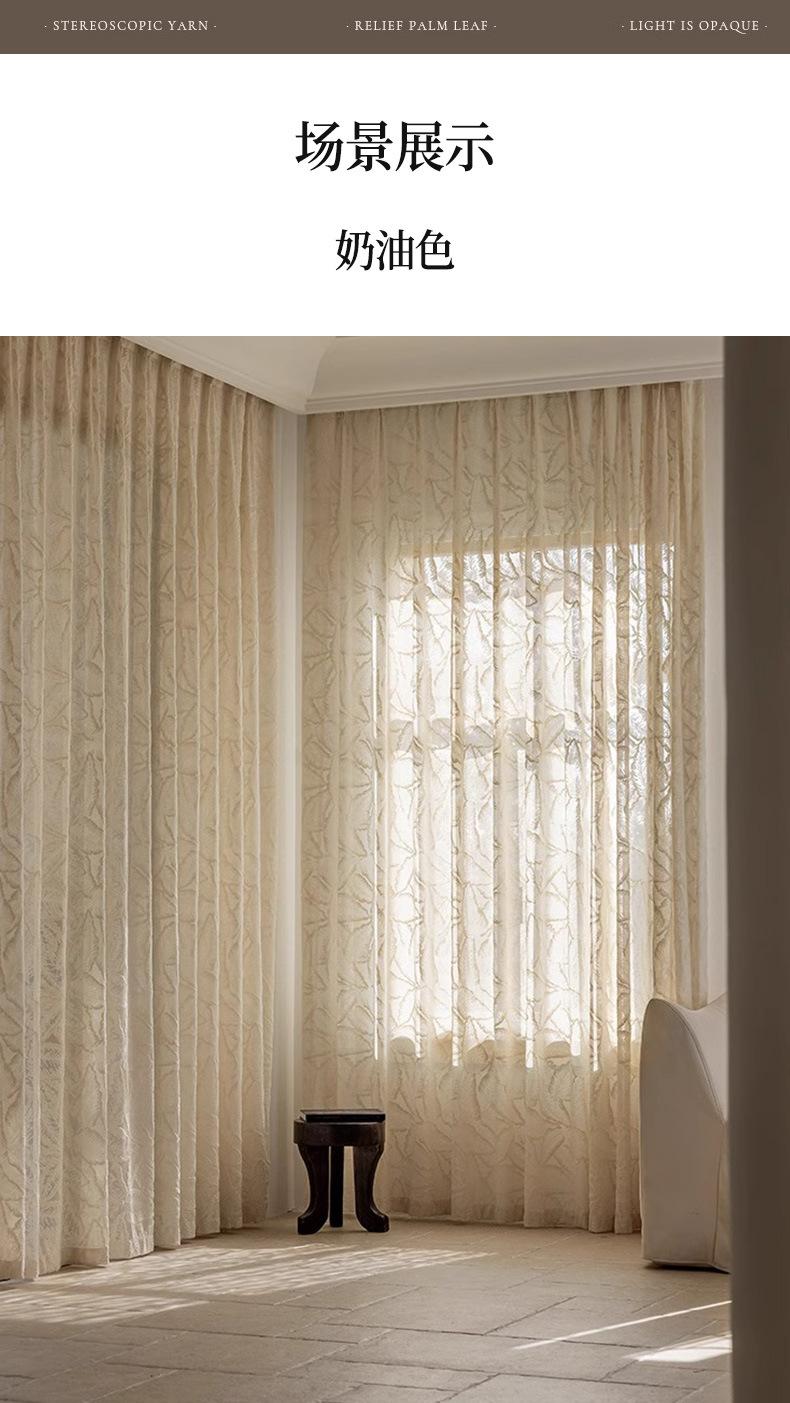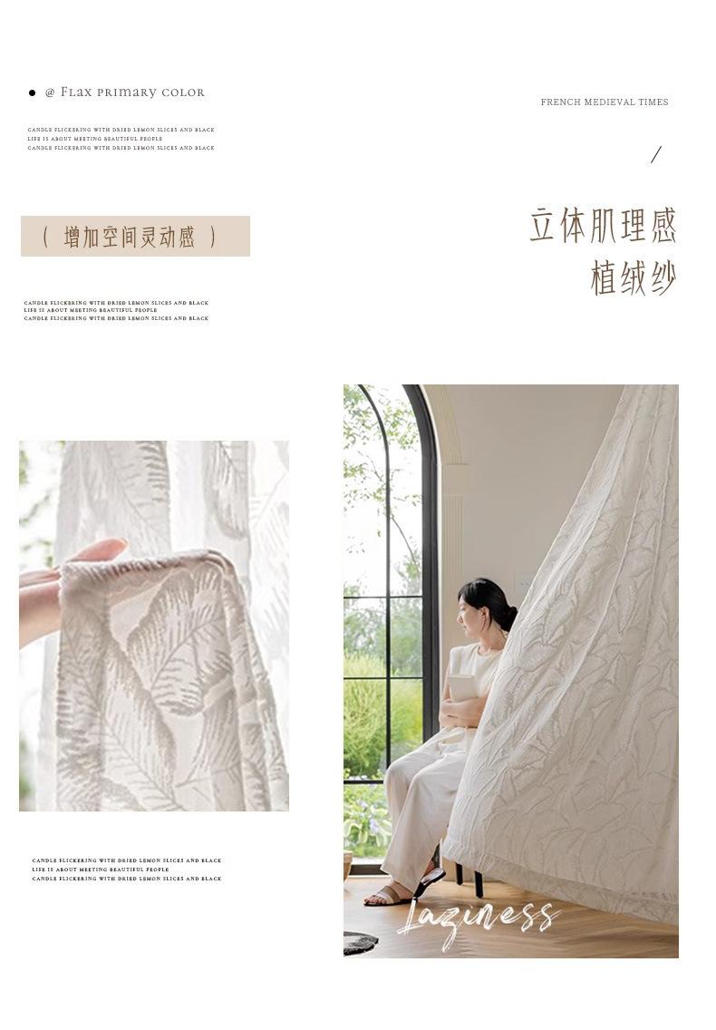 Cortina Transparente de Hoja Vintage Estilo Francés Color Crema Transmisora de Luz Semitransparente Cortina de Ventana Lujo Ligero Gama Alta Hojas Grandes Estampadas