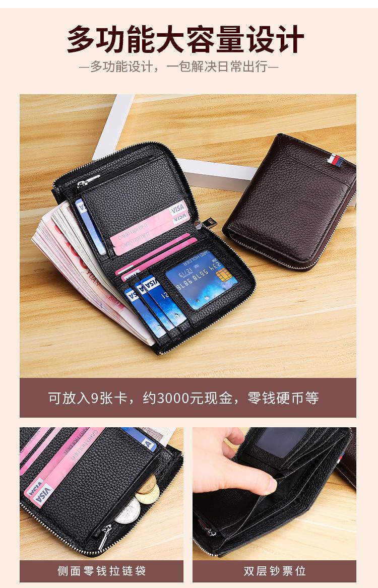 Billetera nueva para hombre transfronteriza tarjetero rfid billetera corta primera capa piel de vaca tarjetero antirrobo cepillo tarjetero femenino bolso de hombre