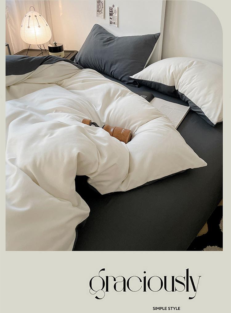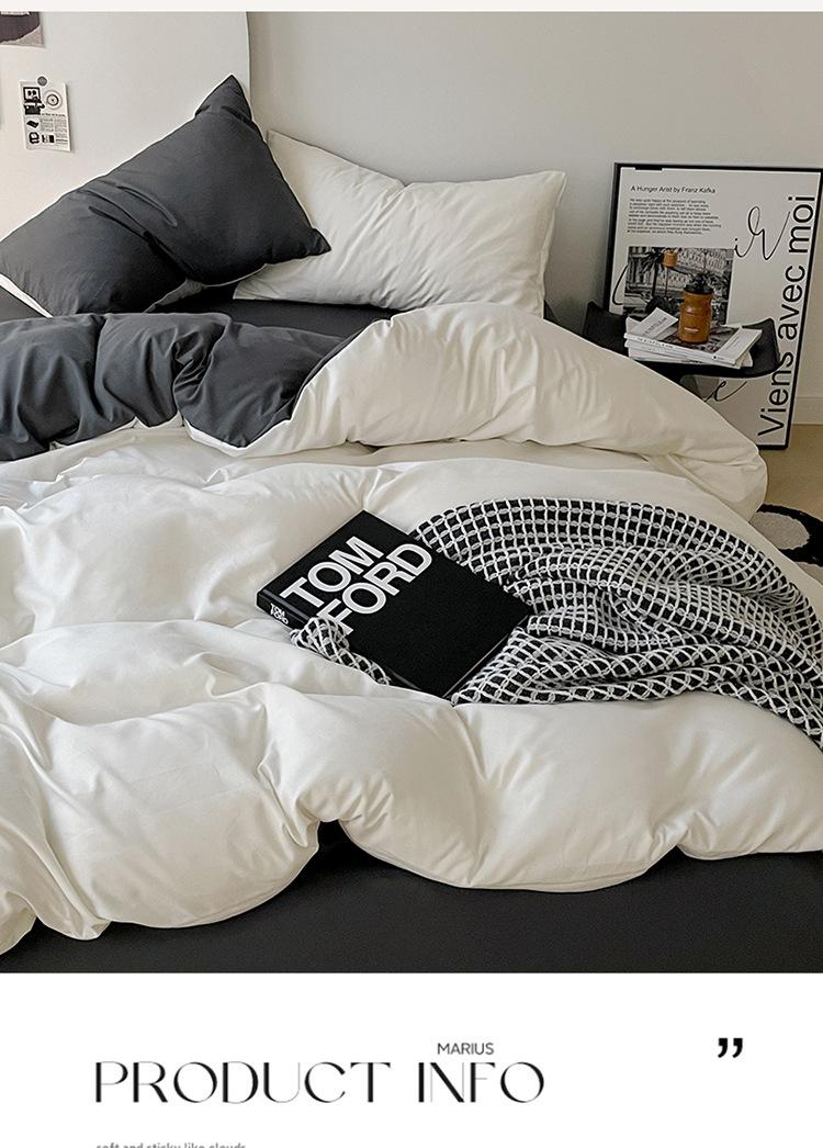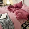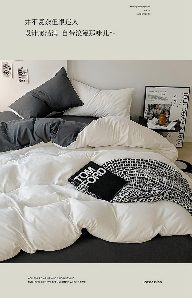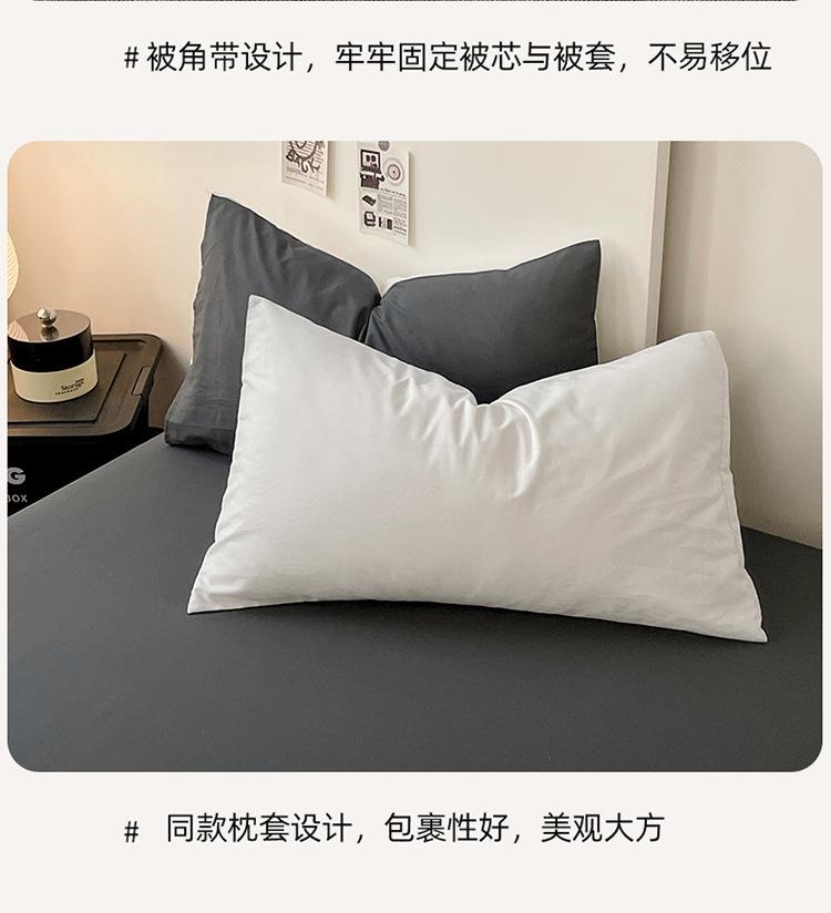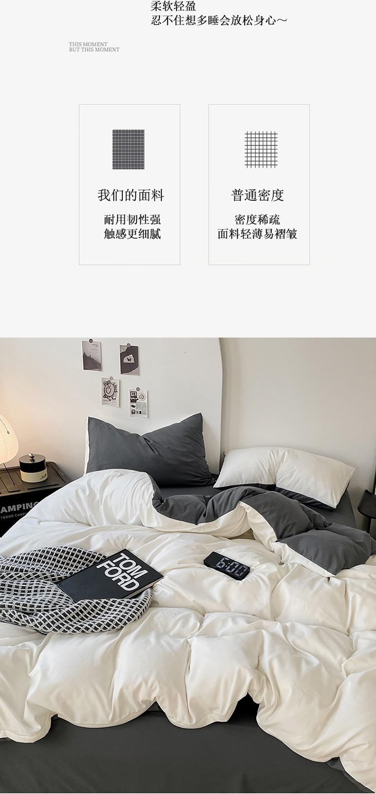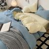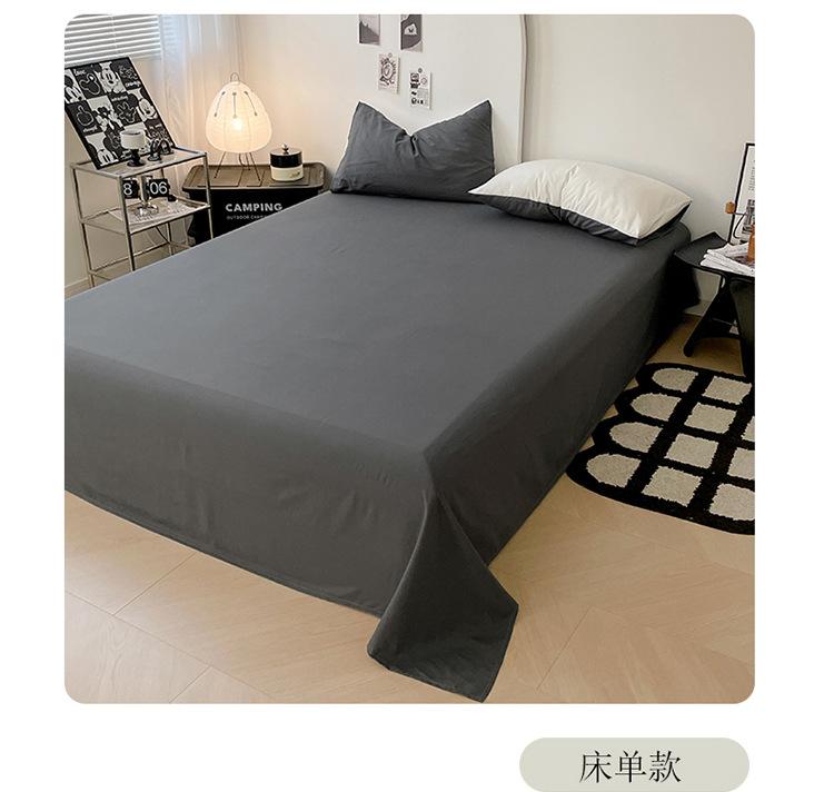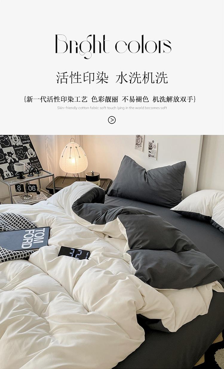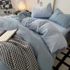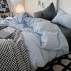 Juego de cama de algodón de cuatro piezas, estilo Ins, de color liso y doble lavado, para dormitorio de estudiantes, sábana y edredón, juego de tres piezas al por mayor