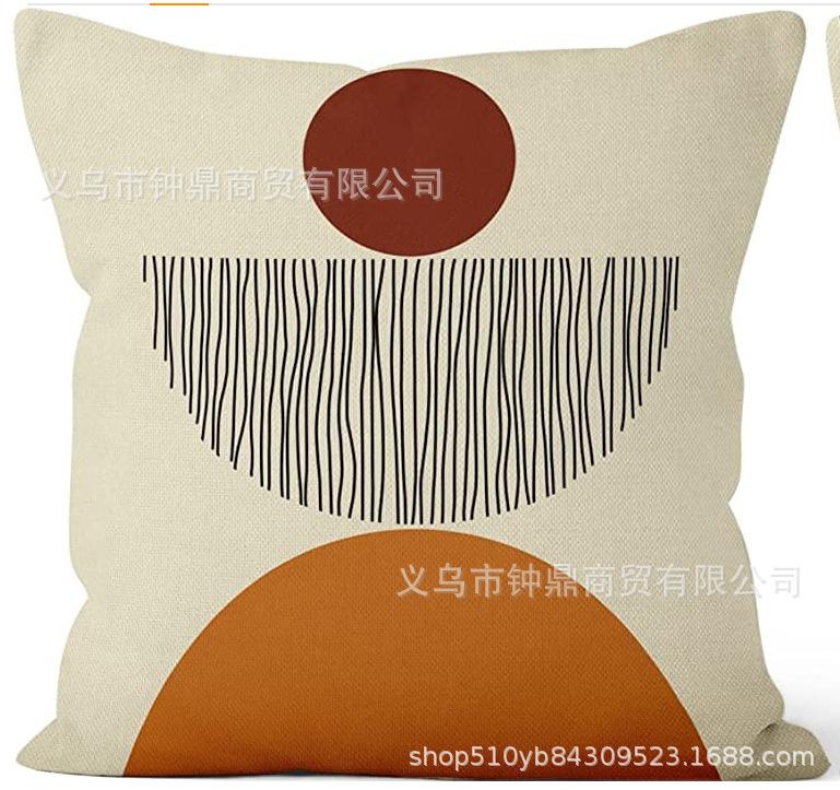 Funda de almohada de lino con estampado artístico de líneas abstractas de estilo bohemio para sofá.