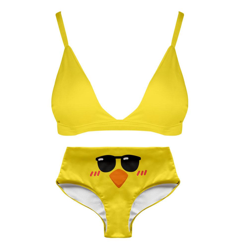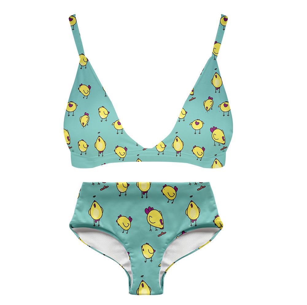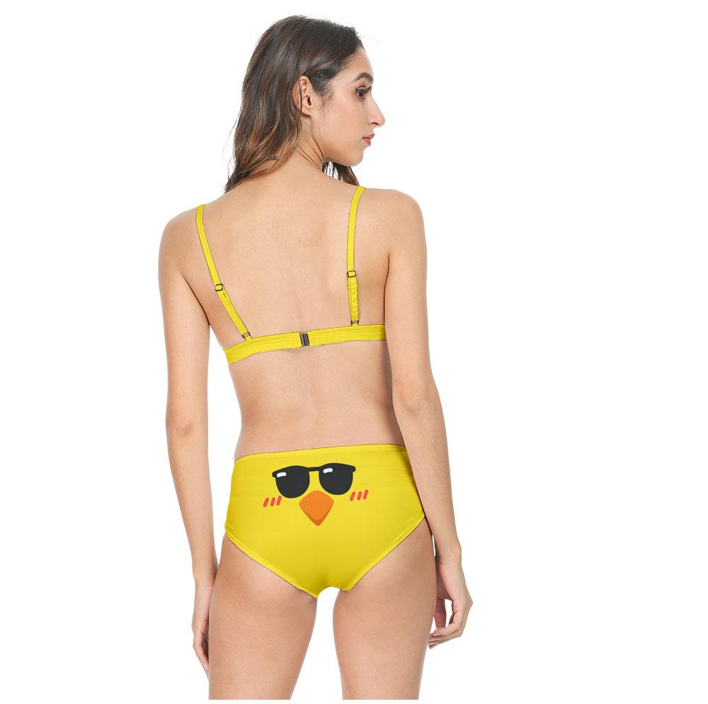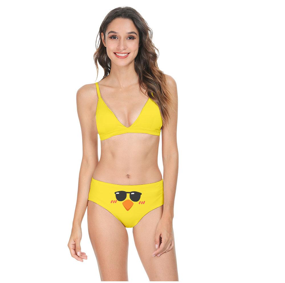 Traje de baño de tres puntos con estampado de pollo lindo de Amazon transfronterizo de verano europeo y americano