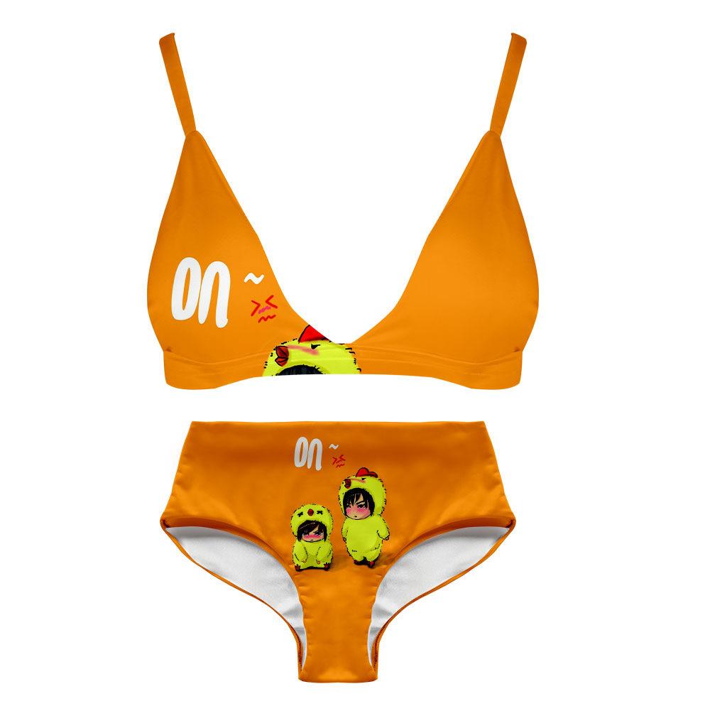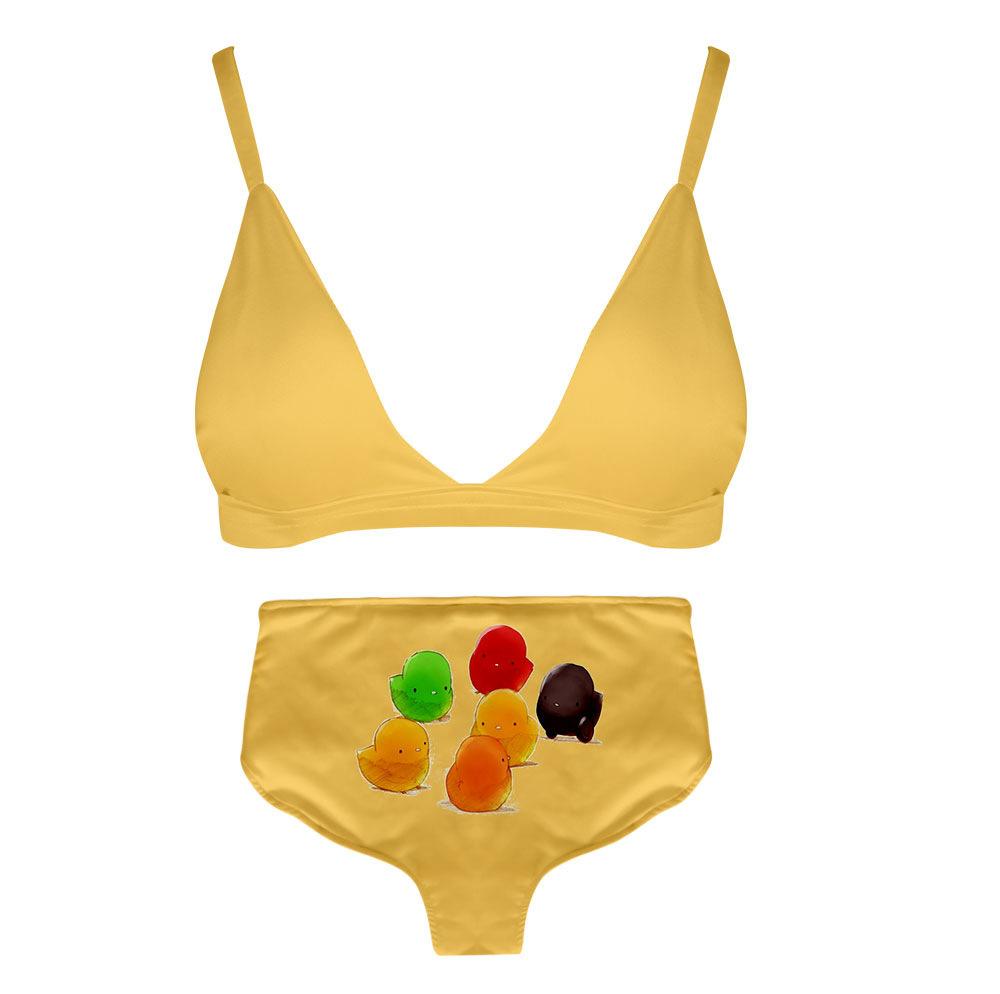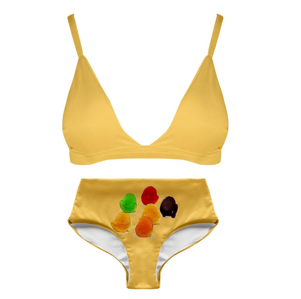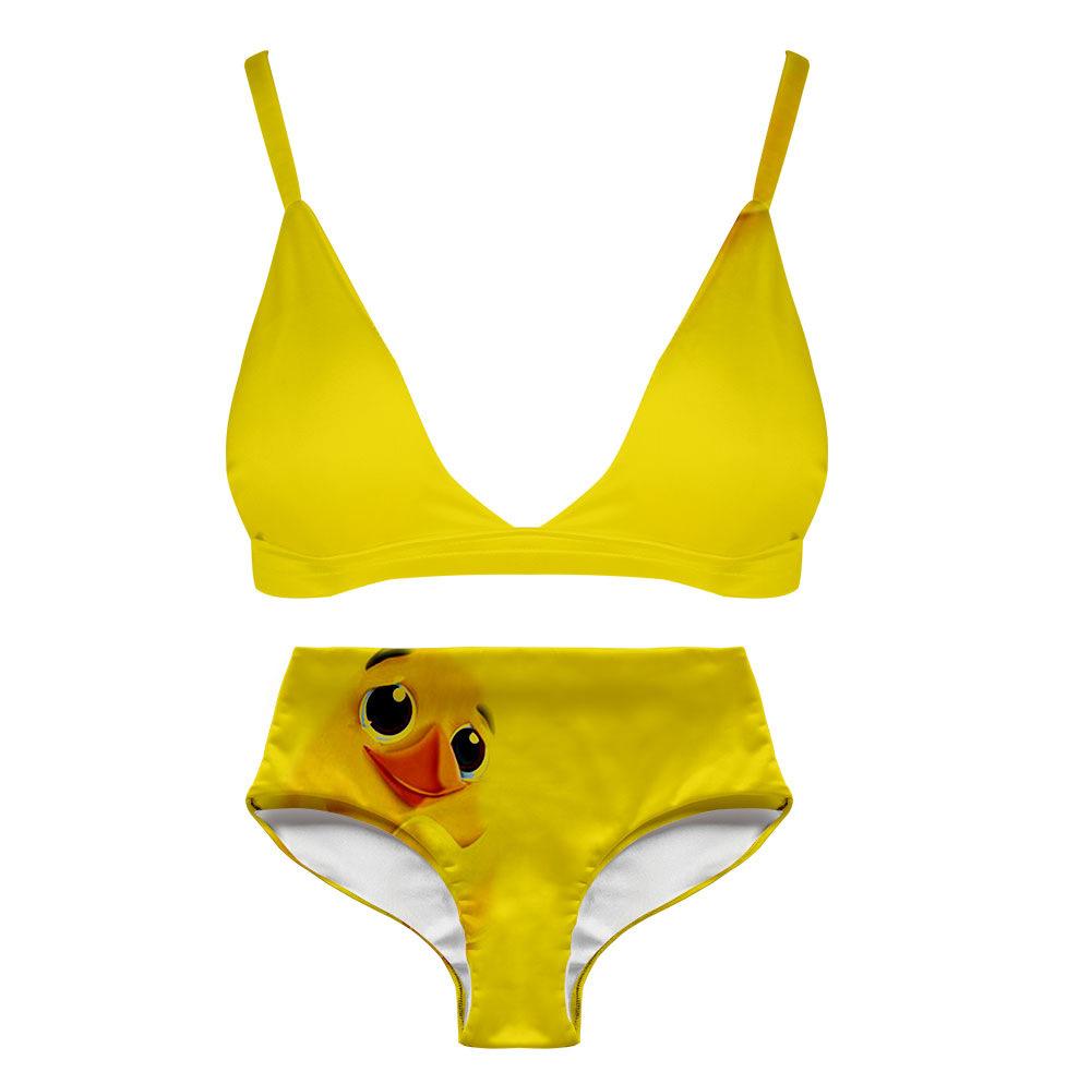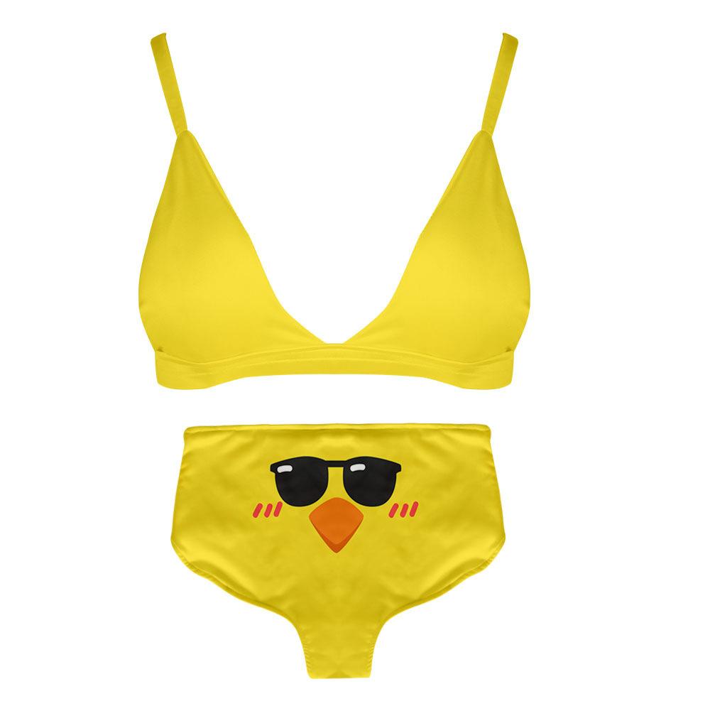 Traje de baño de tres puntos con estampado de pollo lindo de Amazon transfronterizo de verano europeo y americano