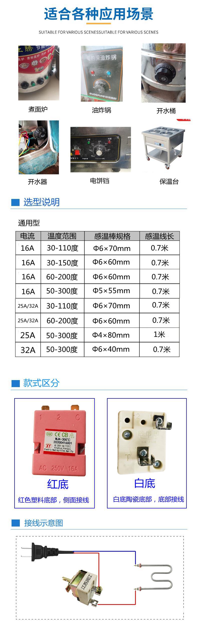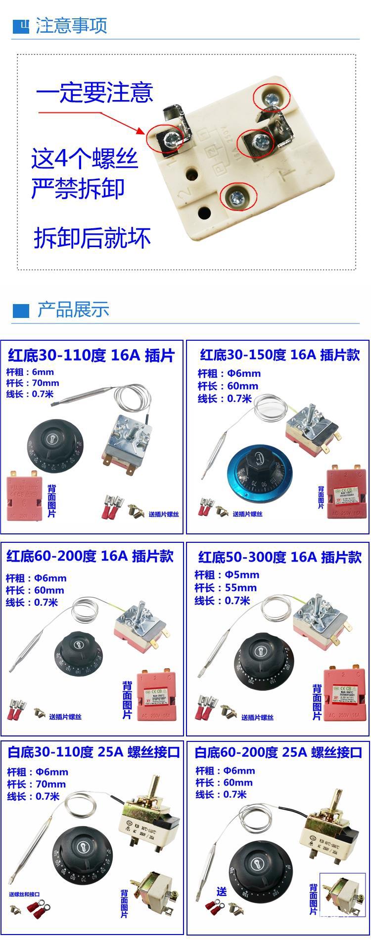 Termostato para freidora eléctrica, controlador centralizado de agua hirviendo, perilla de sartén para estufa, control de temperatura, interruptor mecánico, arranque ajustable