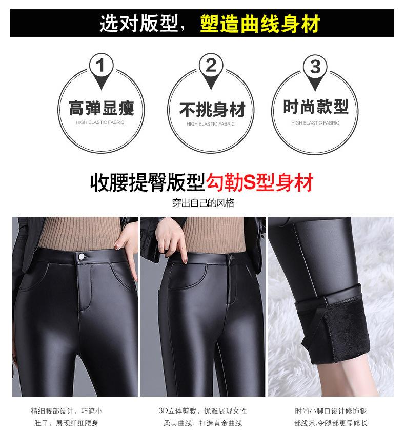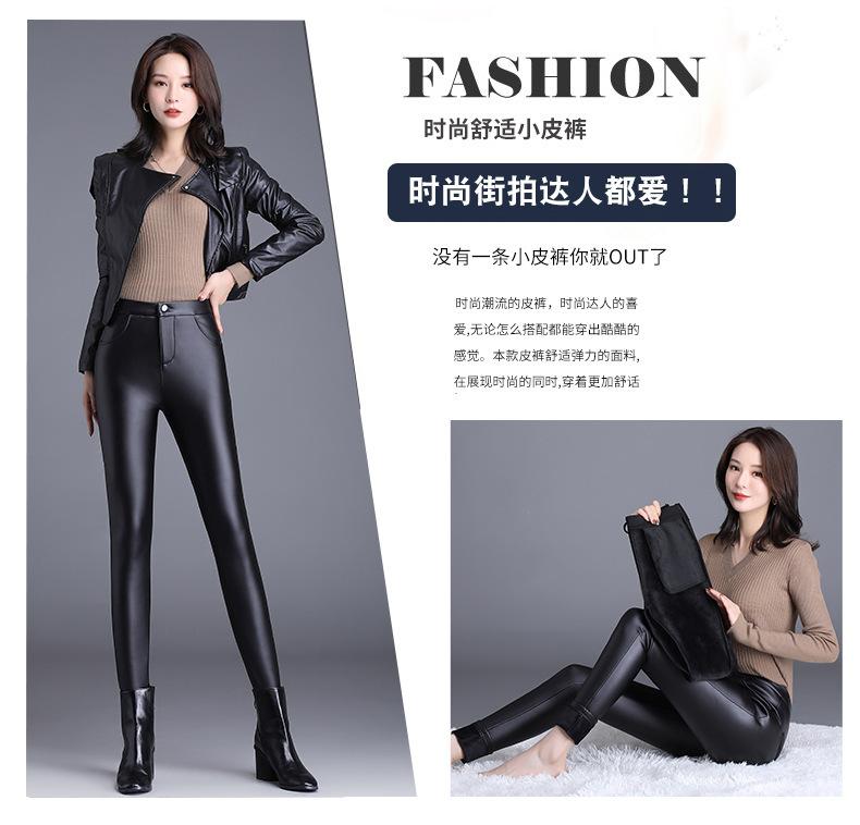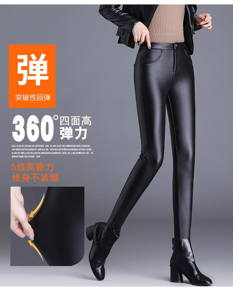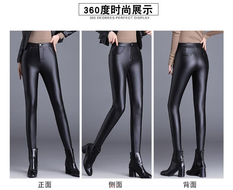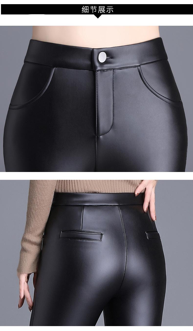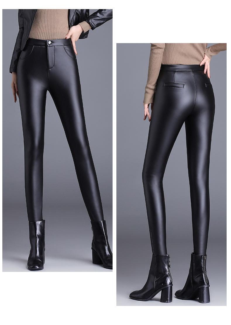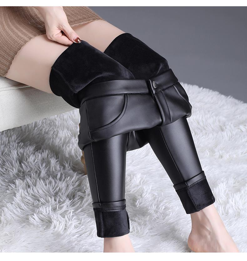 Compra Pantalones ajustados 2024 de pierna pitillo para invierno, talla grande, forrados de vellón, elásticos, para uso exterior, pantalones de cuero para mujer, mate, cintura alta, piel de oveja al por mayor en Joom.pro