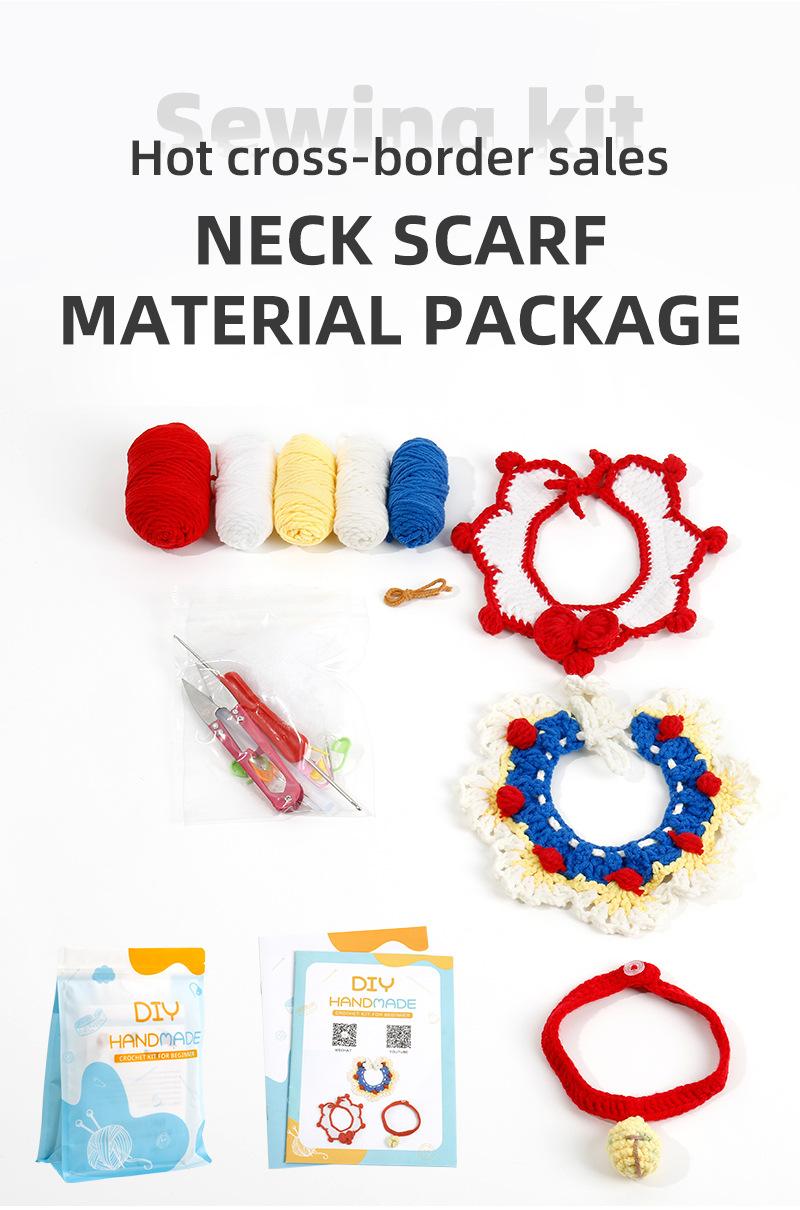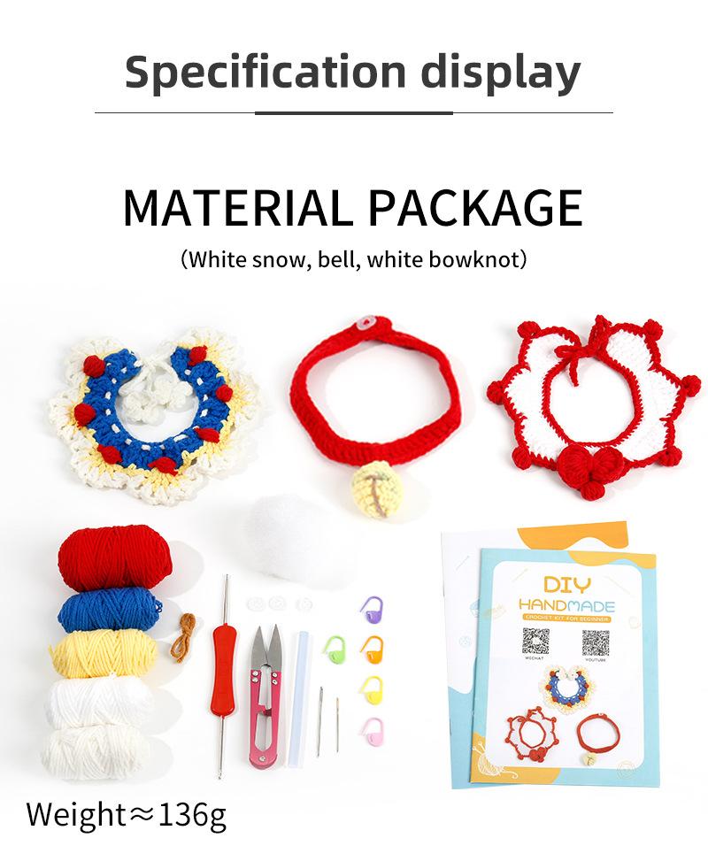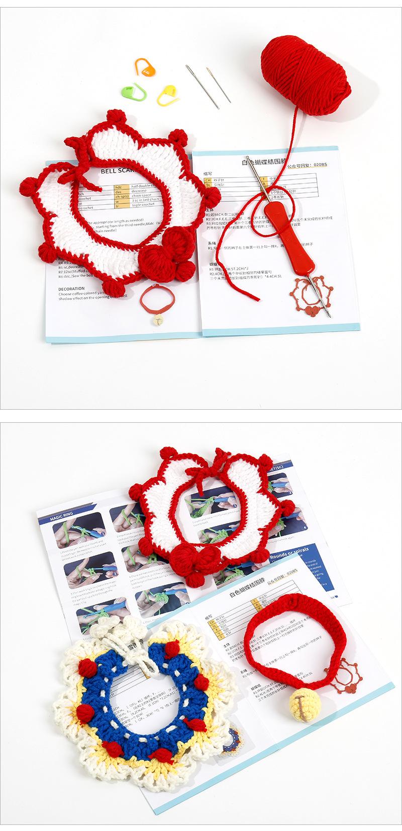 Colarinho de lã de crochê feito à mão, sino de malha, laço, cachecol de gato, faça você mesmo, material de cachecol tecido, bolsa