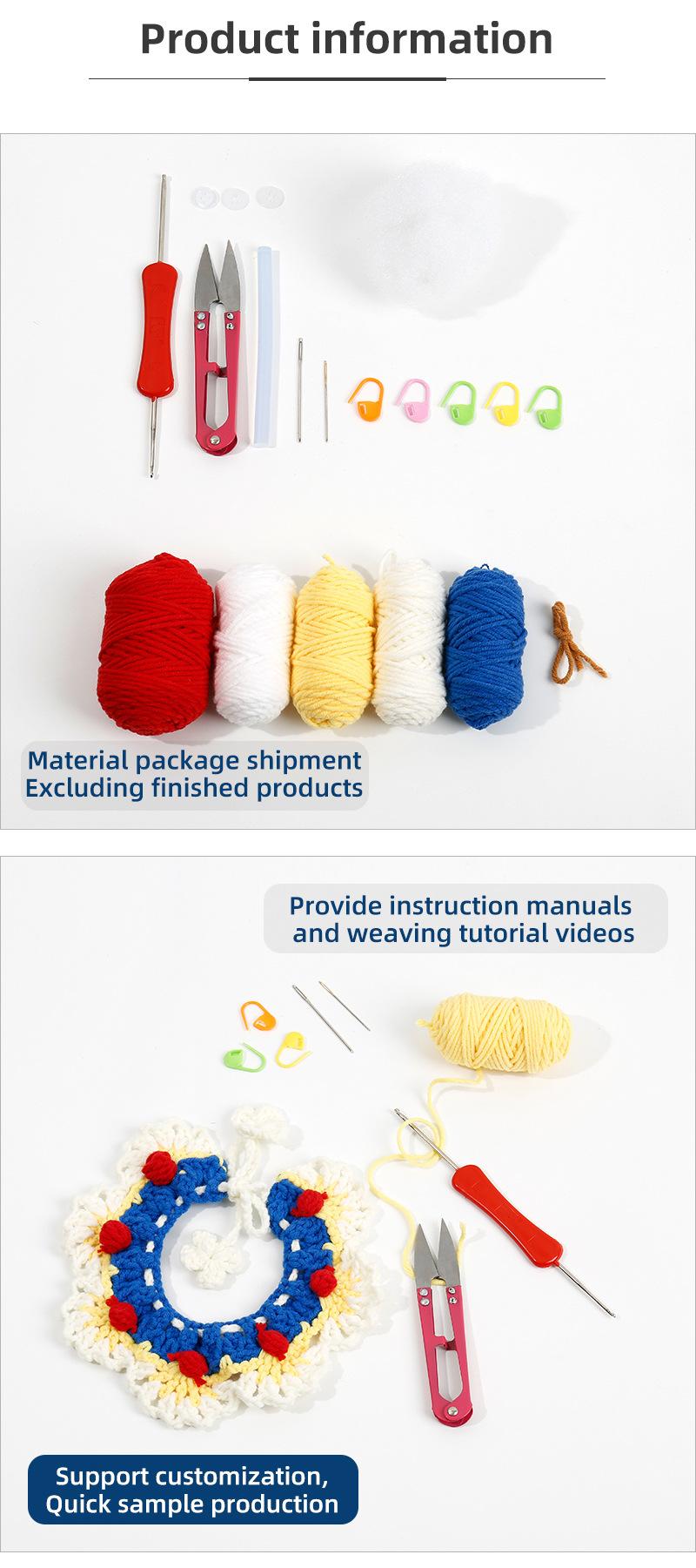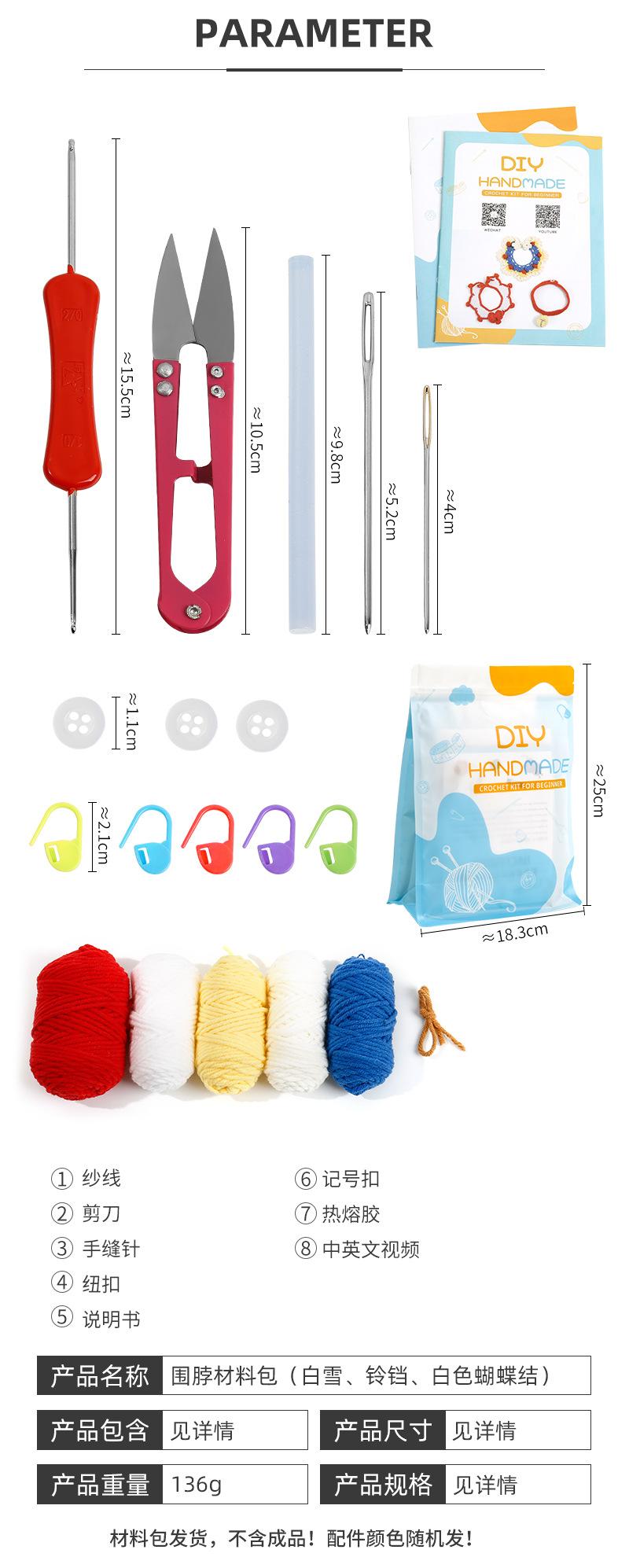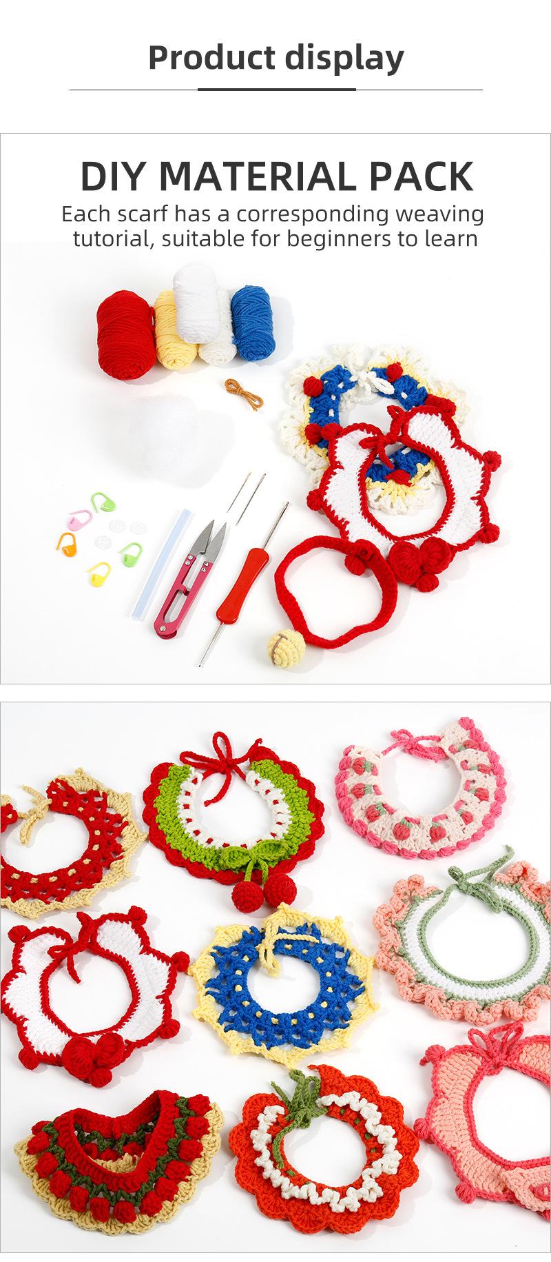 Colarinho de lã de crochê feito à mão, sino de malha, laço, cachecol de gato, faça você mesmo, material de cachecol tecido, bolsa