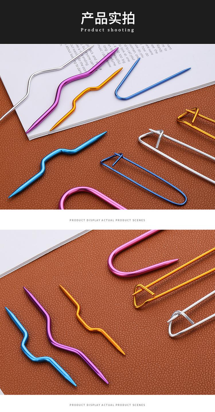 Color de Hebilla de Aluminio Aleación de Aluminio Hebilla Grande Aguja Herramienta de Tejido de Lana Aguja de Hebilla con Pin Antiliberación Marcador de Suéter
