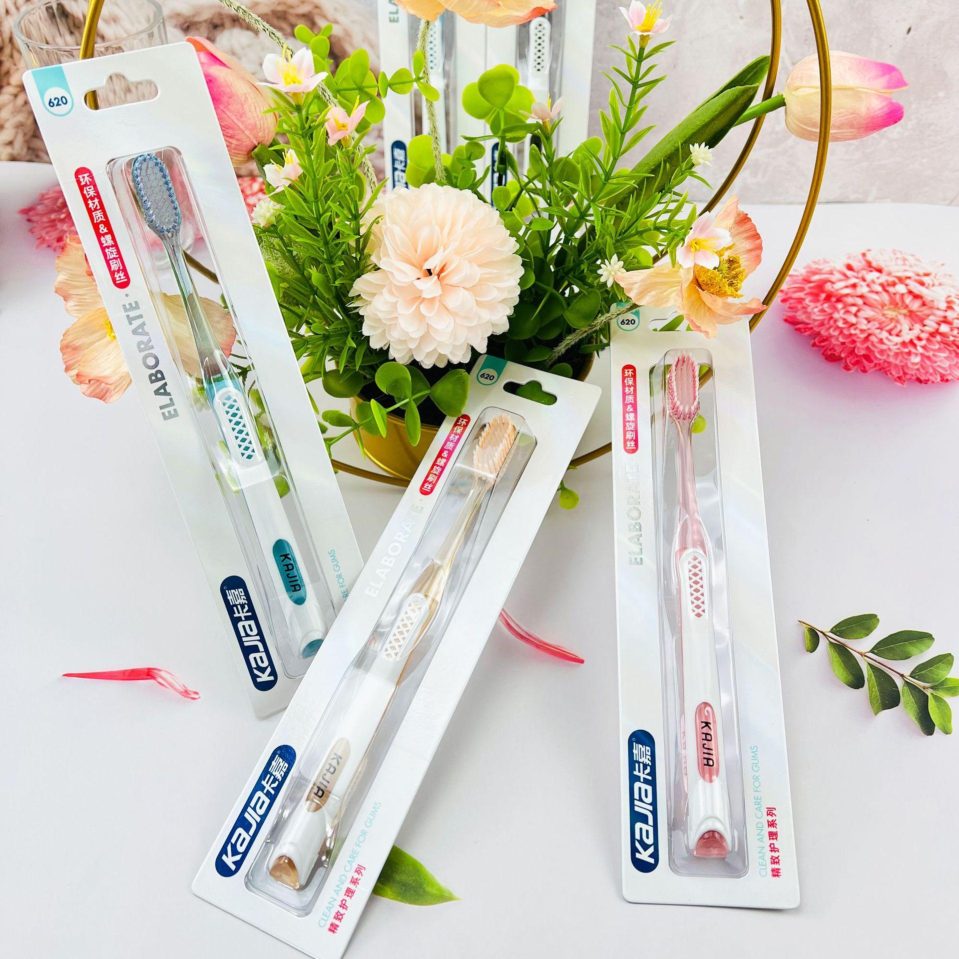 Cepillo de dientes individual Kajia de alta gama para parejas para hombres y mujeres Adulto sin pelo Antideslizante Espiral Cepillo de dientes suave Cepillo de dientes suave
