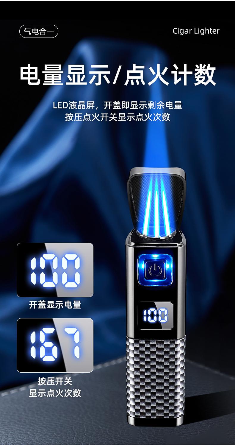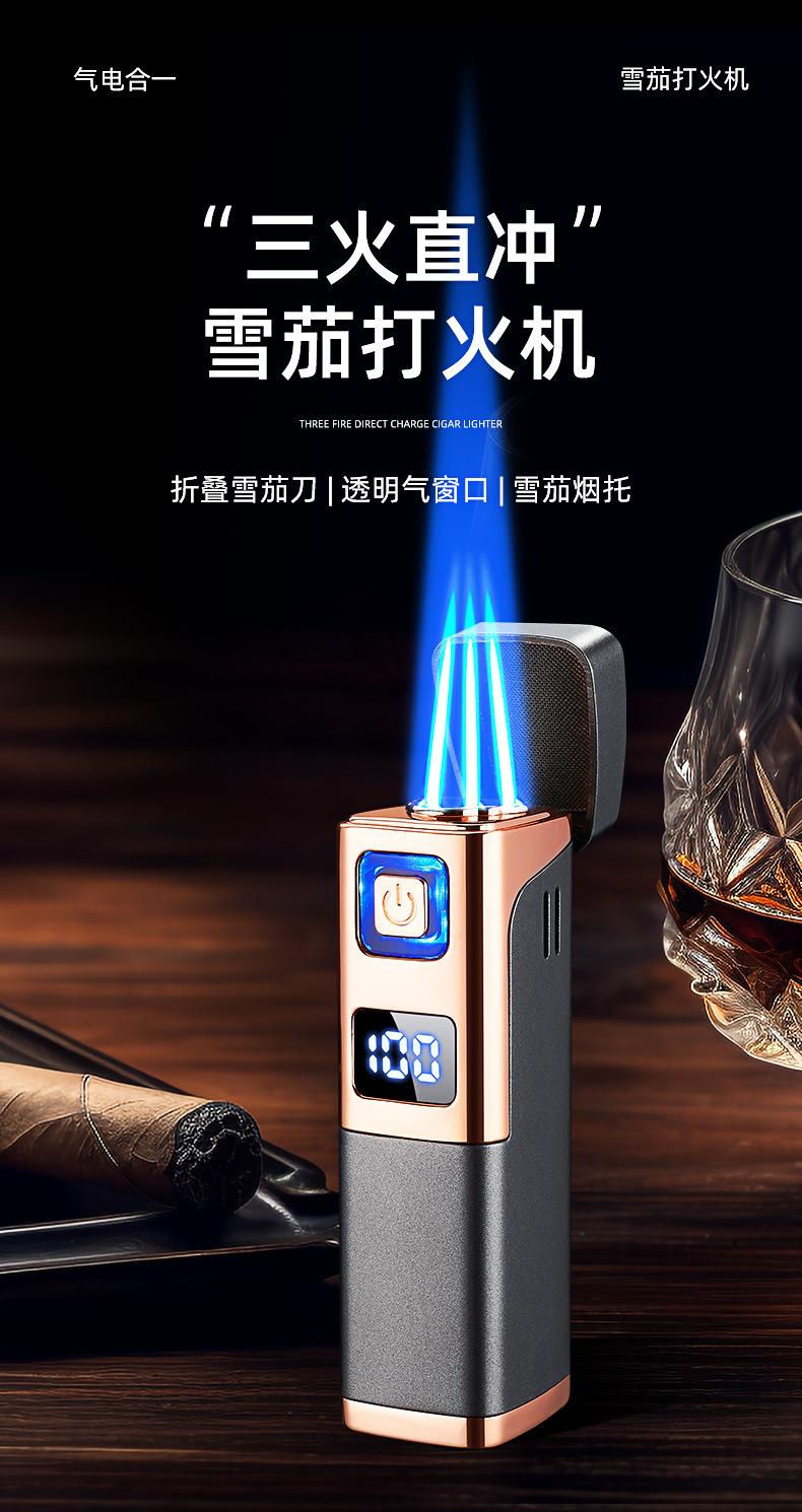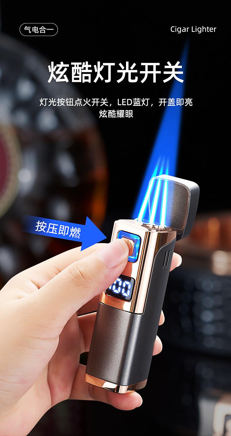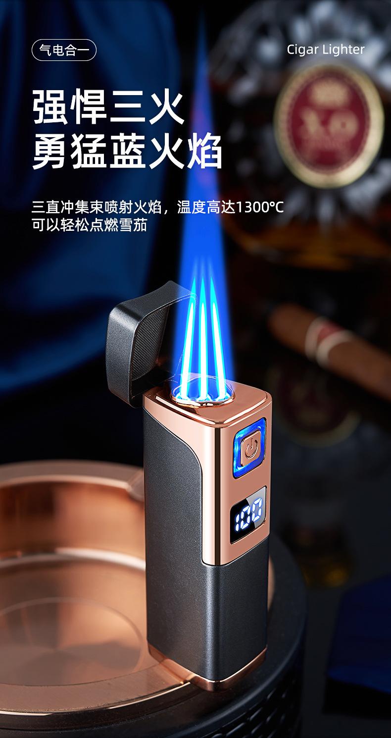 Nuevo Encendedor Creativo de Tres Llamas Directas a Llama Azul para Cigarros E-commerce Transfronterizo Especial Encendedor Concentrador de Fuego Gas-eléctrico Dos-en-Uno Portátil Punto