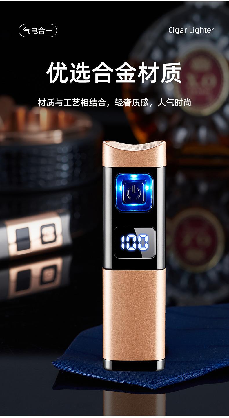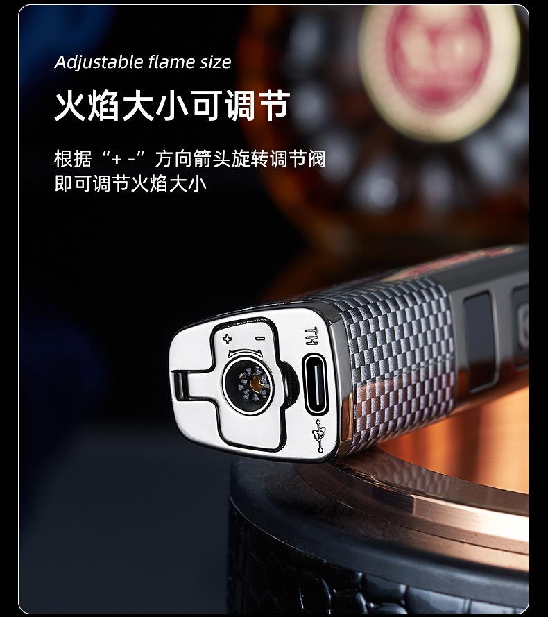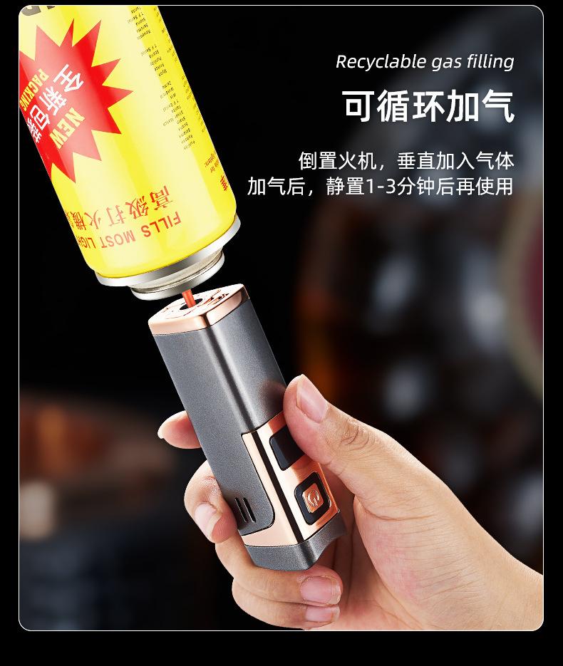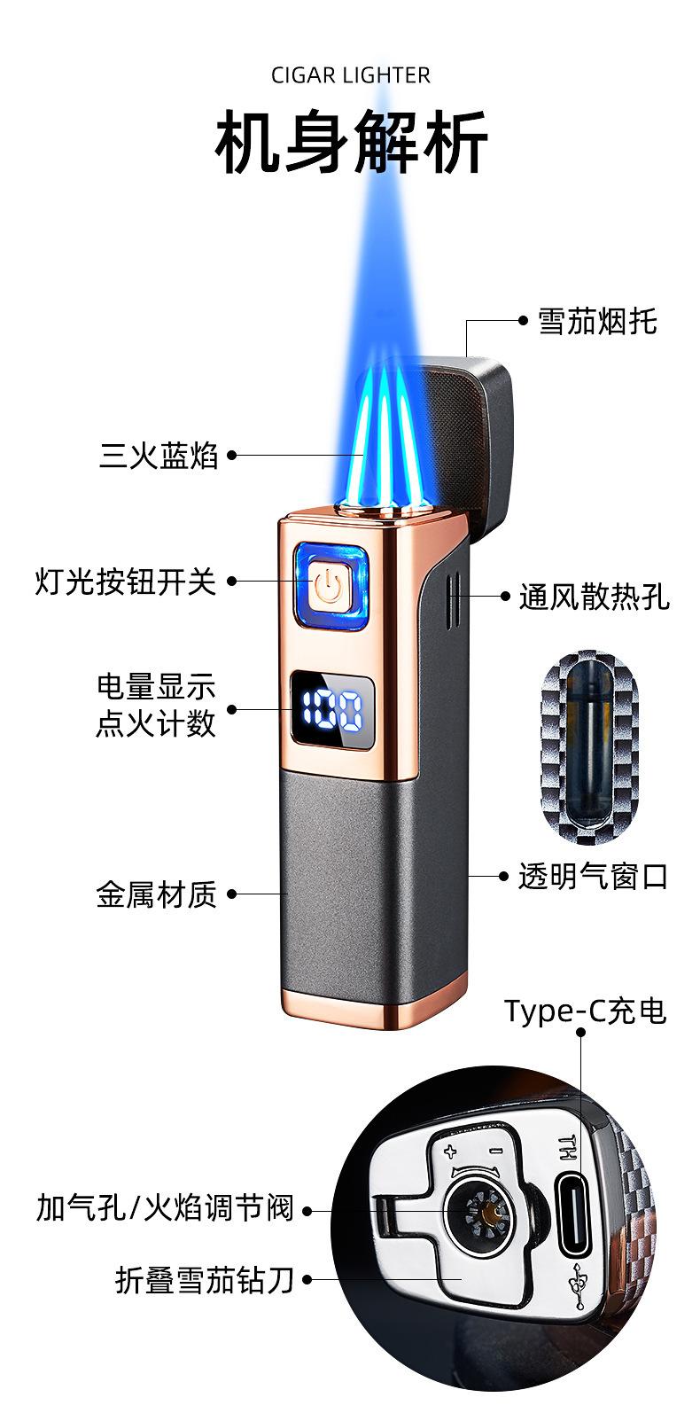 Nuevo Encendedor Creativo de Tres Llamas Directas a Llama Azul para Cigarros E-commerce Transfronterizo Especial Encendedor Concentrador de Fuego Gas-eléctrico Dos-en-Uno Portátil Punto