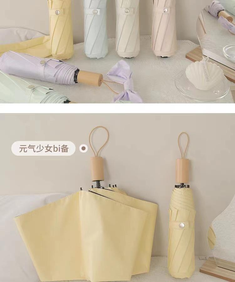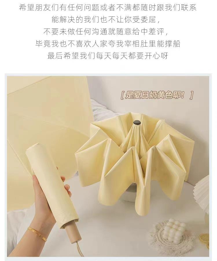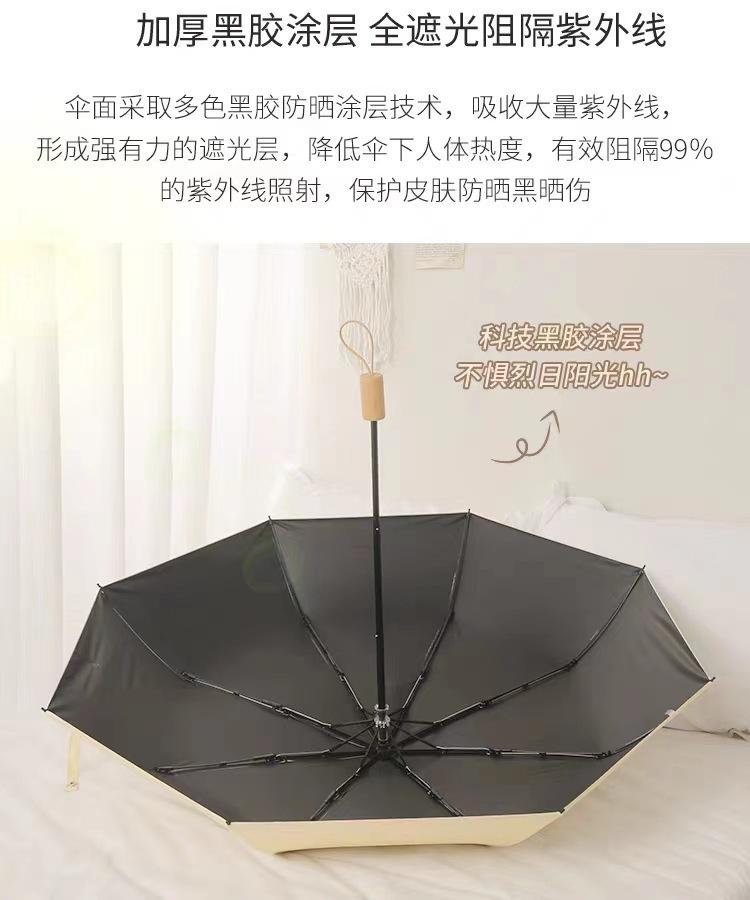 Paraguas manual de tres pliegues, venta al por mayor, color sólido, goma negra, protector solar, protección UV, a prueba de lluvia, paraguas plegable de doble uso