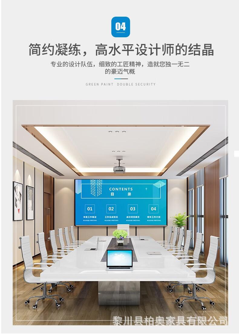 Mesa de conferencia moderna y sencilla con pintura para hornear, mesa larga, mesa de negociación blanca grande y combinación de silla y mesa de conferencia.