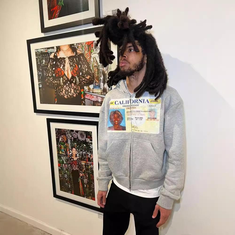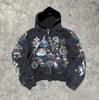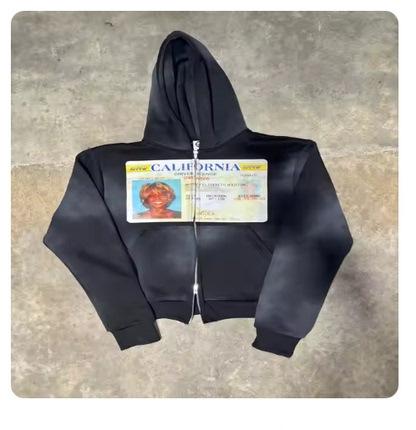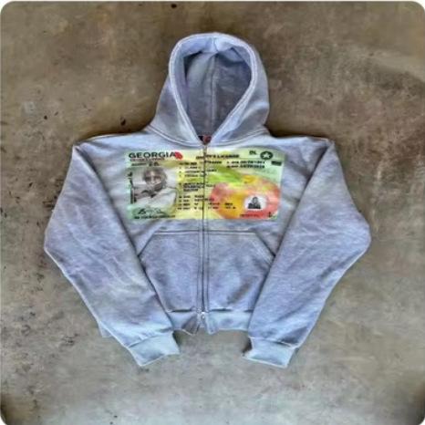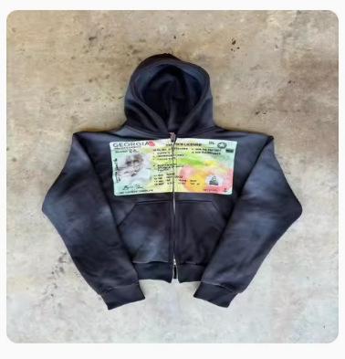 Sudadera con capucha y cremallera para hombre y mujer, otoño e invierno 2025, con estampado de grafiti y tarjeta de identificación, de manga larga, para comercio exterior