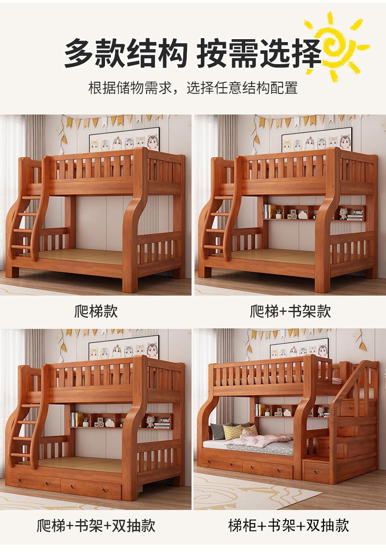 Cama de madera maciza, litera, cama alta y baja, cama matrimonial, litera, cama de madera, armario de dos niveles, cama doble, cama infantil