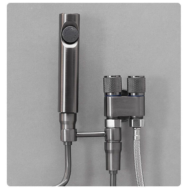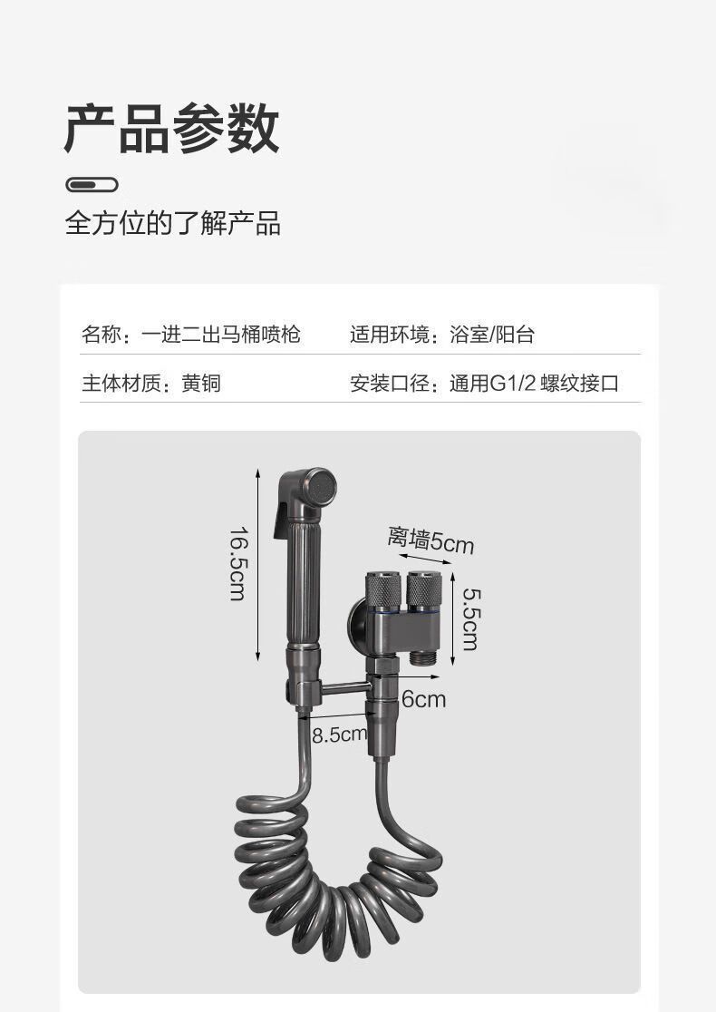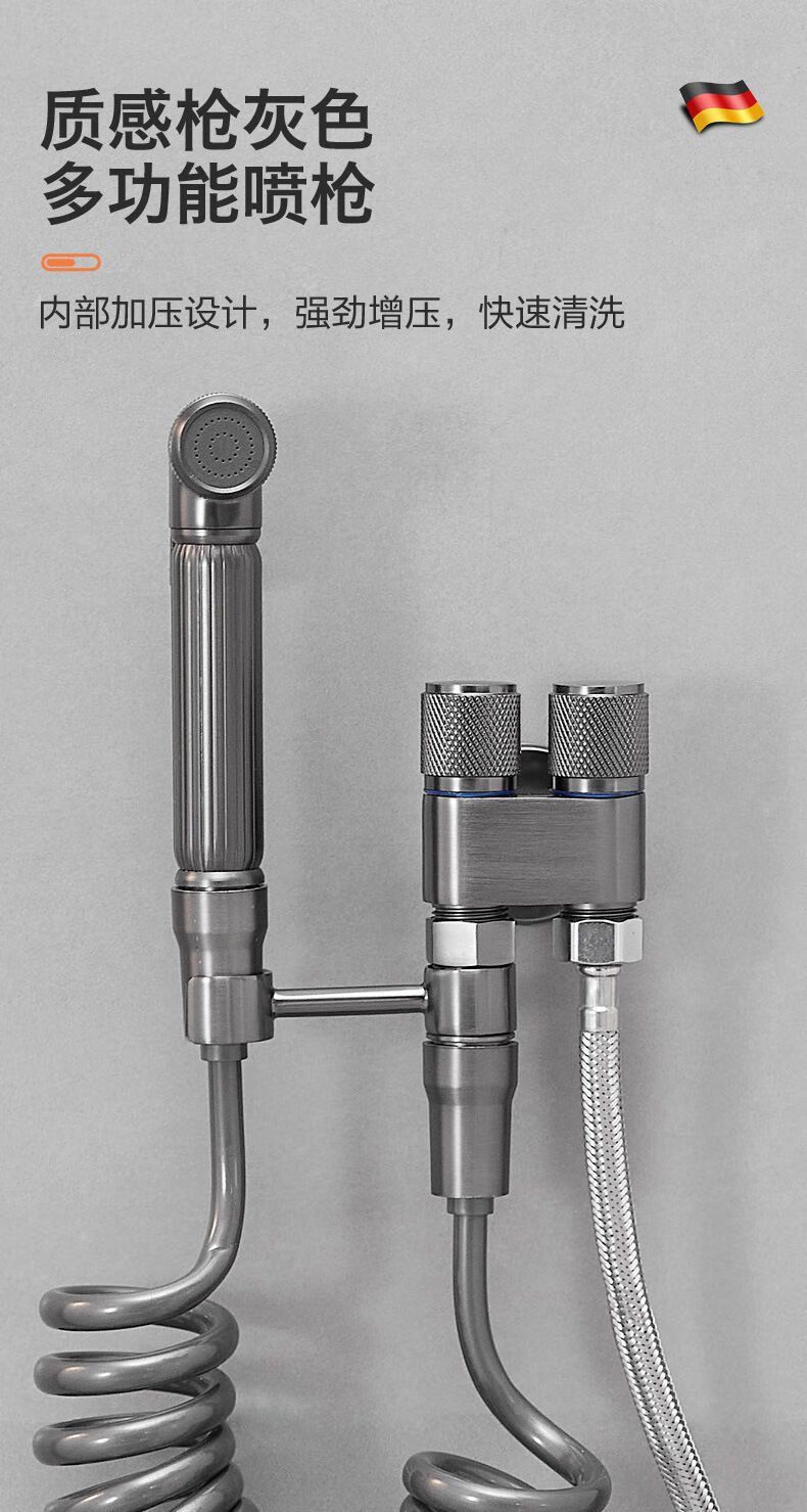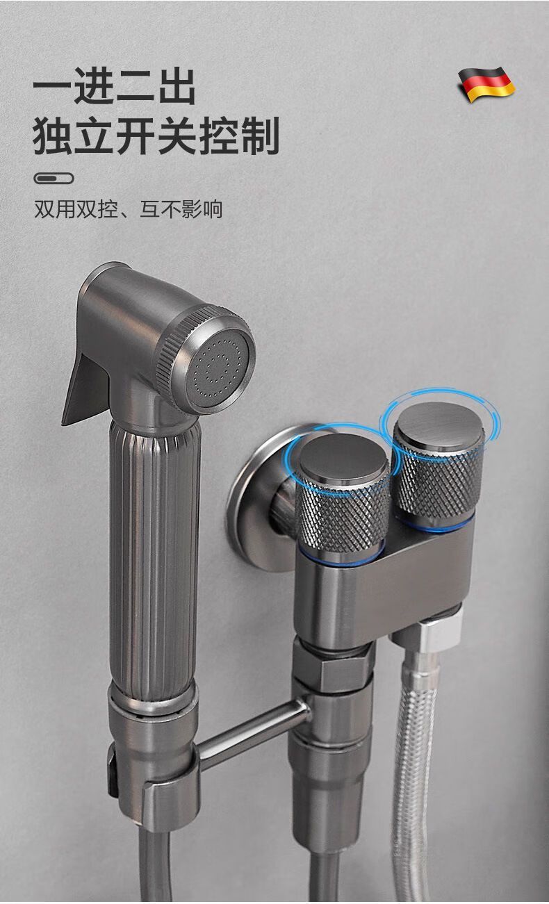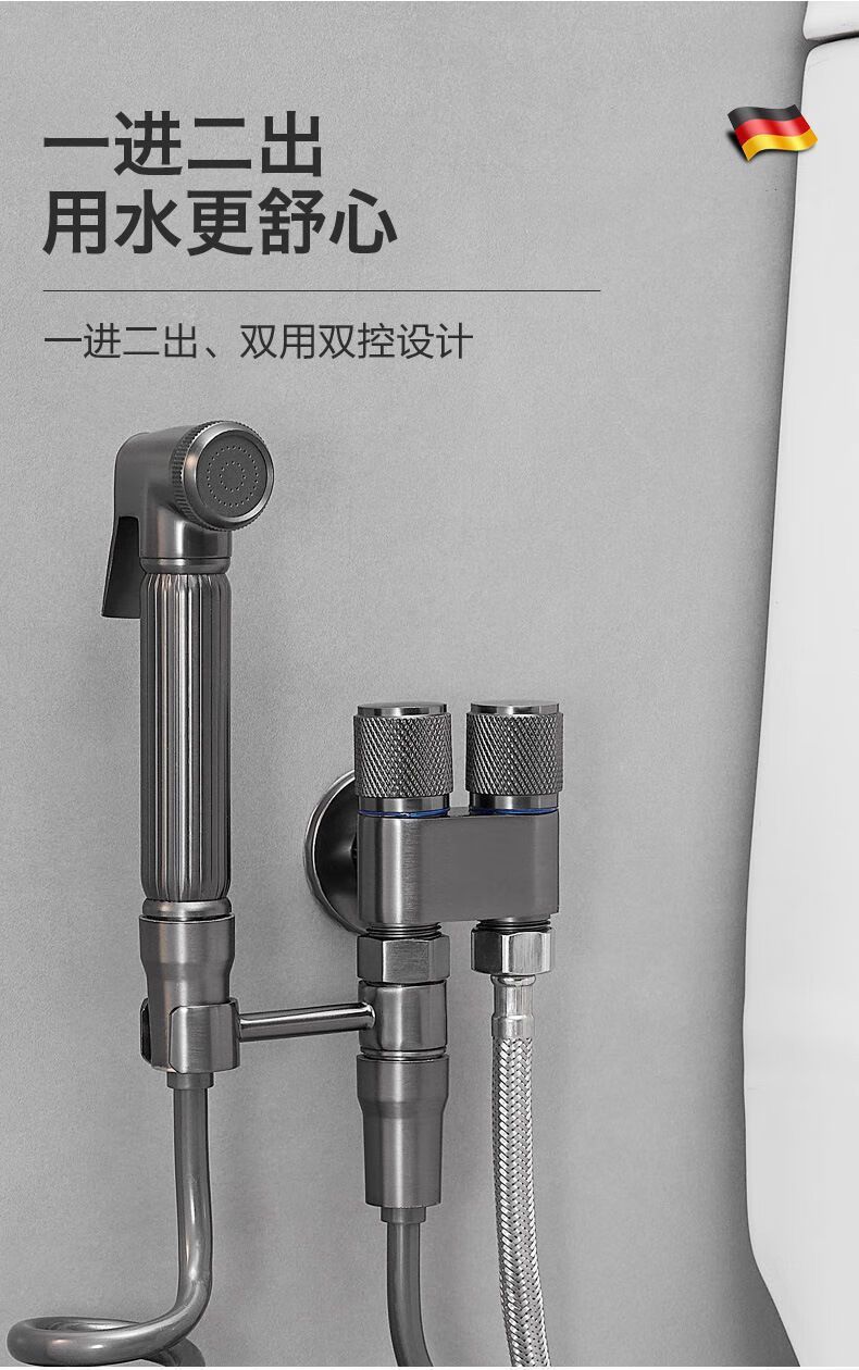 Pistola ceniza limpieza de inodoro todo cobre pistola rociadora grifo compañero de tres vías inodoro doméstico uno en dos salidas rociador de refuerzo