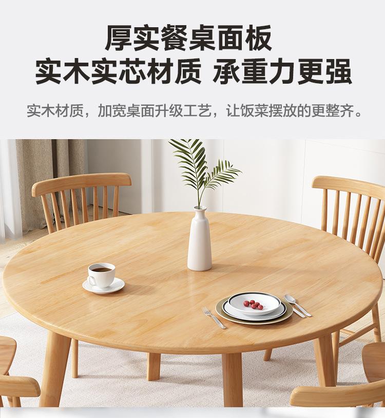 Mesa de Comedor de Madera Maciza Hogar Mesa Redonda de 1.2 m Mesa de Comedor para Apartamento Pequeño Mesa de Té Balcón Ocio Mesa y Silla de Negociación Mesa Redonda