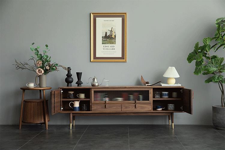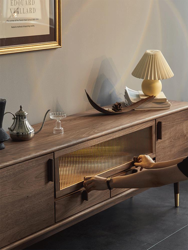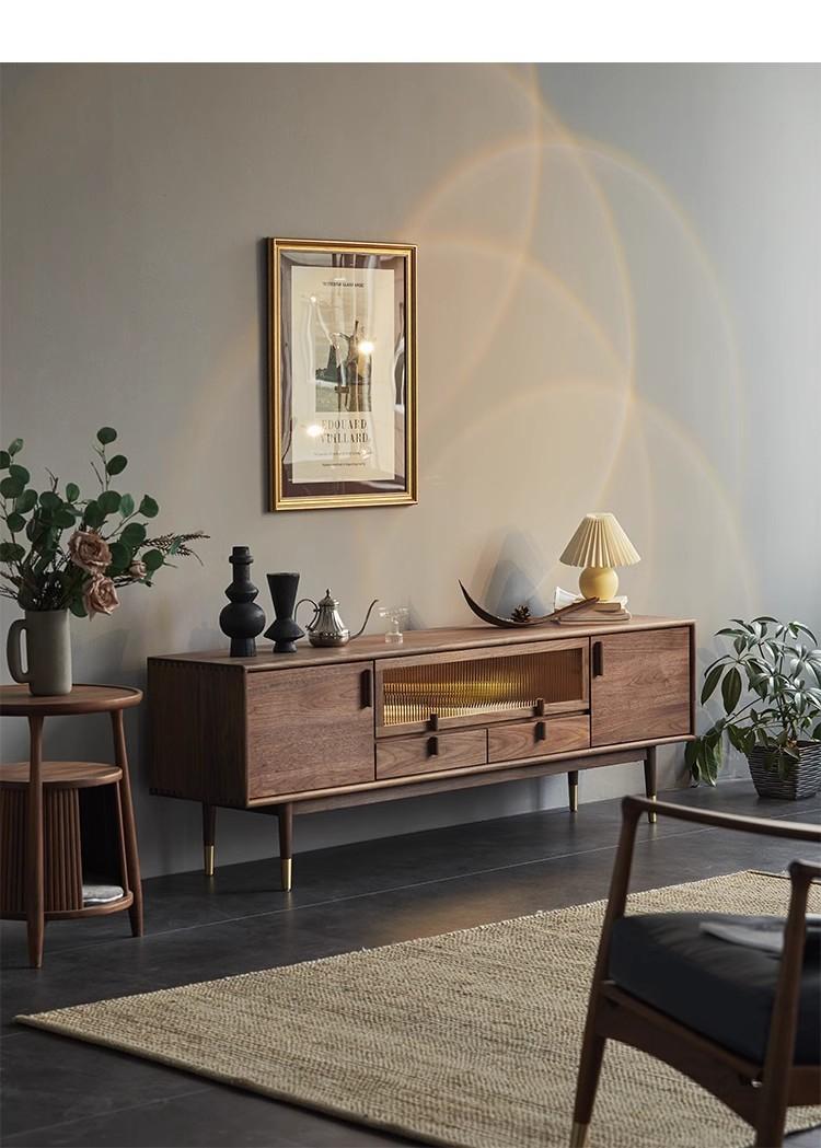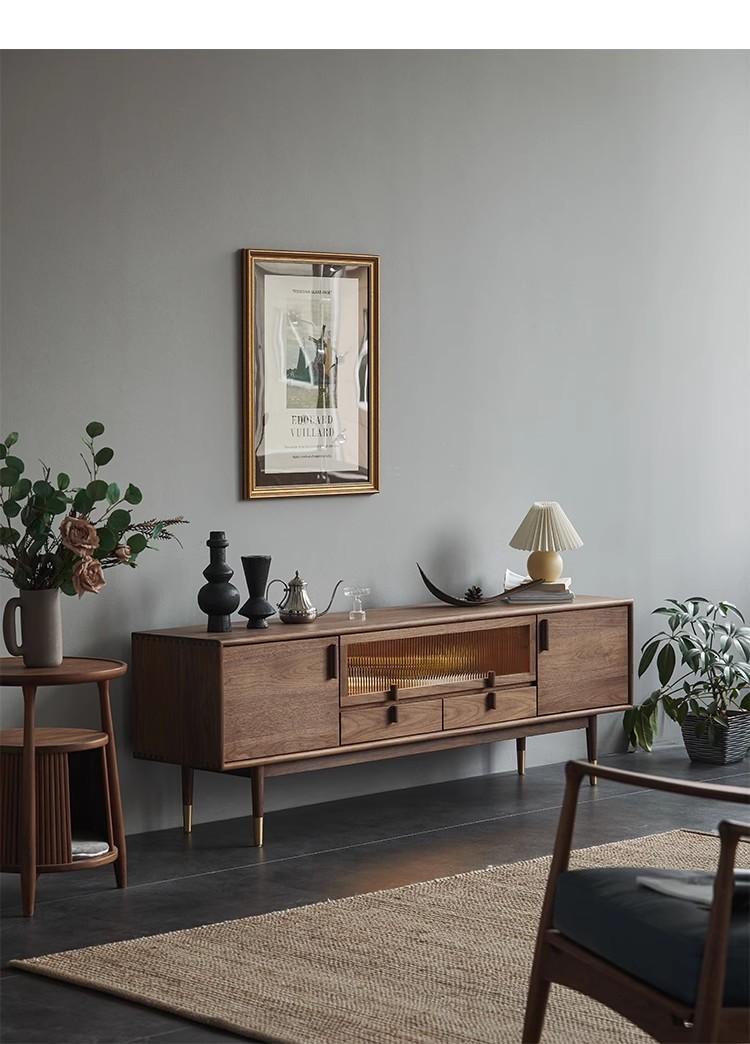 Gabinete de TV de Madera de Nogal Negro Nórdico Sala de Estar Simple Departamento Pequeño Entrada Lujo Mueble de Madera de Cerezo Gabinete de Almacenamiento