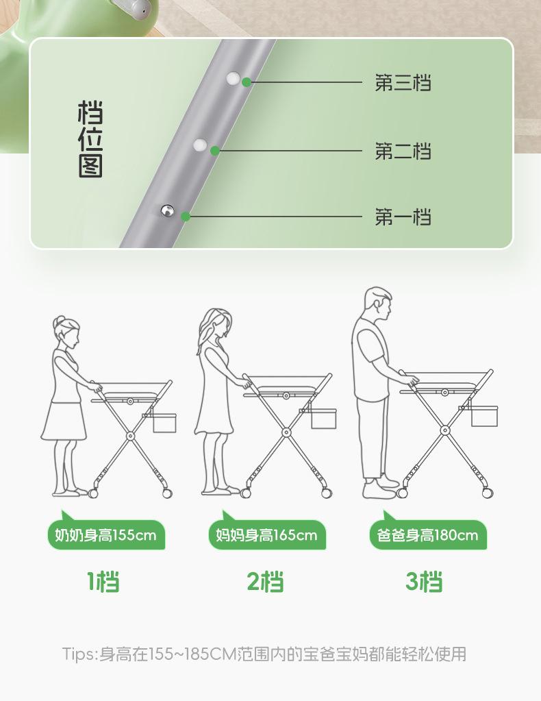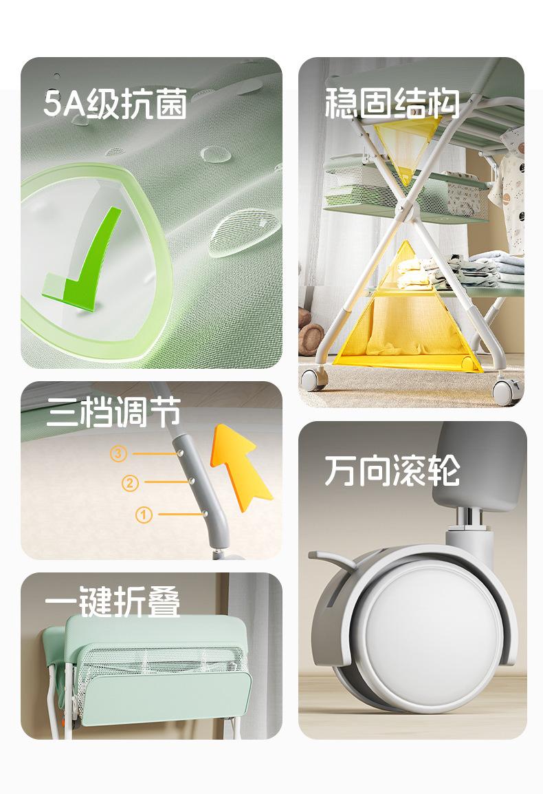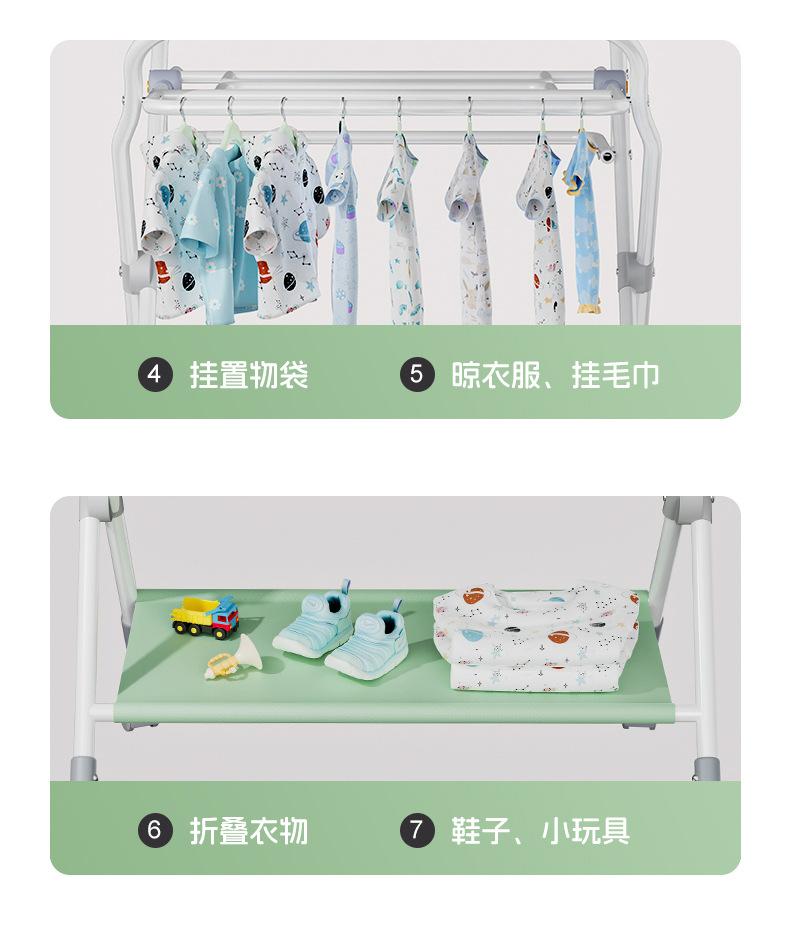 Double layer model—green [⭐Upgraded skeleton] + storage basket + clothes drying rack + storage basket + five-speed adjustment + silent universal wheel + toys (gift package)
