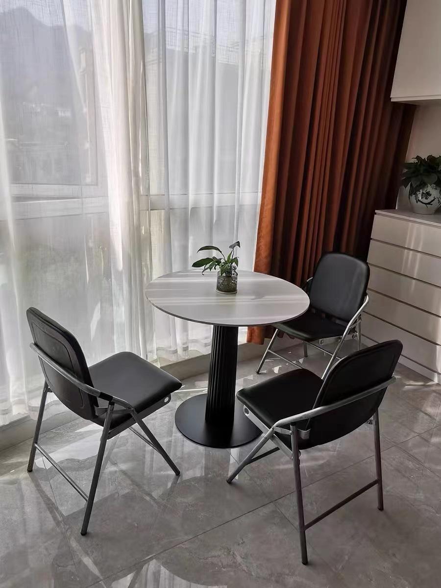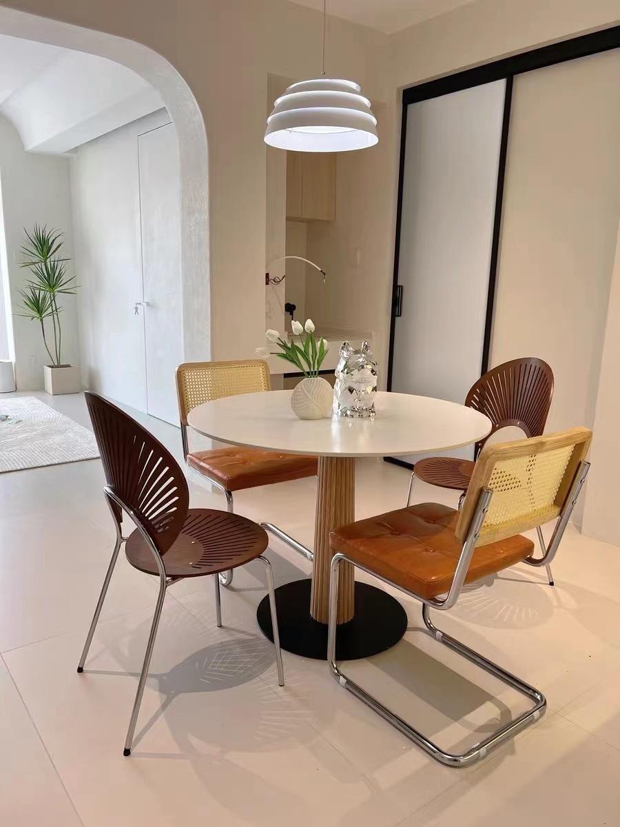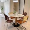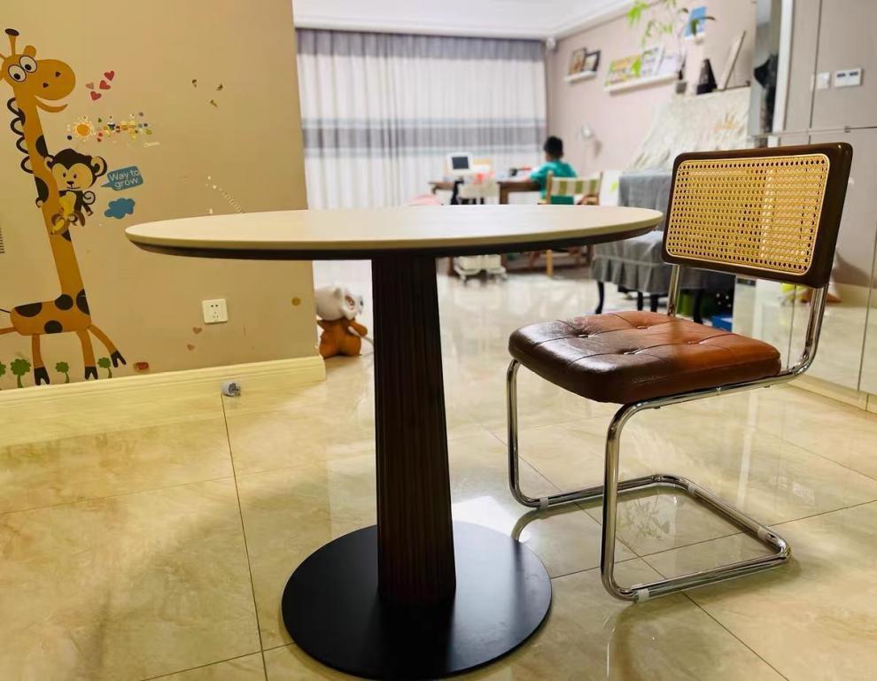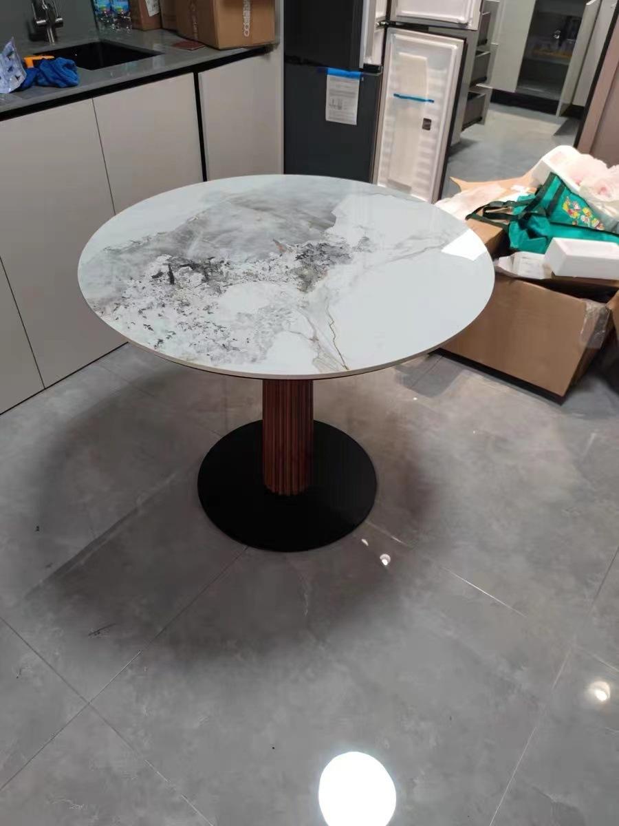Mesa de comedor de pizarra escandinava para casa, apartamento pequeño, estilo wabi-sabi, mesa redonda pequeña de madera maciza, retro, redonda, sencilla, blanca.
