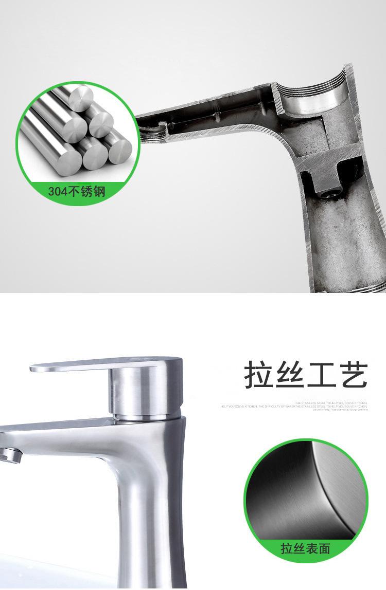 Grifo de lavabo de acero inoxidable transfronterizo, grifo de lavabo de baño, grifo de lavabo de agua caliente y fría para el hogar