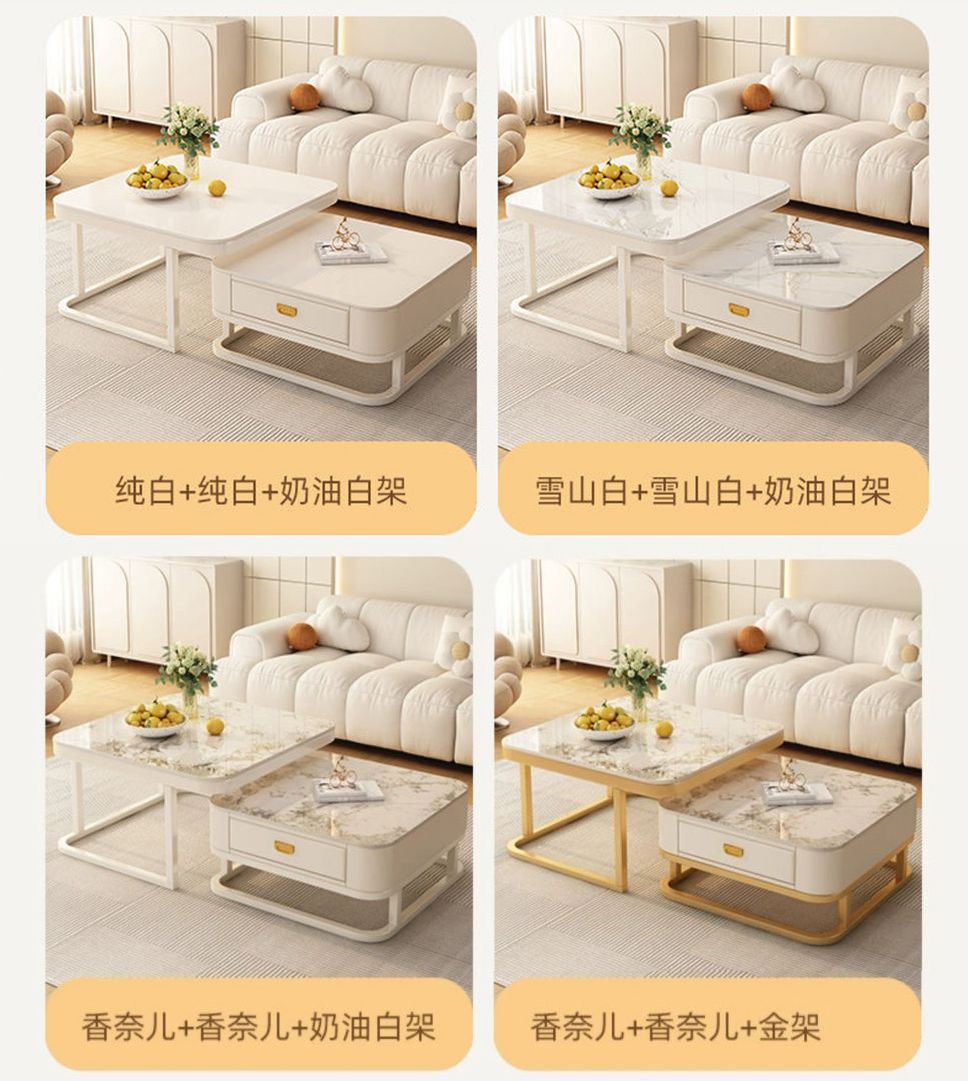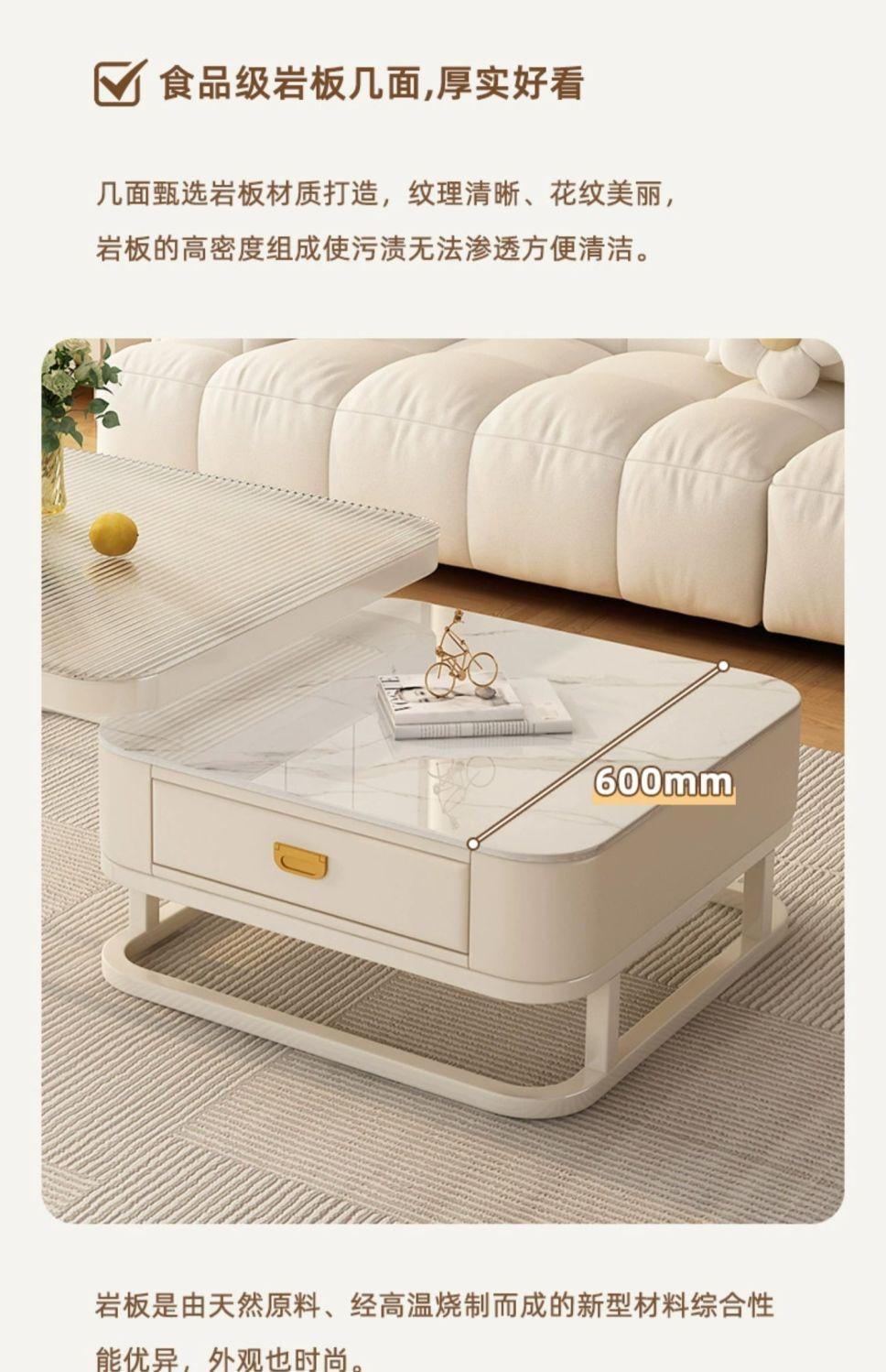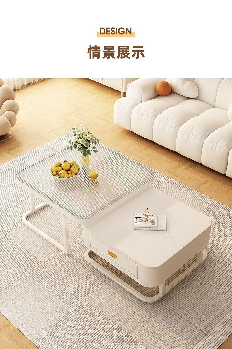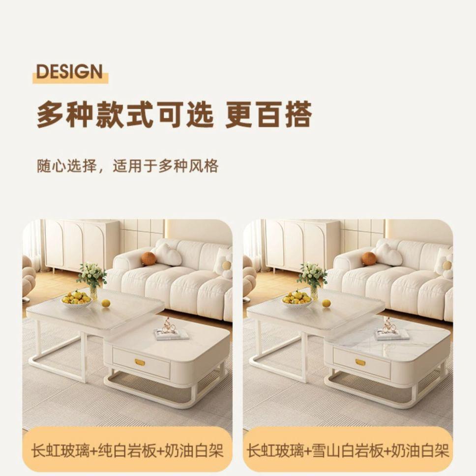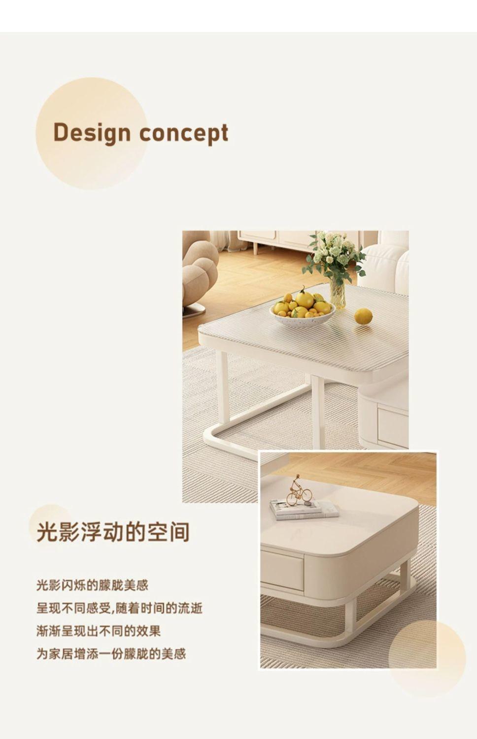 Mesa de centro estilo roca color crema para sala de estar, hogar, apartamento pequeño, mesa pequeña moderna de lujo, mesa de centro cuadrada nueva para celebridades de Internet.