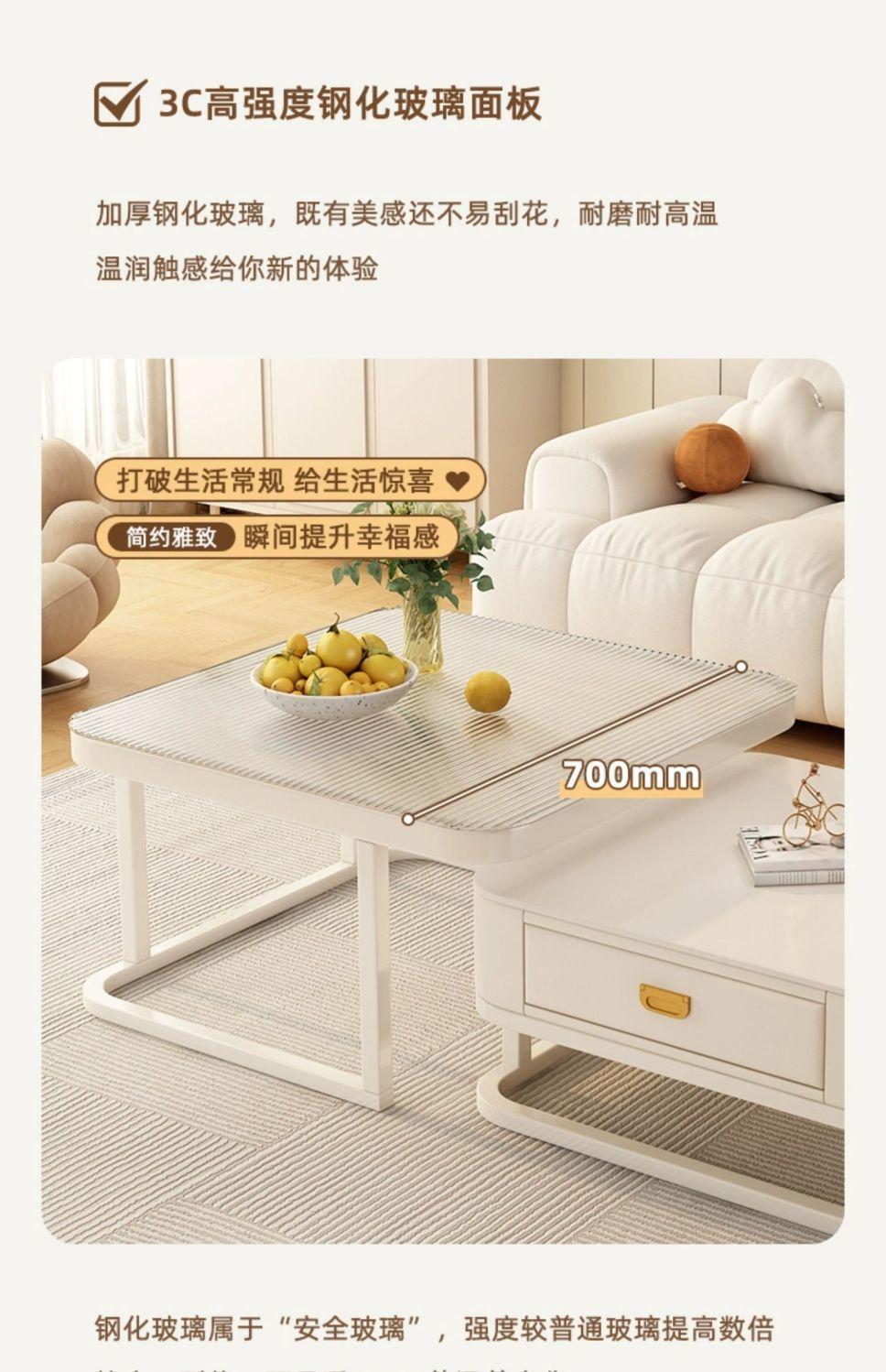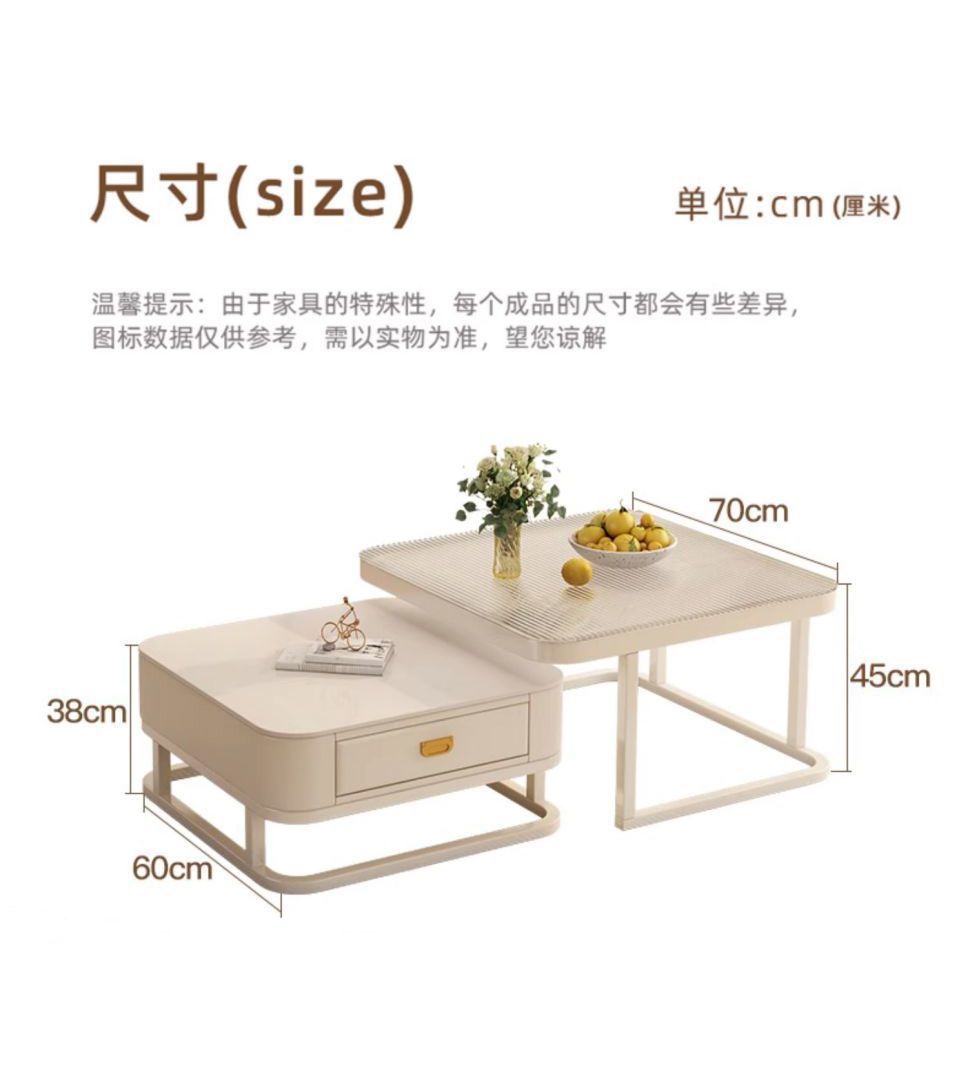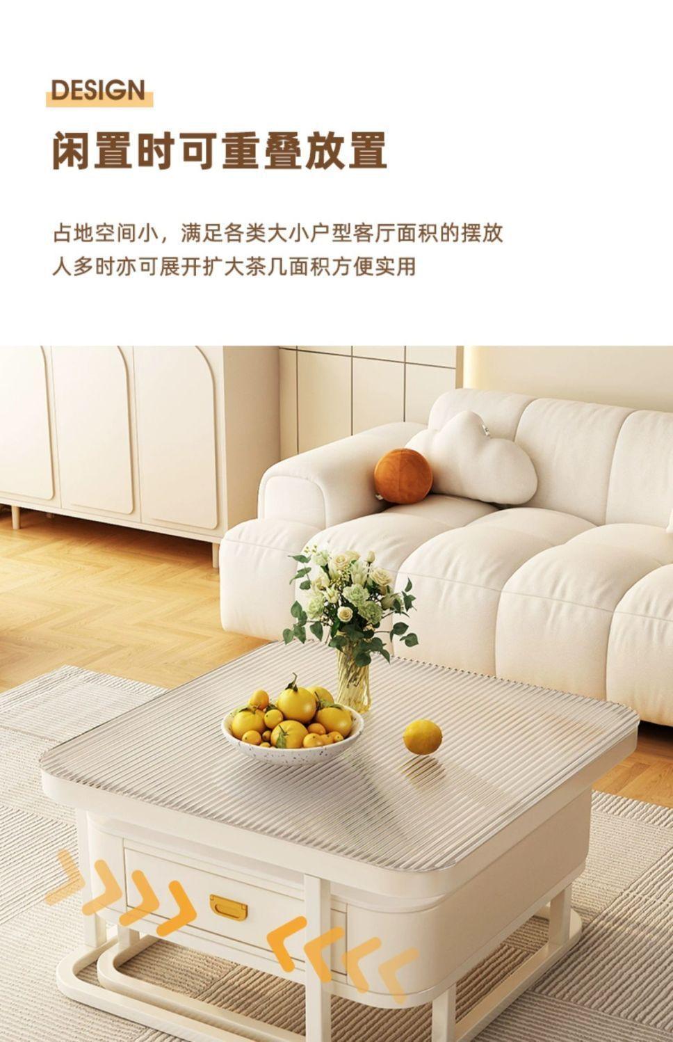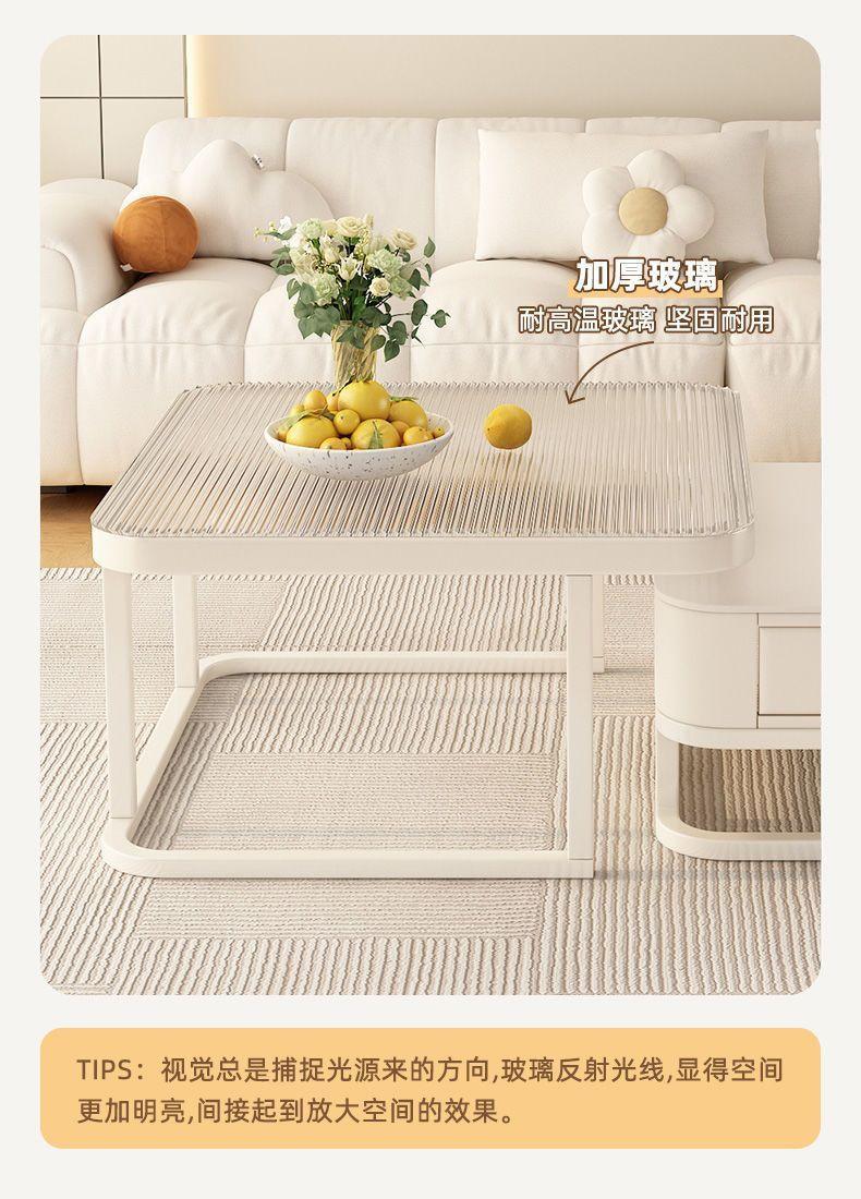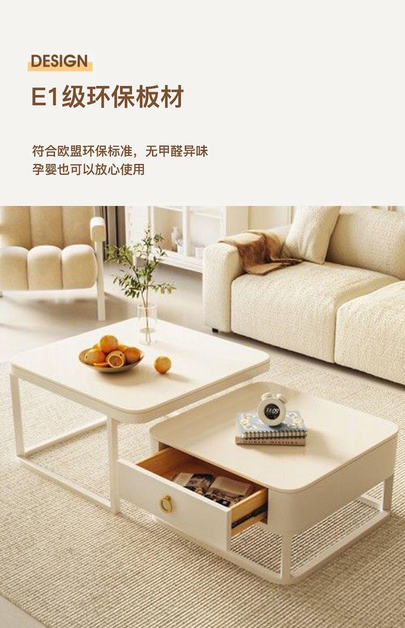 Mesa de centro estilo roca color crema para sala de estar, hogar, apartamento pequeño, mesa pequeña moderna de lujo, mesa de centro cuadrada nueva para celebridades de Internet.