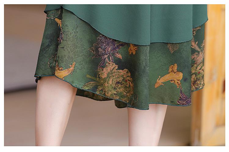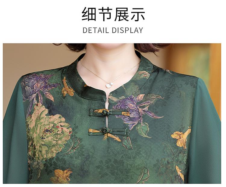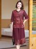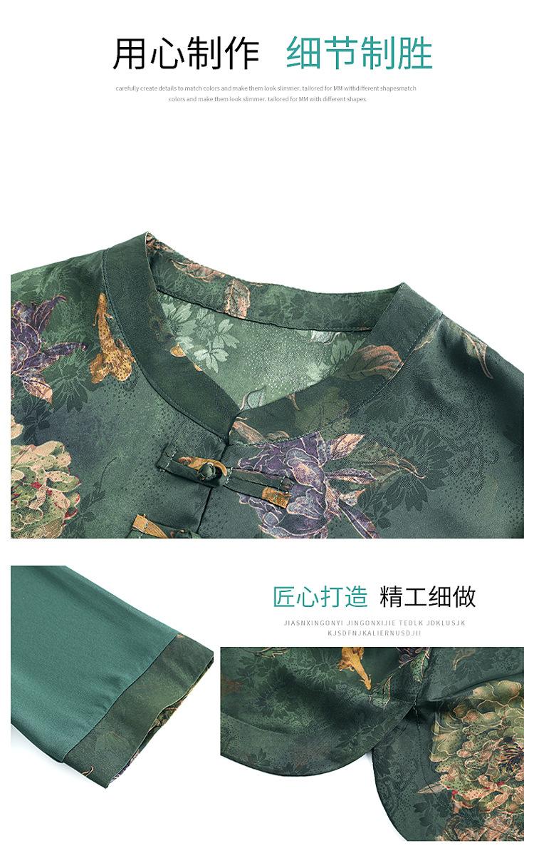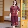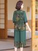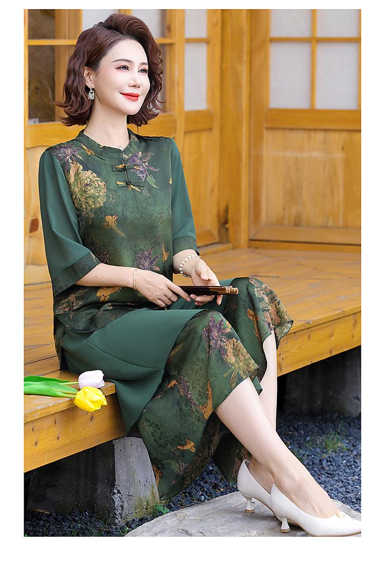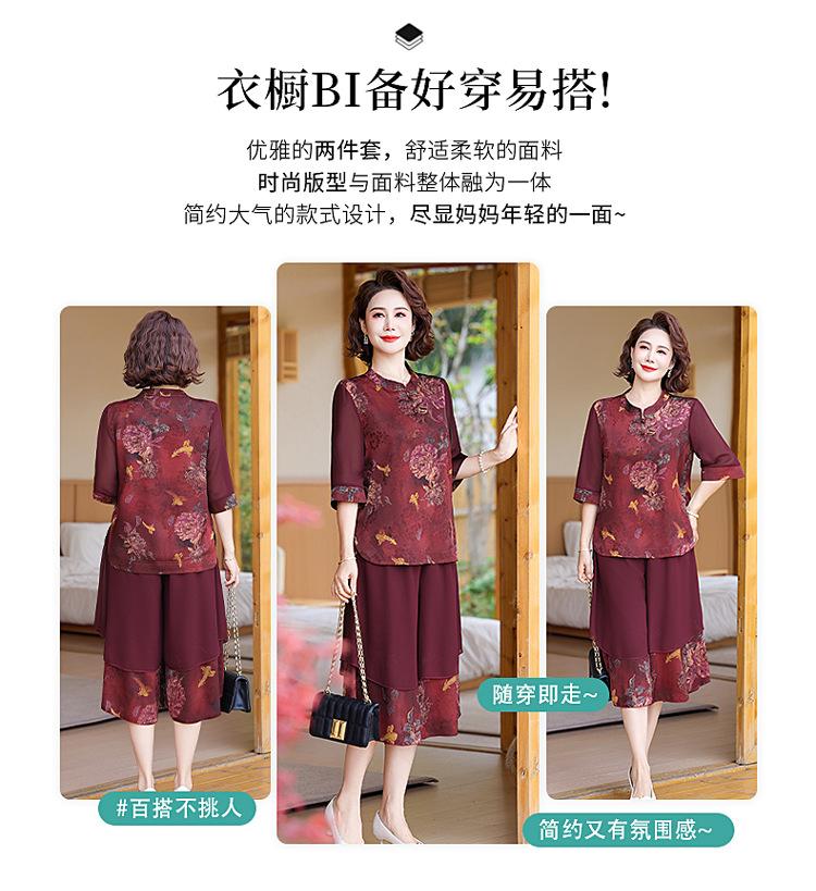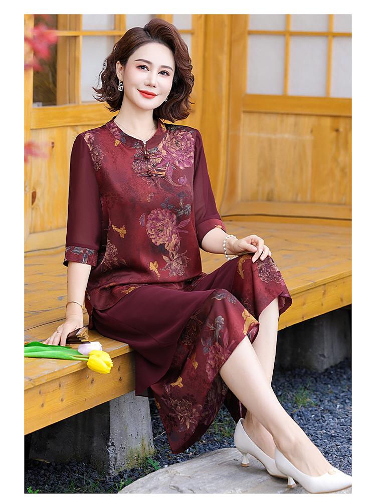 Vestido de Verano para Madre Estilo Nacional Cheongsam Mejorado Top de Manga Corta Pantalones Holgados Traje de 2 Piezas Estilo Occidental Traje para Mujeres de Mediana Edad