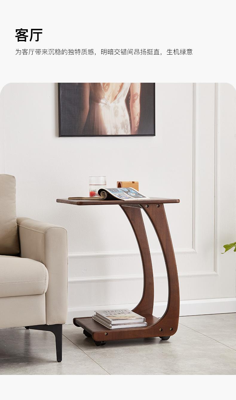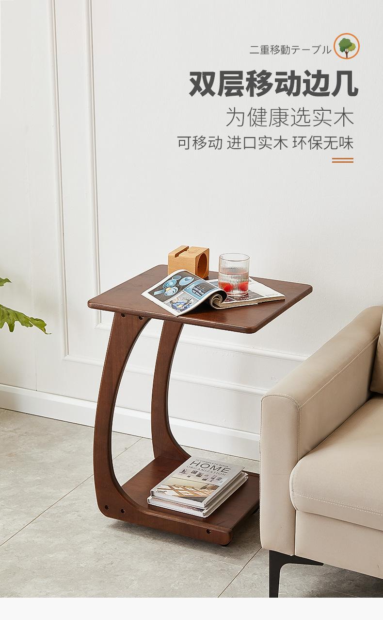Mesa Auxiliar para Sofá con Ruedas, Carrito Pequeño Móvil, Mesa de Centro Pequeña de Madera Maciza, Sala de Estar para Apartamento Pequeño, Mesa Pequeña para Dormitorio en Casa