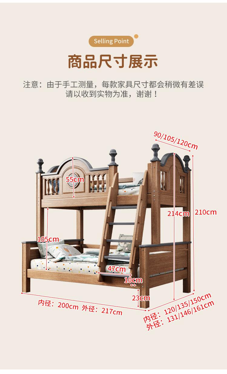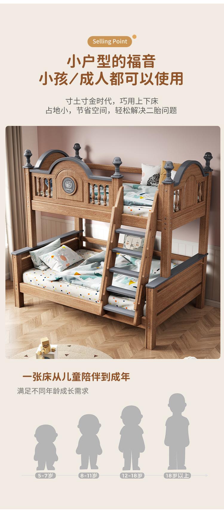 Litera alta y baja de madera maciza, litera de dos capas, moderna y sencilla, para dormitorio pequeño, litera, cama para niños