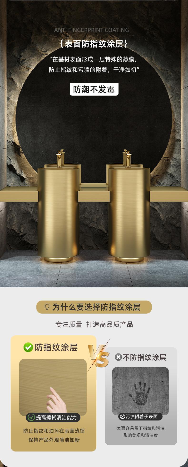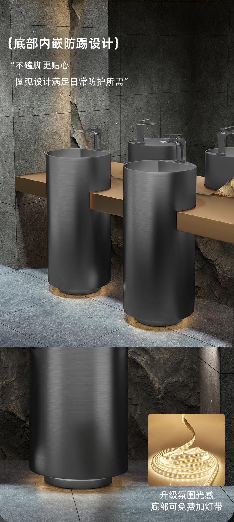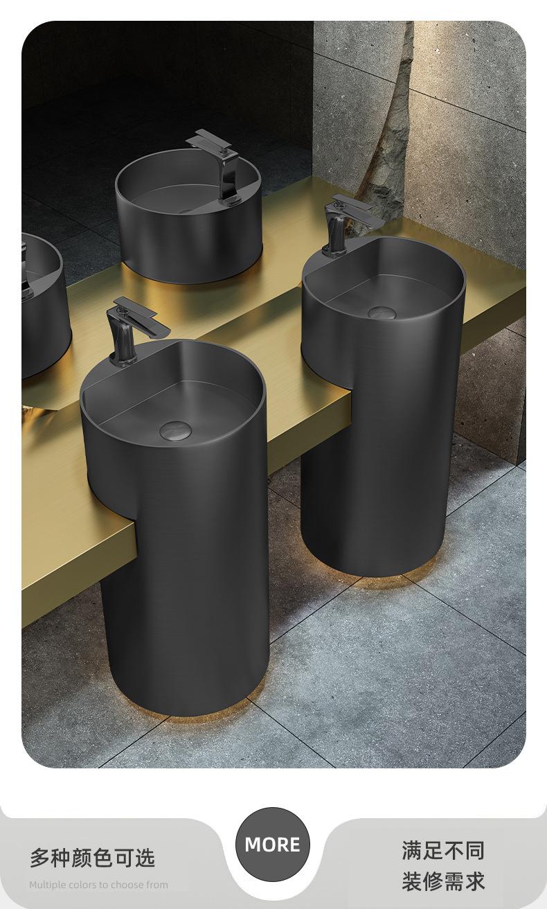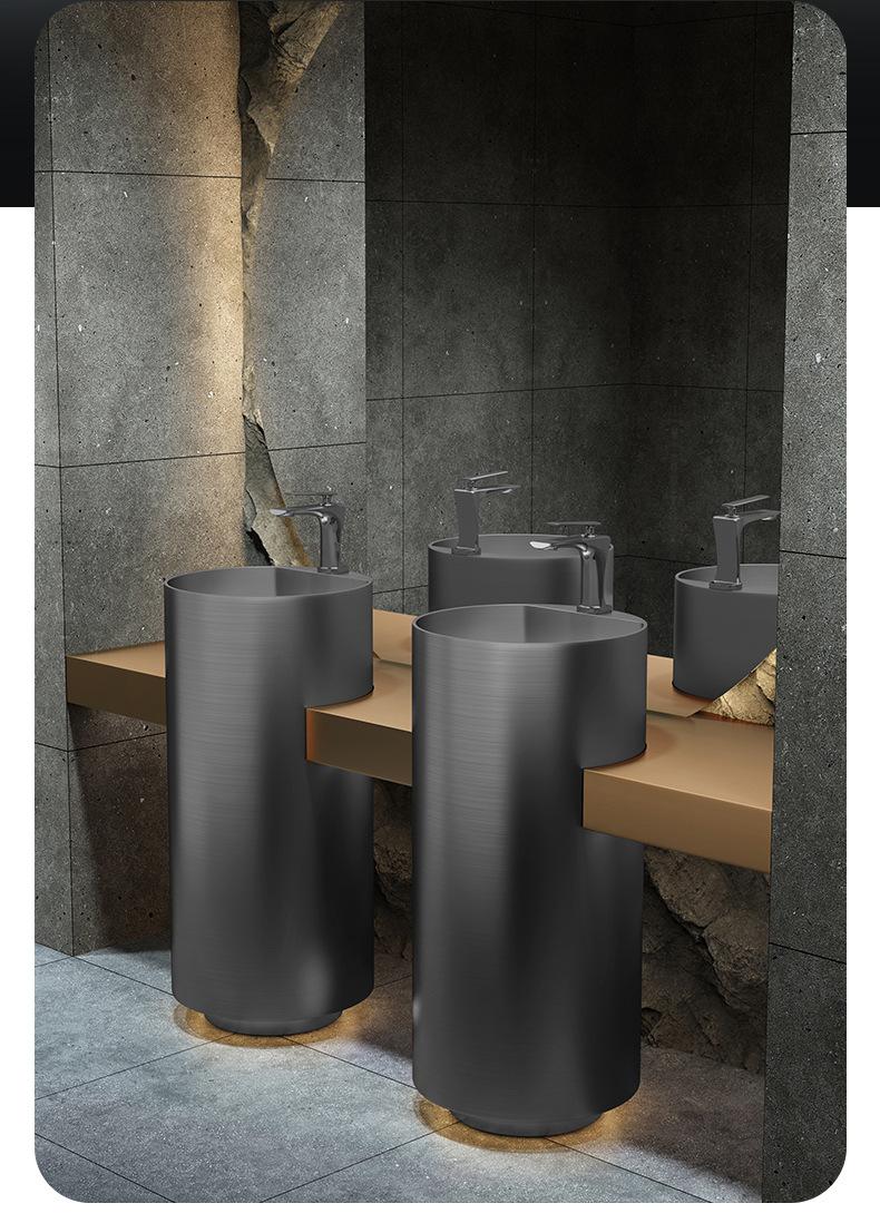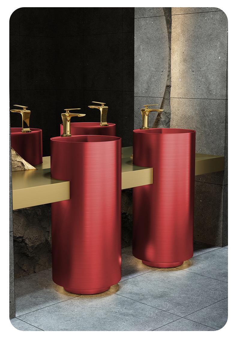 Lavabo de columna de acero inoxidable dorado, lavabo de suelo integrado, lavabo de columna de baño redondo