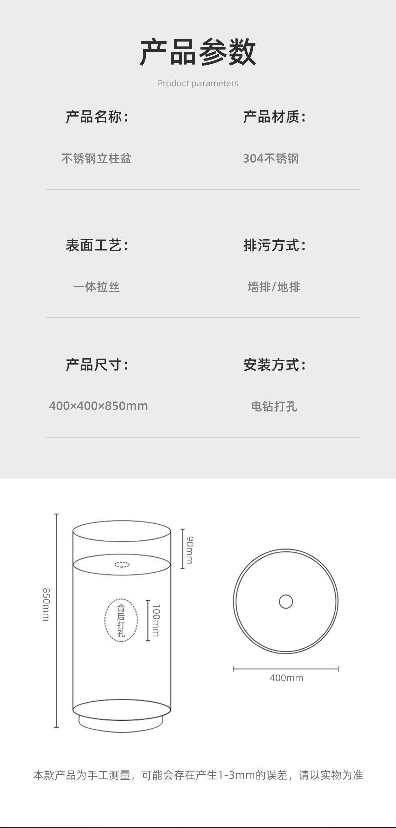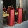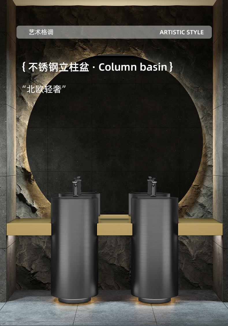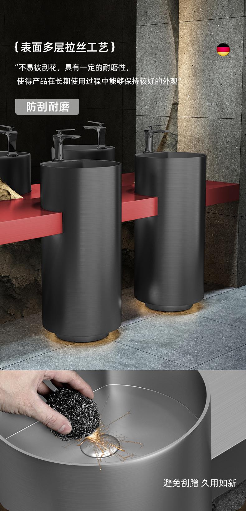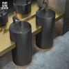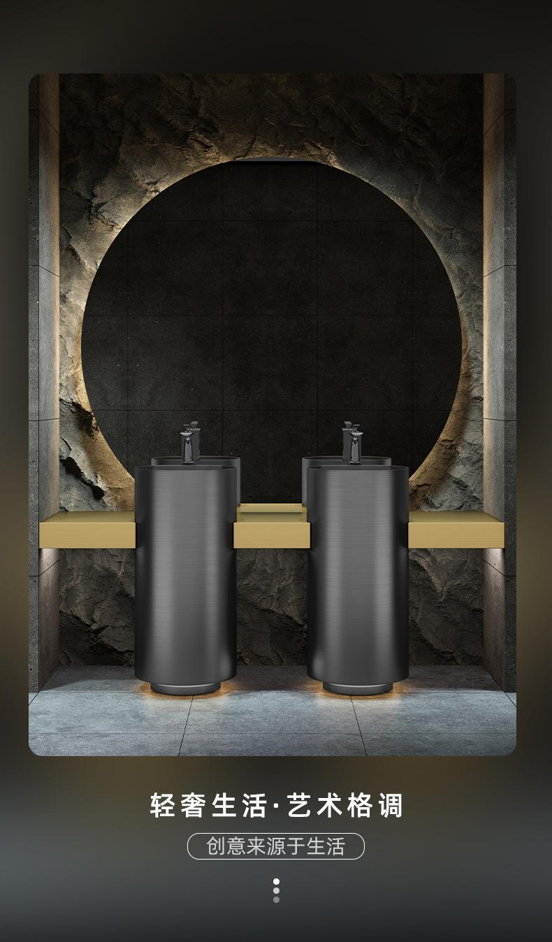 Lavabo de columna de acero inoxidable dorado, lavabo de suelo integrado, lavabo de columna de baño redondo