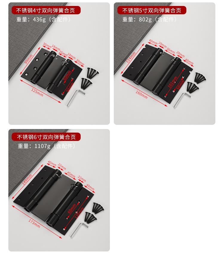 Bisagra de resorte de doble apertura de acero inoxidable, bisagra de puerta de dos vías con apertura interior y exterior, bisagra de cierre automático para puerta de mezclilla.