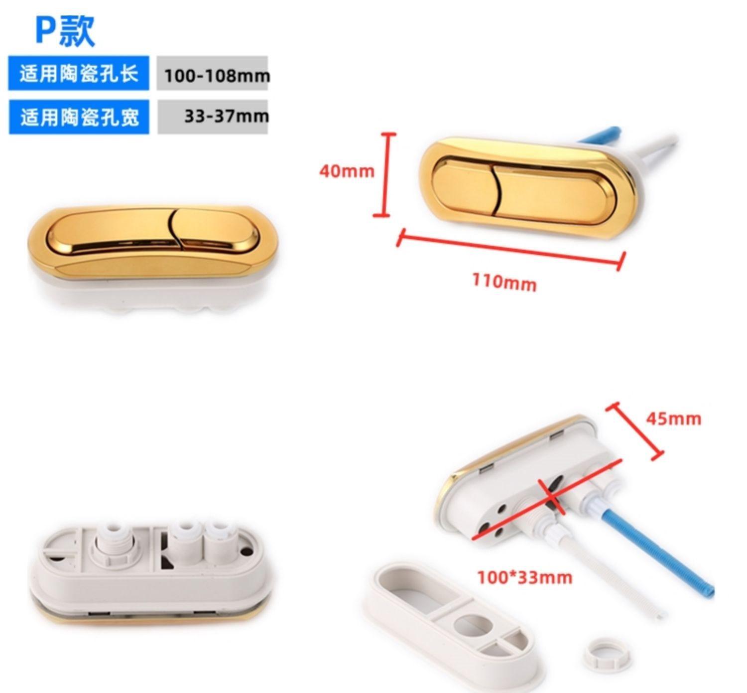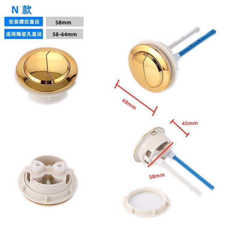 Tanque de agua de inodoro, botón doble, universal, de una sola pulsación, interruptor de tapa de inodoro antiguo, accesorio de descarga de inodoro dorado