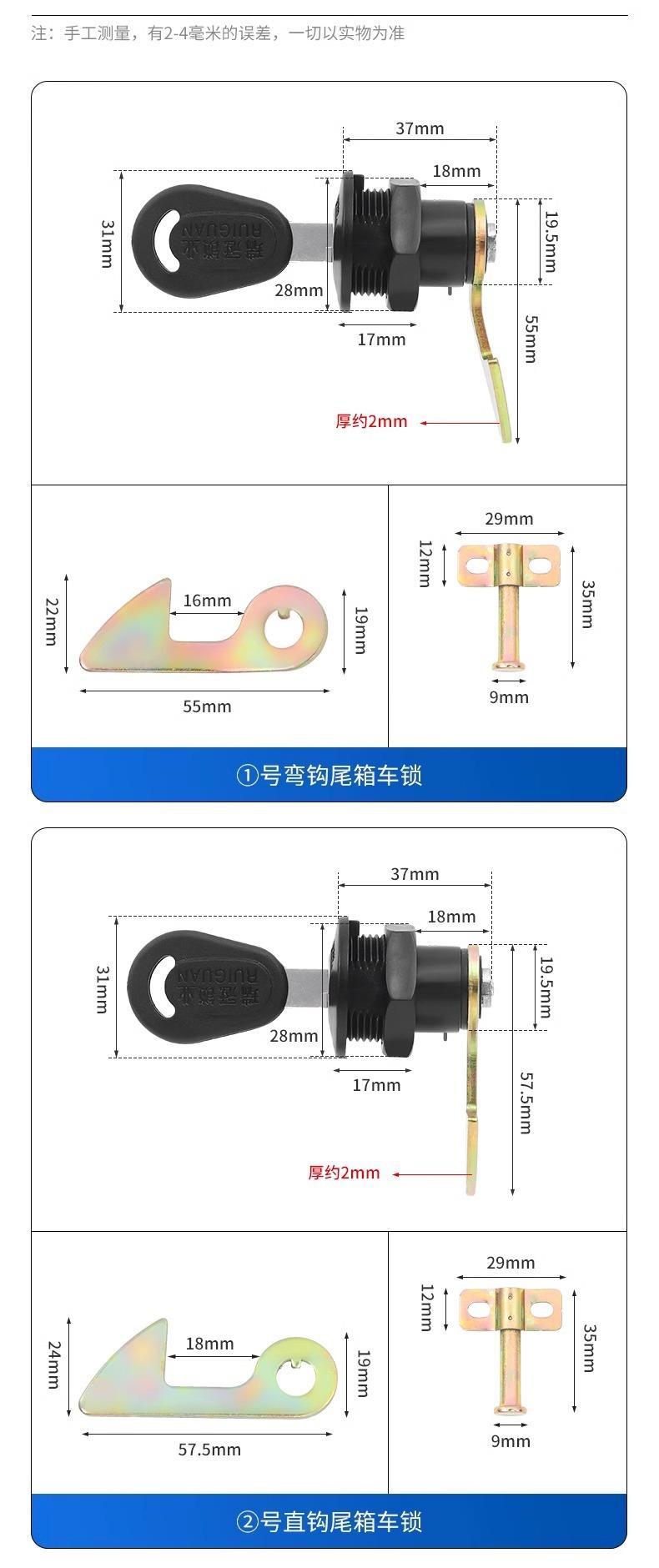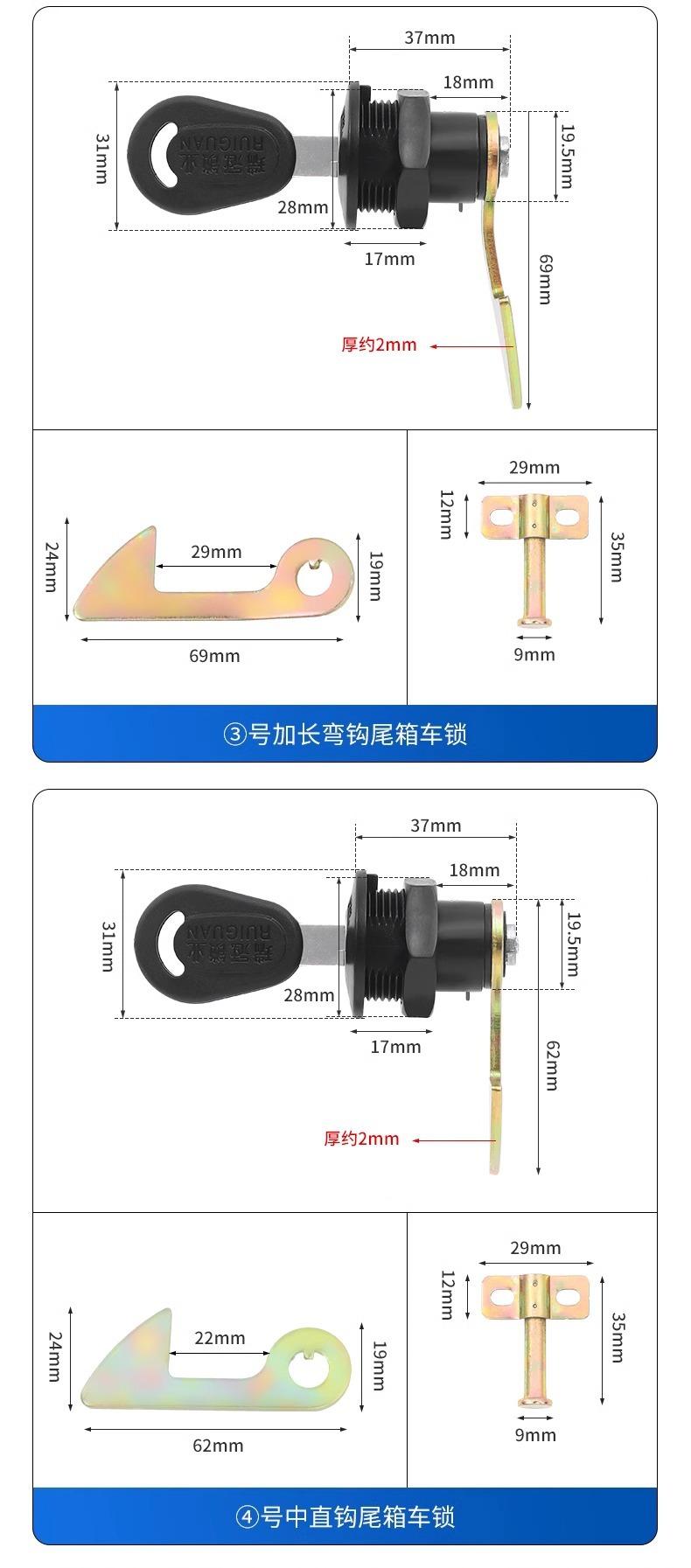No. 2 straight hook tail box lock comes with fixed buckle, No. 3 extended hook tail box lock with fixed buckle...
