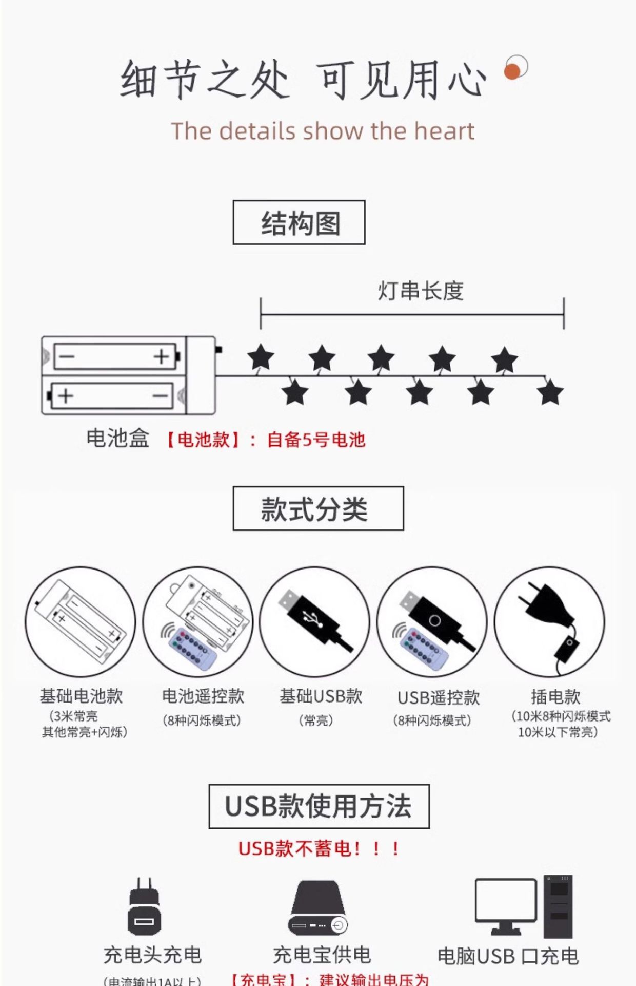 Crystal ball - 3.2m lights, battery type + usb dual-use type, can flash