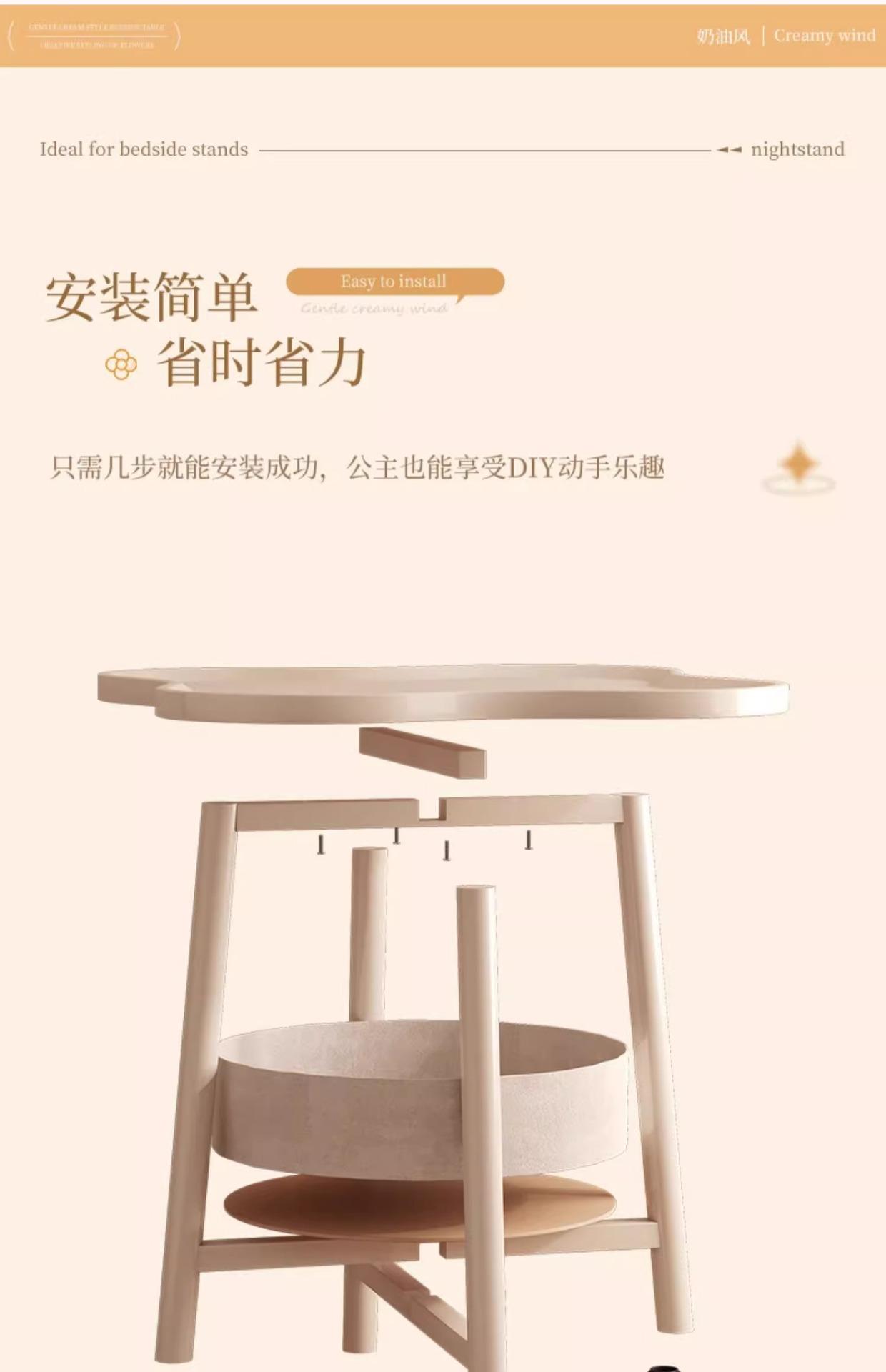 [four-leaf clover bedside table] milk curry color 50CM; assembly