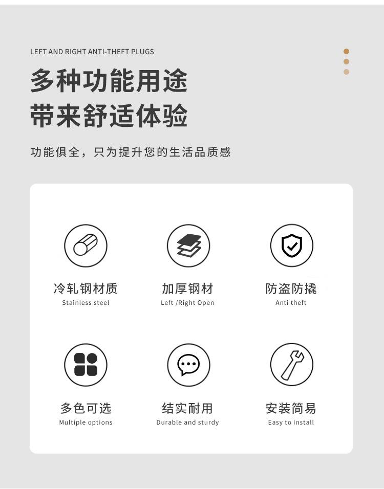 Silver (with screws), Black (with screws), Gold (with screws), White zinc (with screws), Colored zinc (with screws)