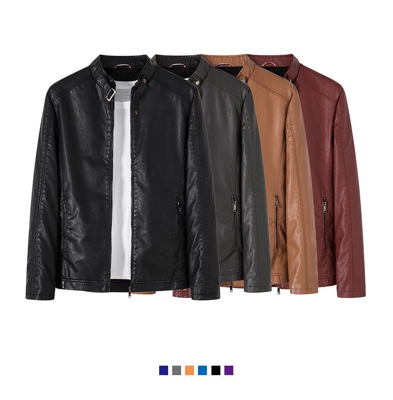 2022 Cuero para Hombre Otoño e Invierno Nueva Moda Cuello Alto Chaqueta de Cuero Marca de Moda Todo Combinable Biker Chaqueta de Hombre