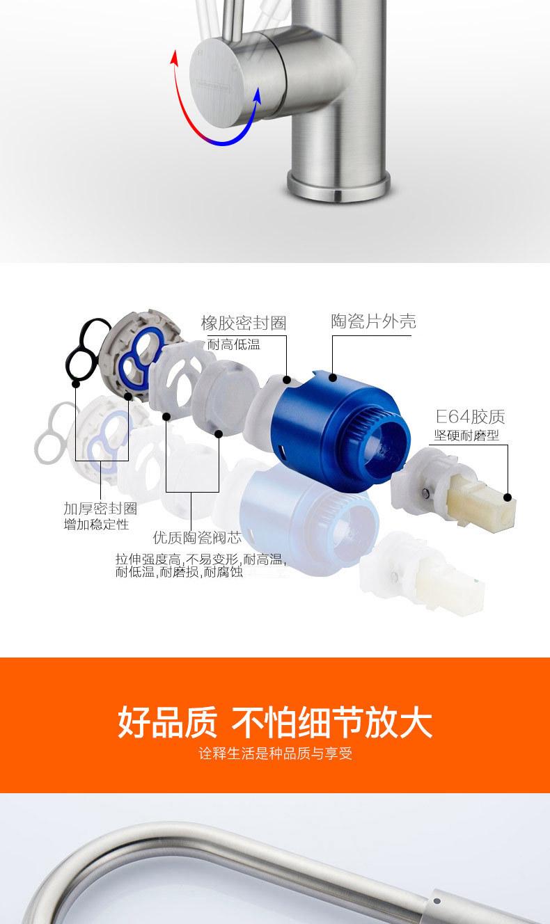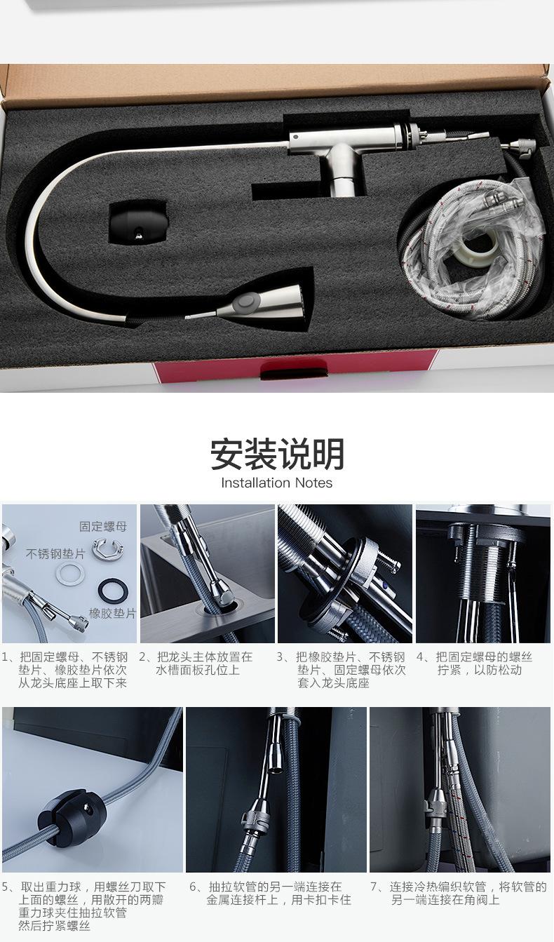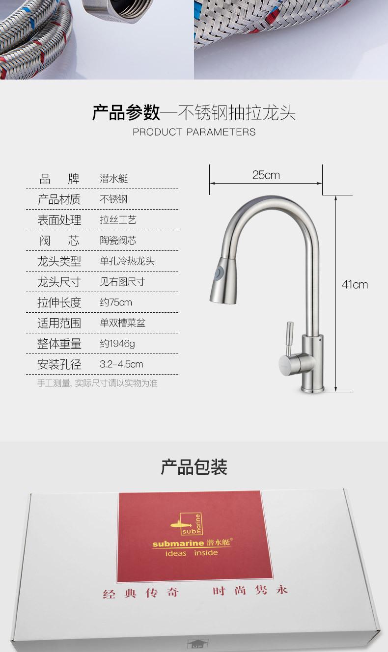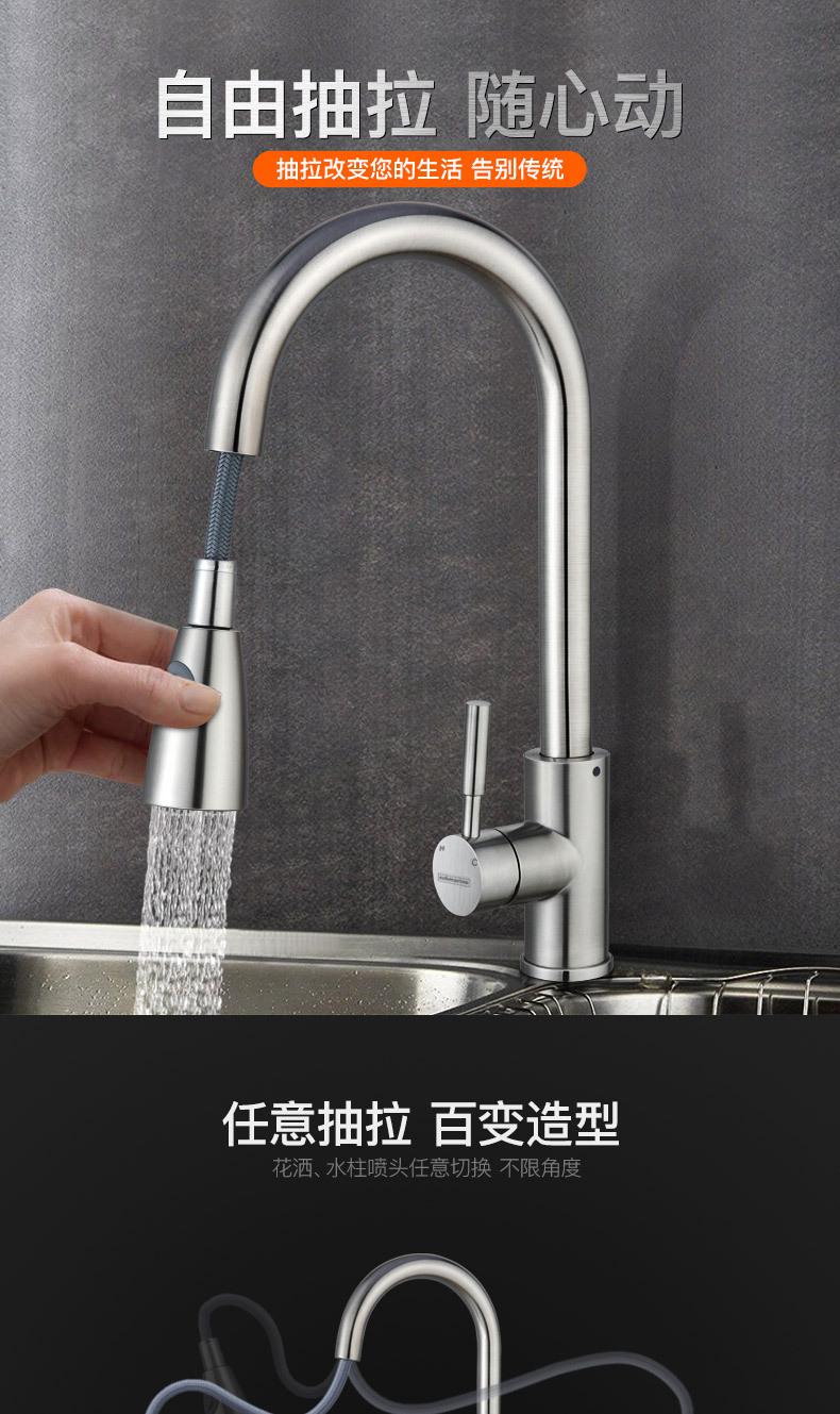 Grifo de lavabo de verduras submarino retráctil doble salida acero inoxidable cocina L3049 frío y caliente fregadero telescópico
