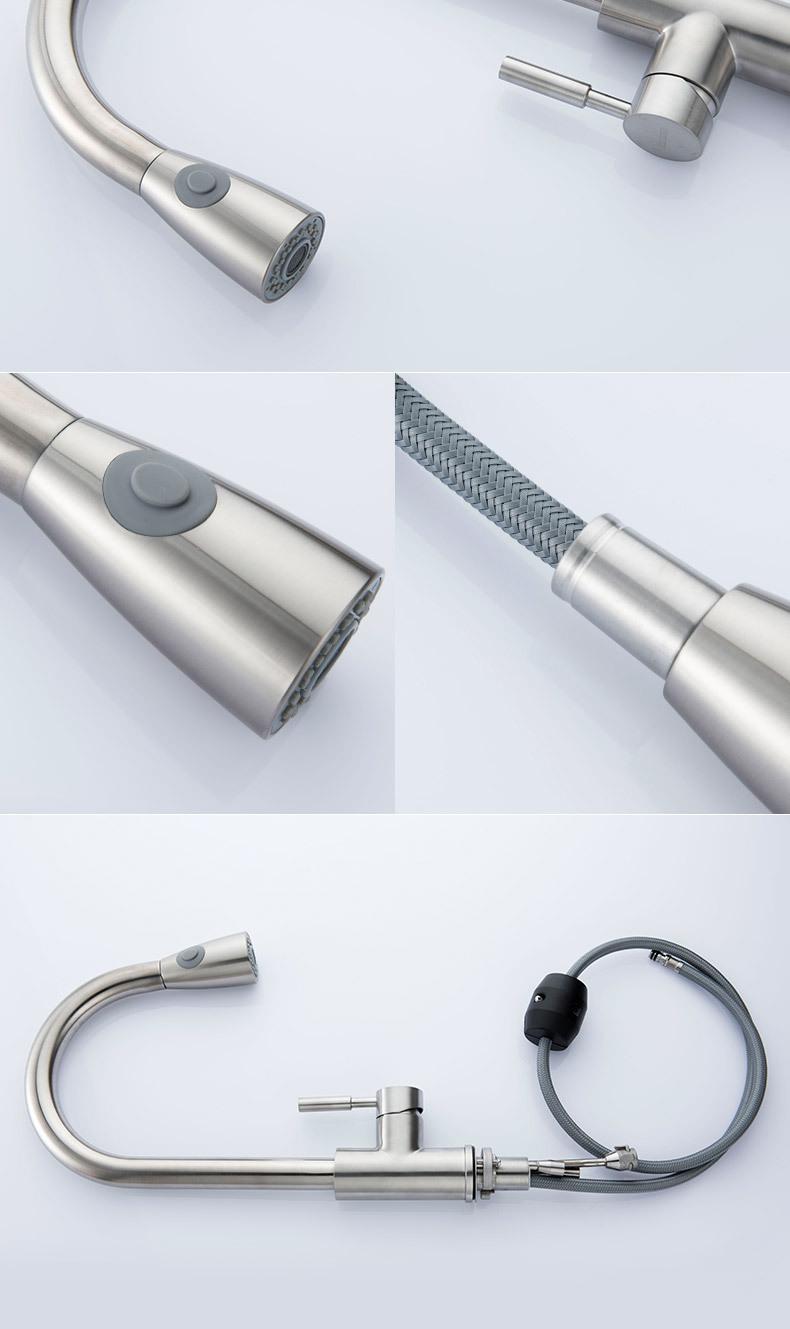 Silver pull faucet, Black pull faucet, Silver pull faucet + handmade basin 7344