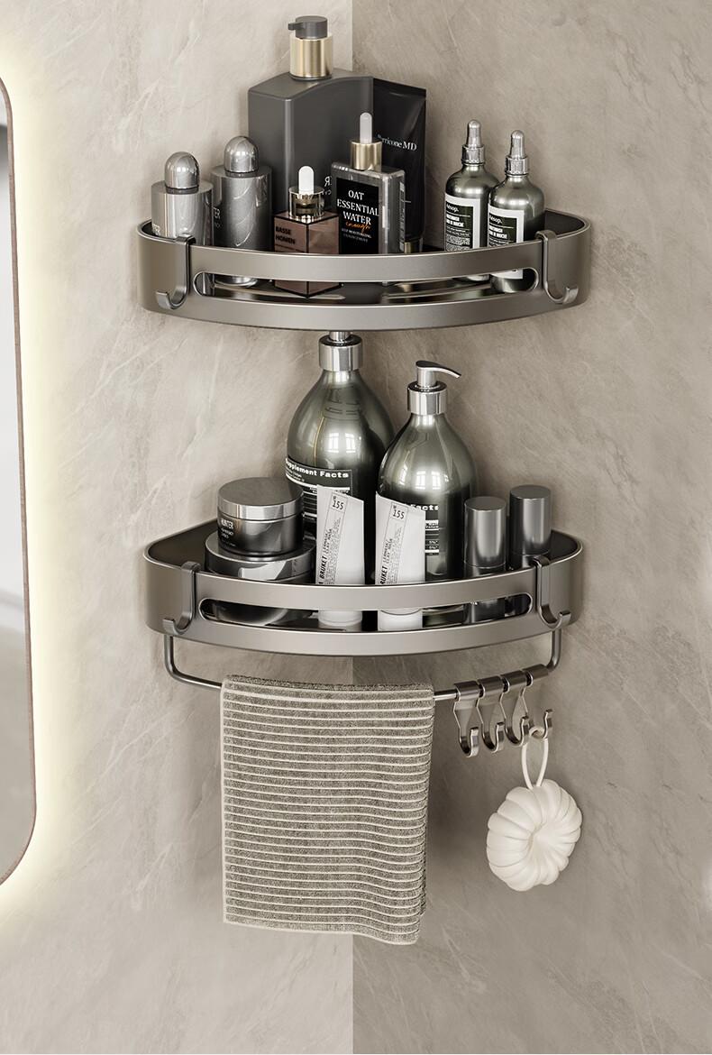 Estante de Almacenamiento para Inodoro Triangular para Baño Almacenamiento de Esquina Sin Perforaciones Estante Colgante Multicapa Montado en la Pared Lavabo de Baño