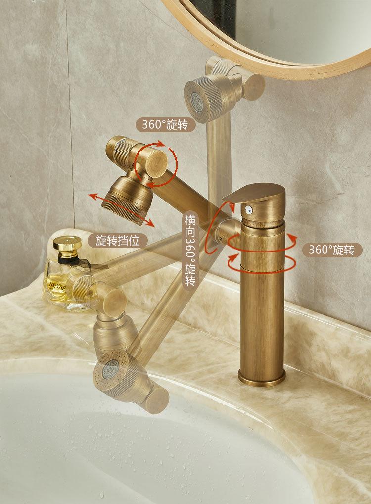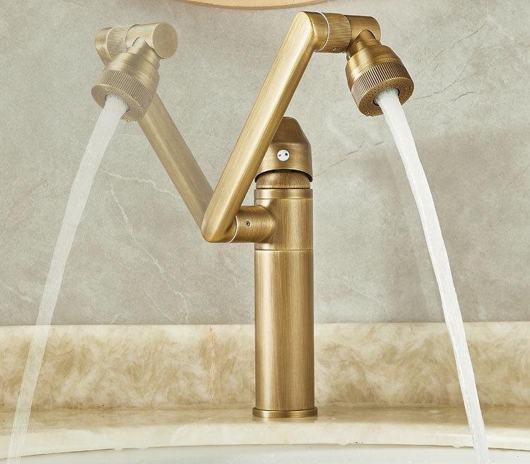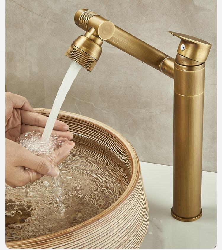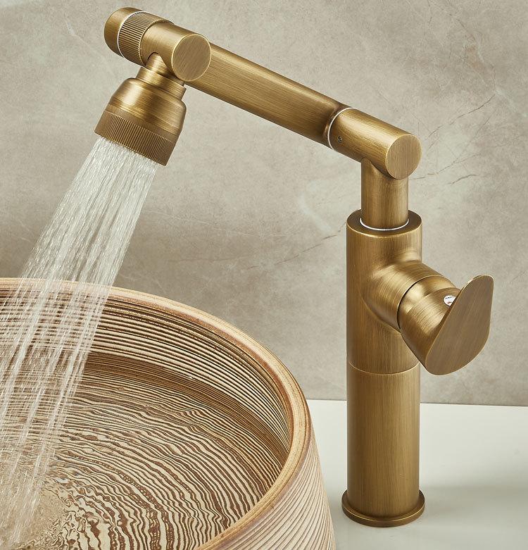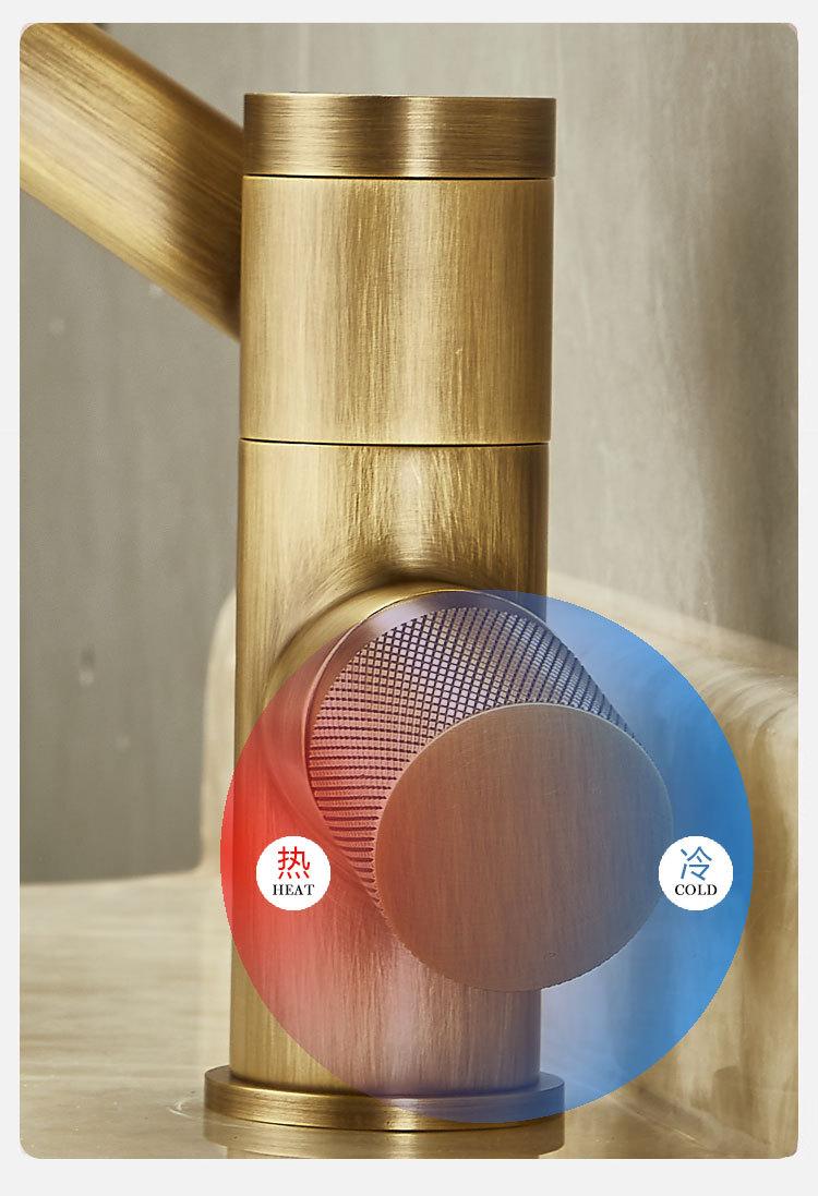 Grifo de Lavabo de Cobre Completo Antiguo Giratorio Frío y Caliente Baño Lavabo Lavabo Hogar Lavabos